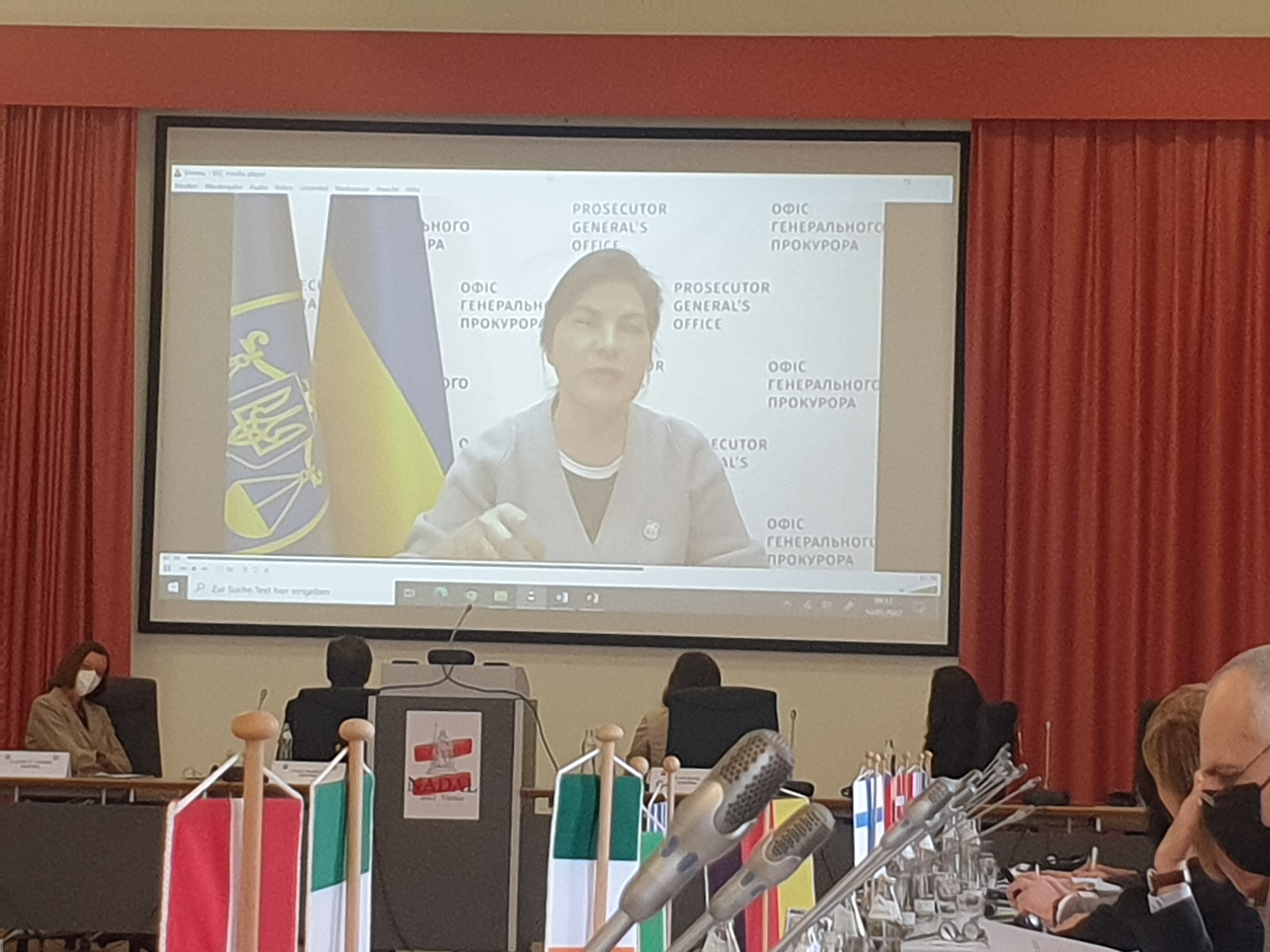 Po oficjalnym rozpoczęciu spotkania przez Prokuratora Generalnego Austrii Franza Plöchla oraz wystąpieniach Pierwszej Prezes austriackiego Sądu Najwyższego, Minister Sprawiedliwości Austrii, Przewodniczącej austriackiego Stowarzyszenia Prokuratorów oraz Przewodniczącego Międzynarodowego Stowarzyszenia Prokuratorów, odtworzono nagranie z wystąpieniem Prokurator Generalnej Ukrainy Iryny Venediktovej, która przedstawiła aktualne ustalenia śledztw prowadzonych przez władze ukraińskie, w tym w ramach polsko-ukraińsko-litewskiego wspólnego zespołu śledczego, w związku ze zbrodniami popełnionymi w czasie wojny w Ukrainie przez wojska rosyjskie.
