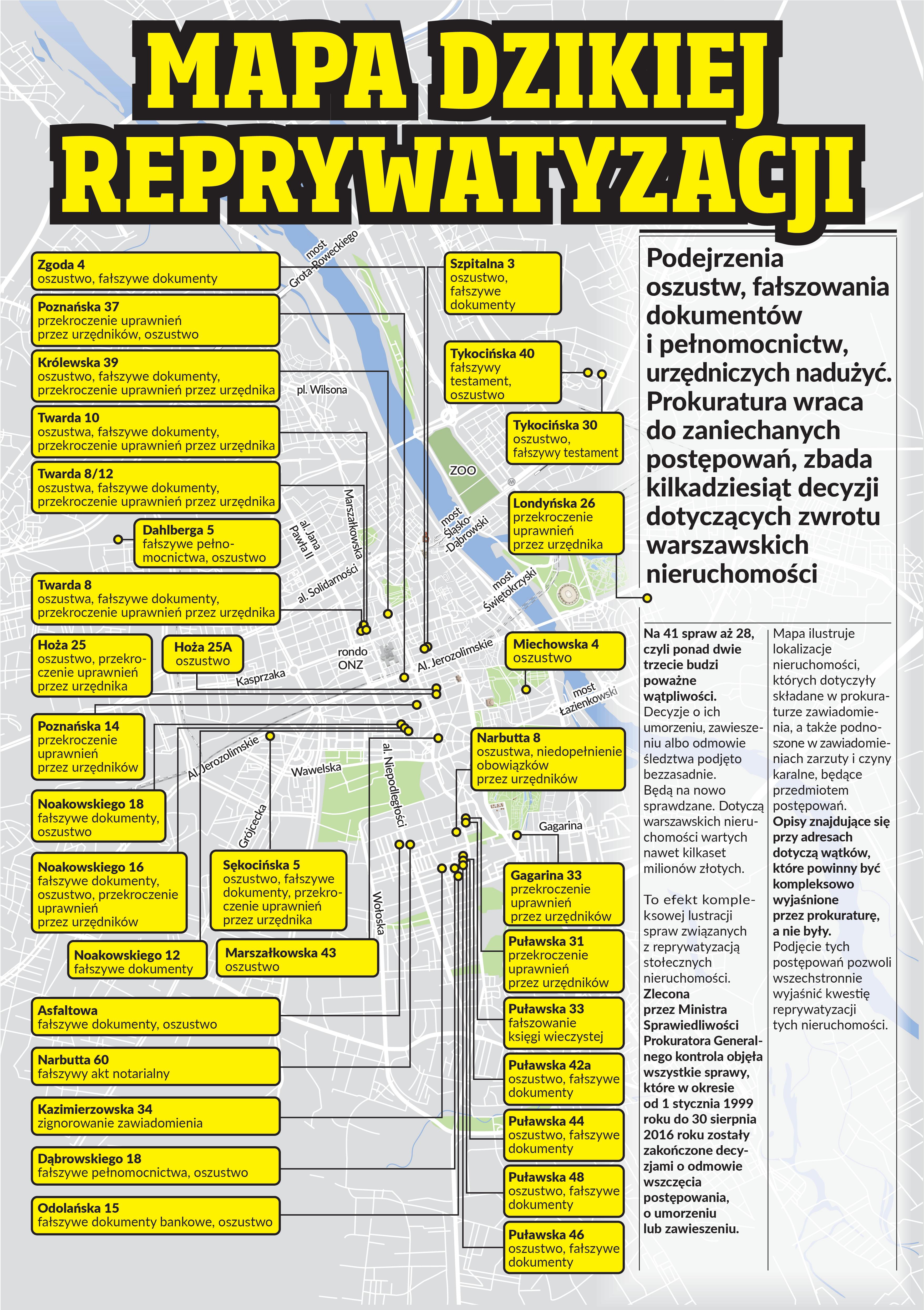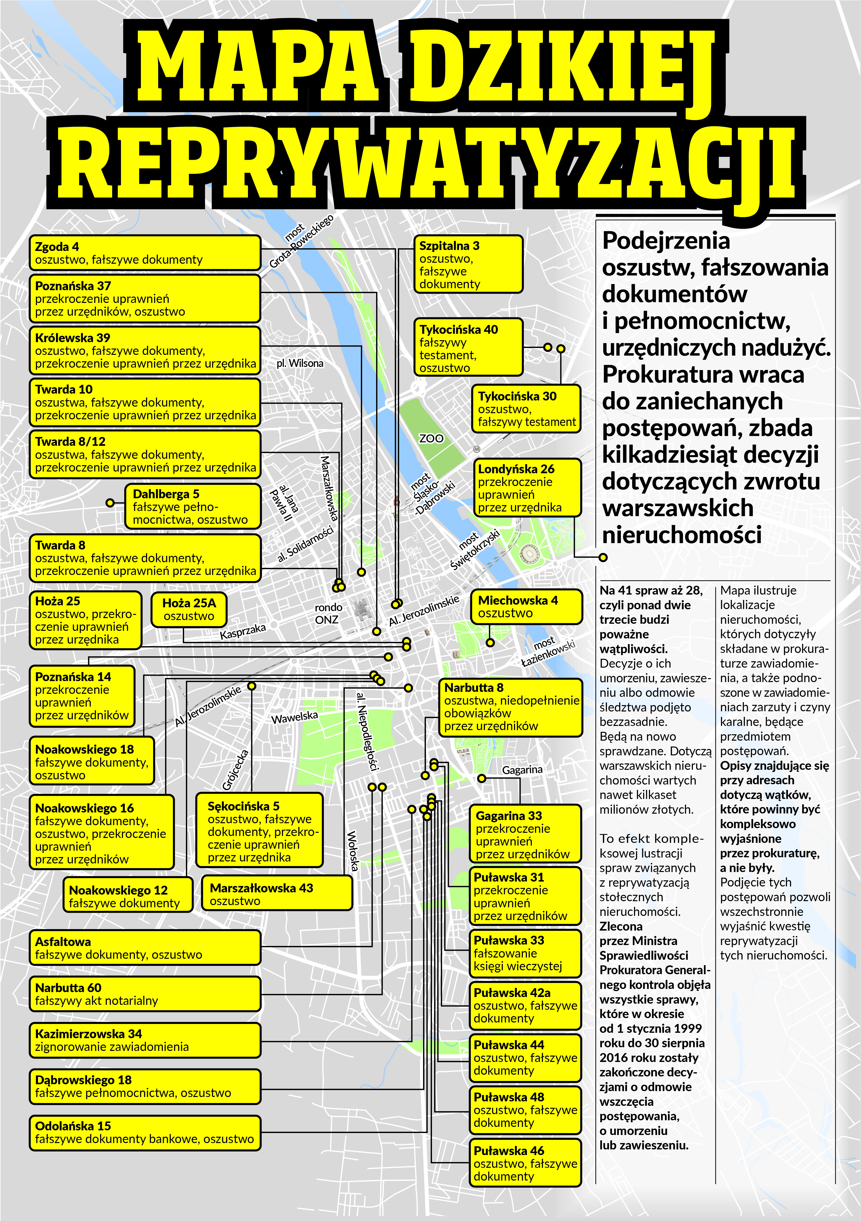 - Na skutek analizy przeprowadzonej w Prokuraturze Regionalnej w Warszawie podjętych zostanie 28 śledztw dotyczących reprywatyzacji nieruchomości położonych na terenie Warszawy. Było to możliwie dzięki zmianom struktury organizacyjnej prokuratury. W przeszłości przestępcy mogli spać spokojnie, a cierpieli zwykli obywatele, którzy nielegalnie byli wyrzucani ze swoich mieszkań – powiedział dzisiaj na specjalnie zwołanej konferencji prasowej Prokurator Generalny Zbigniew Ziobro.