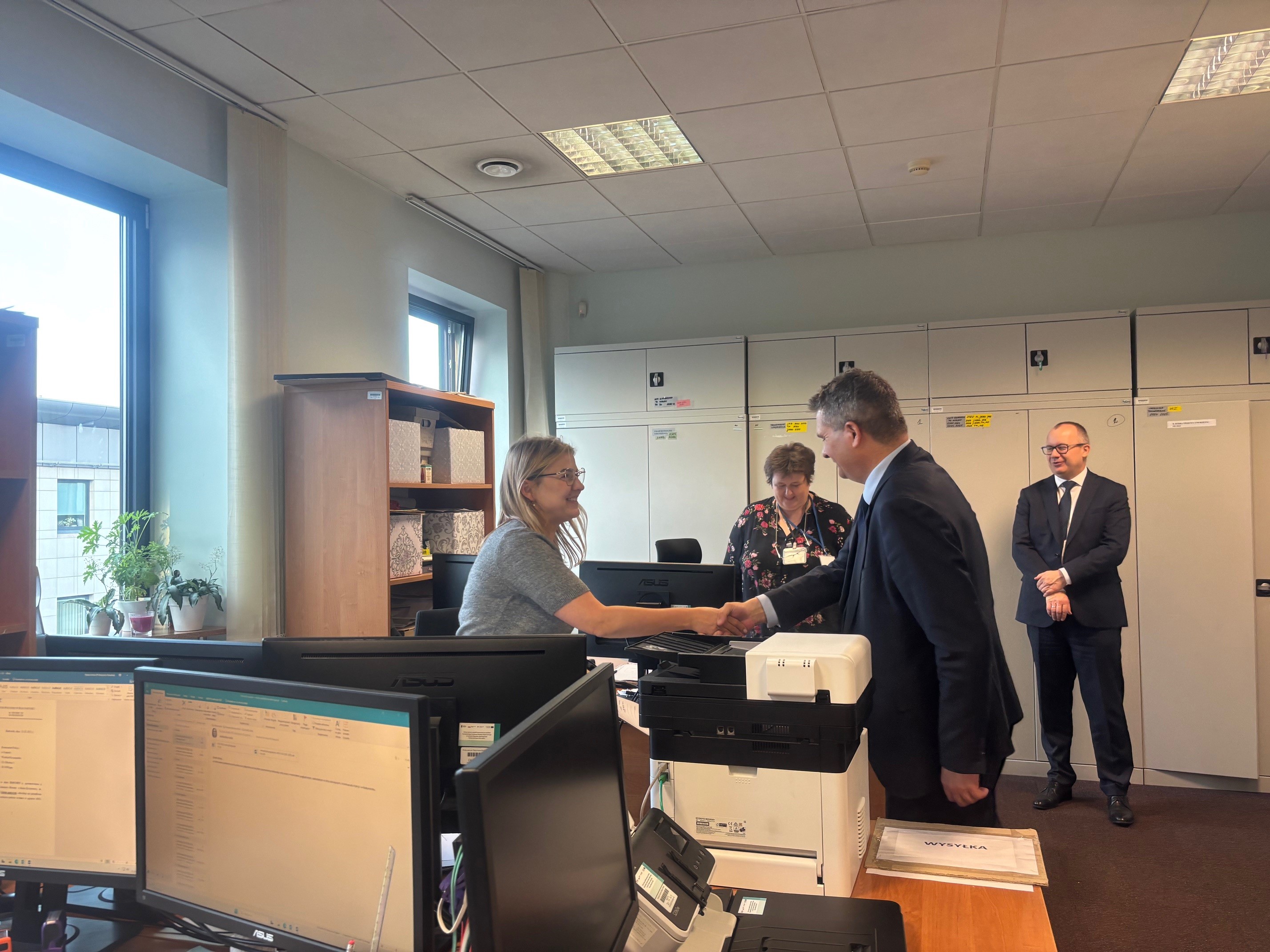 Szczególnie cenne dla Prokuratora Generalnego i Prokuratora Krajowego są spotkania w jednostkach organizacyjnych prokuratury najniższego szczebla, tym razem w Prokuraturze Rejonowej Białystok – Południe w Białymstoku. To okazja do bezpośredniego kontaktu w miejscu wykonywania obowiązków służbowych przez prokuratorów i pracowników prokuratur rejonowych. Prokurator Rejonowy Prokuratury Białystok - Południe Marek Winnicki zapoznał Prokuratora Generalnego i Prokuratora Krajowego z aktualną sytuacją kadrową, obciążeniem pracą i warunkami lokalowymi.