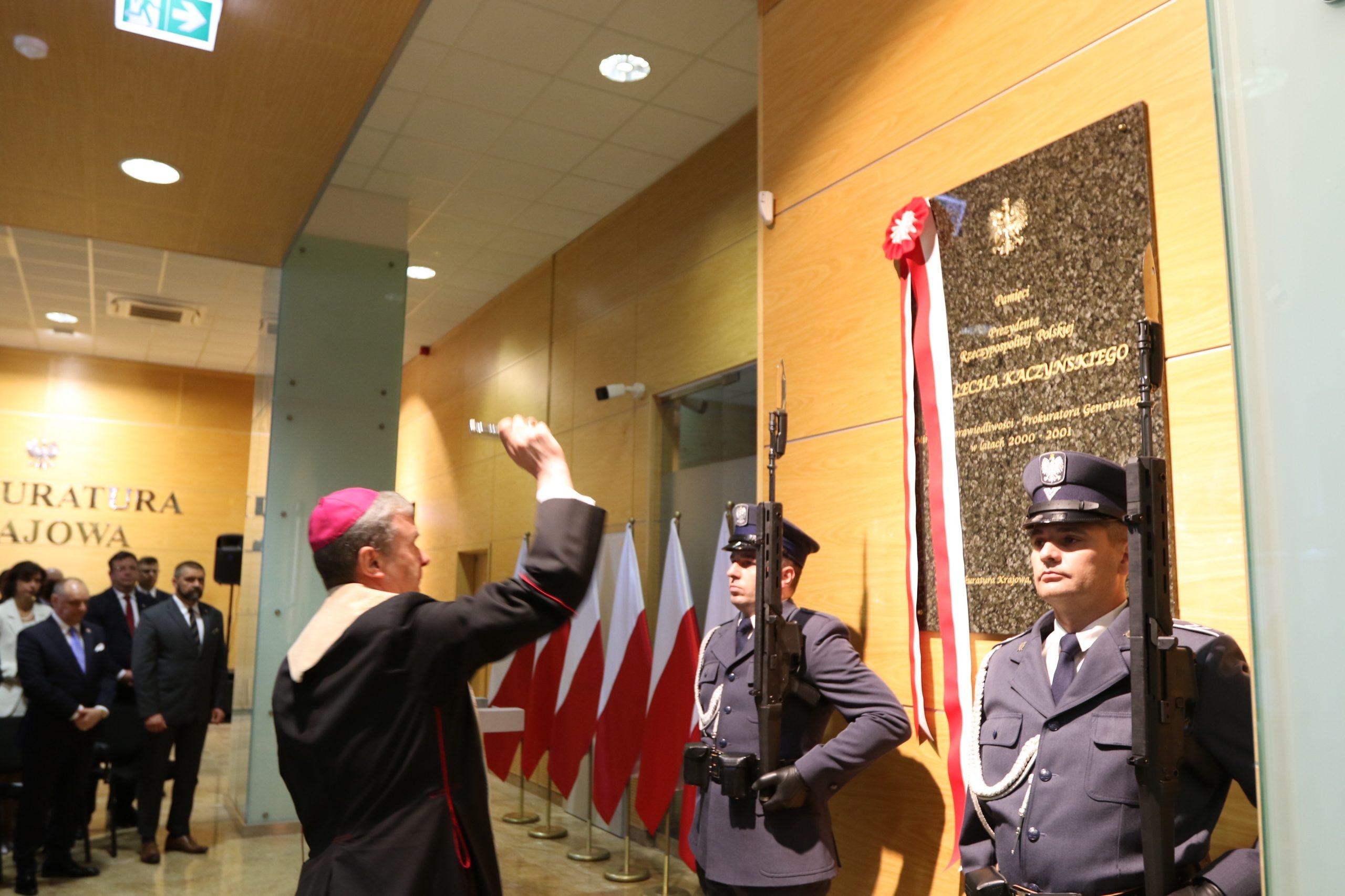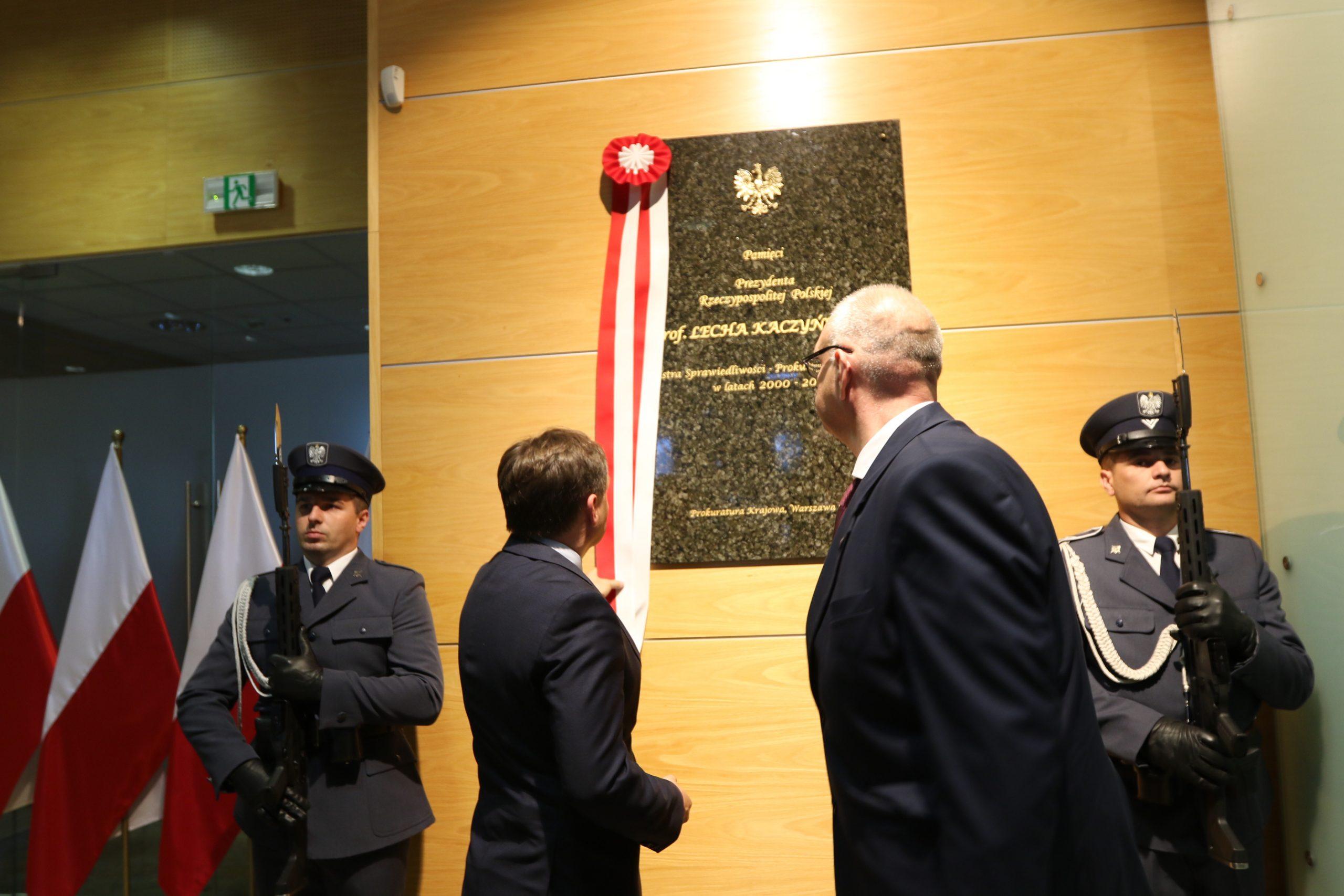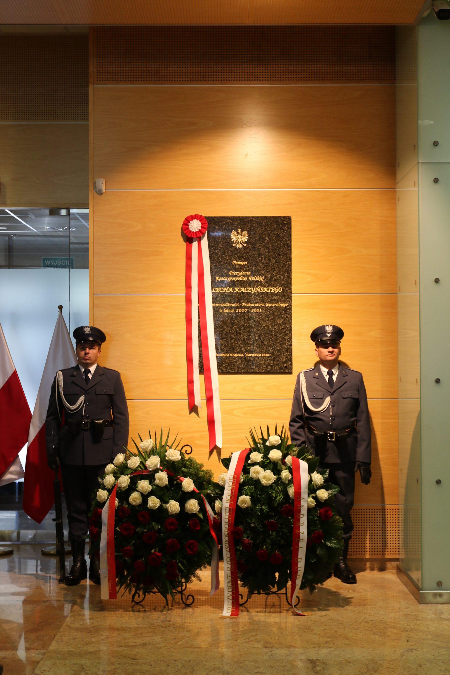 Jako Prezydent Rzeczypospolitej Polskiej prof. Lech Kaczyński działał także na rzecz bezpieczeństwa Polaków, m.in. dążąc on do stworzenia w Polsce silnej i profesjonalnej prokuratury oraz sprawnych, obiektywnie i rzetelnie działających instytucji wymiaru sprawiedliwości. Przywołane zasługi Prezydenta, profesora Lecha Kaczyńskiego dla naszego państwa i społeczeństwa, szczególnie zaś te związane ze sprawowaniem urzędu Ministra Sprawiedliwości – Prokuratora Generalnego, uzasadniły uhonorowanie śp. Prezydenta RP tablicą pamiątkową w siedzibie Prokuratury Krajowej.