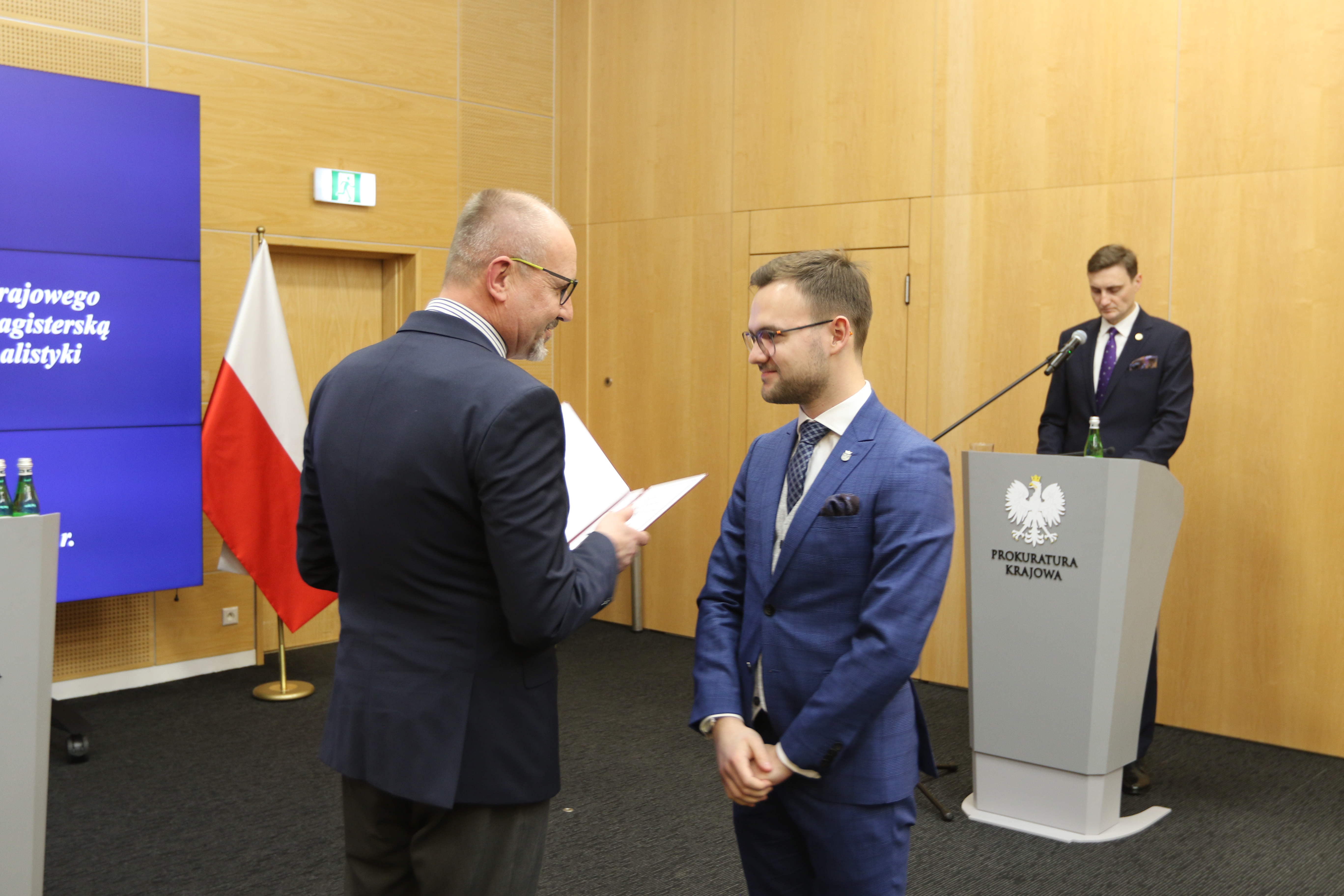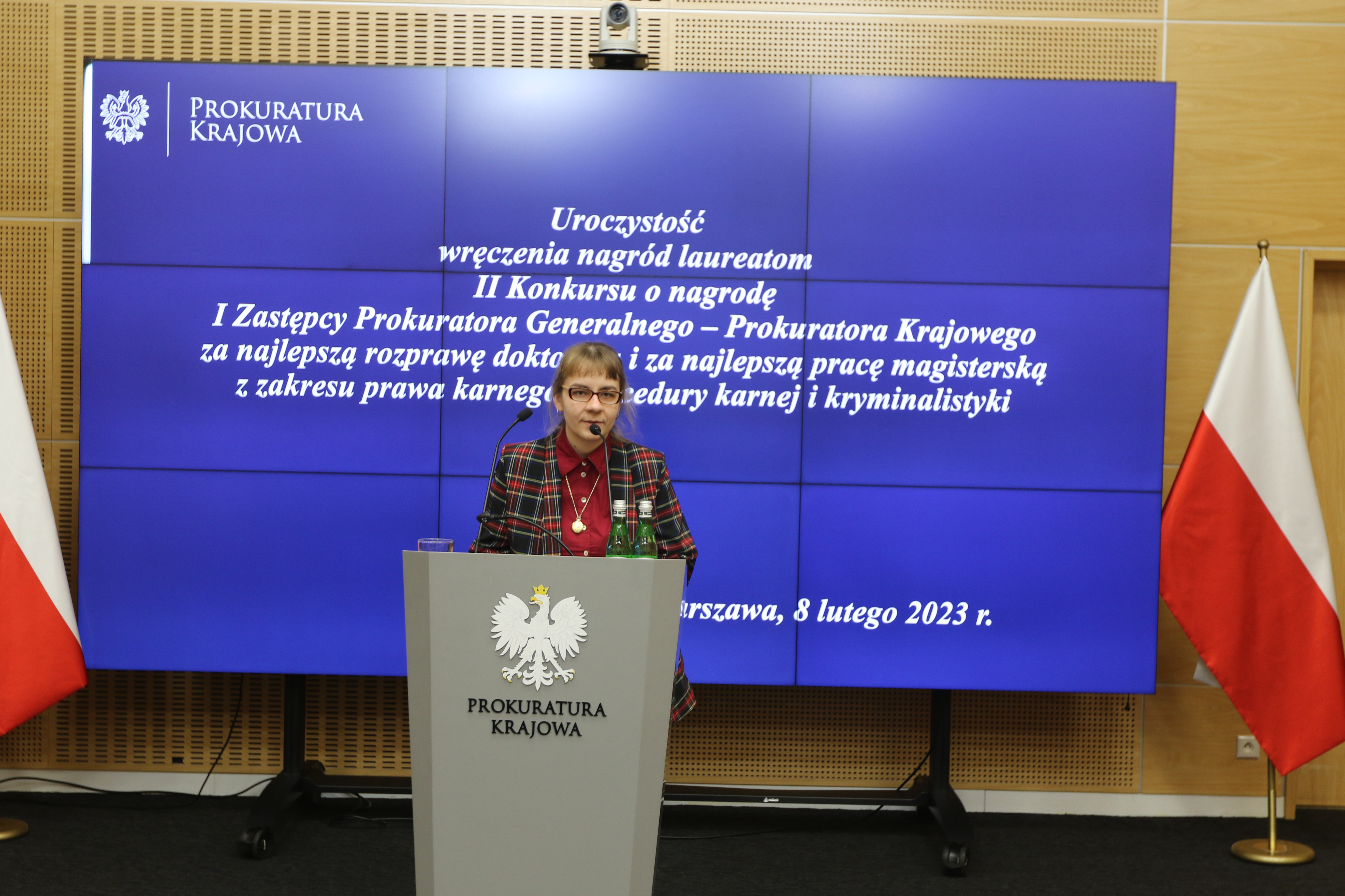 II edycja Konkursu o nagrodę I Zastępcy Prokuratora Generalnego - Prokuratora Krajowego za najlepszą rozprawę doktorską i za najlepszą pracę magisterską z zakresu prawa karnego, procedury karnej i kryminalistyki dobiegła końca. W siedzibie Prokuratury Krajowej 8 lutego 2023 r. odbyło się uroczyste wręczenie nagród, w którym udział wzięli Pan Dariusz Barski I Zastępca Prokuratora Generalnego - Prokurator Krajowy, Pani Beata Marczak – Zastępca Prokuratora Generalnego do Spraw Przestępczości Zorganizowanej i Korupcji, Pan Robert Hernand – Zastępca Prokuratora Generalnego, Pan Przemysław Funiok – Zastępca Prokuratora Generalnego do Spraw Wojskowych i Pan Andrzej Pozorski – Zastępca Prokuratora Generalnego - Dyrektor Głównej Komisji Ścigania Zbrodni przeciwko Narodowi Polskiemu.