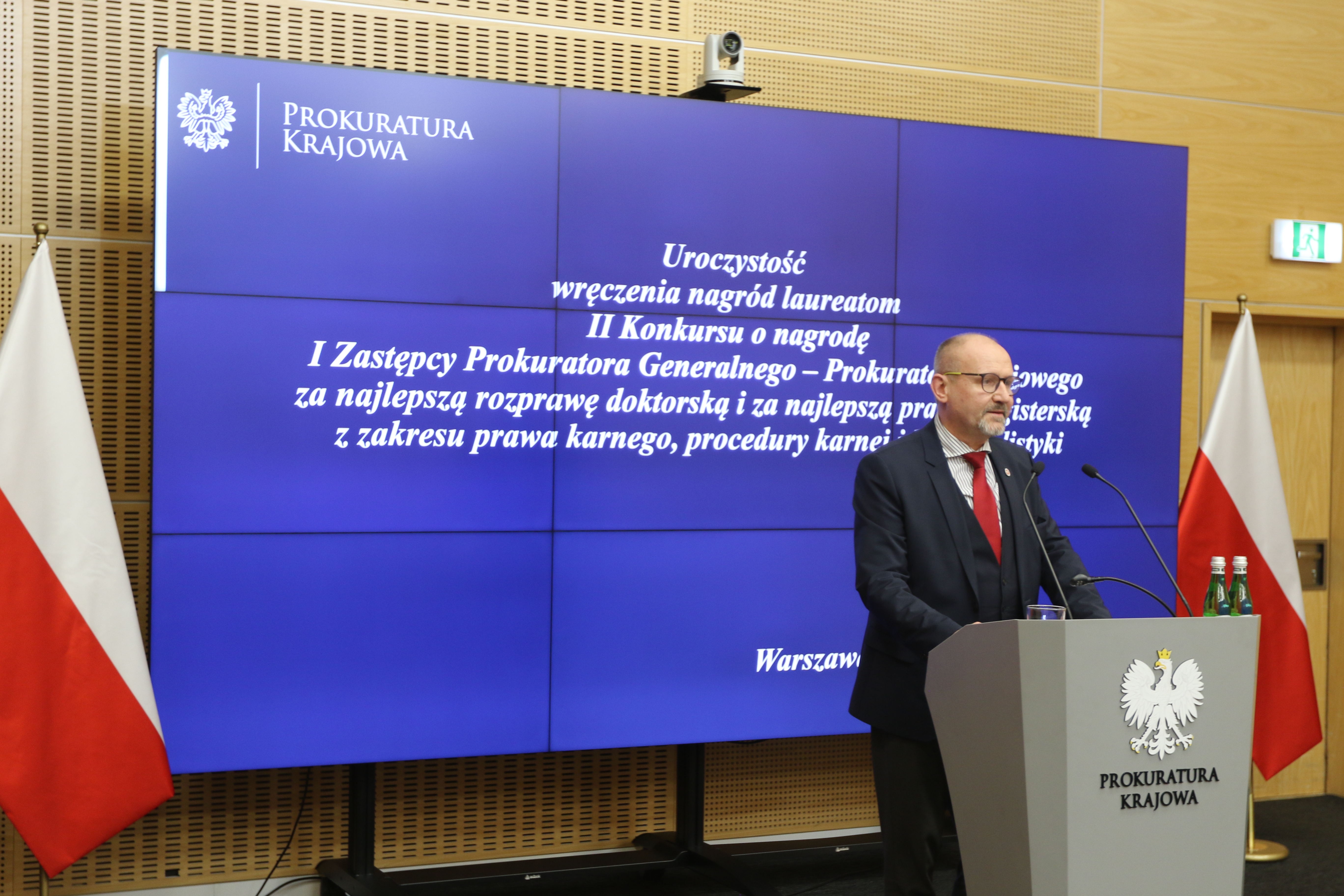 I Zastępca Prokuratora Generalnego - Prokurator Krajowy Pan Dariusz Barski, gratulując laureatom Konkursu zwrócił uwagę, że Konkurs stwarza możliwość uhonorowania osób, które przystępując do napisania rozprawy doktorskiej lub pracy magisterskiej podjęły wysiłek znacznie przekraczający zakres niezbędny do uzyskania stopnia doktora czy też tytułu magistra. Prokurator Krajowy podkreślił, że z uwagi na wysoki walor naukowy i praktyczny zwycięskich i wyróżnionych prac, ich dodatkowym uhonorowaniem będzie publikacja wybranych fragmentów w wydawanym przez Prokuraturę Krajową czasopiśmie „Prokuratura i Prawo”.