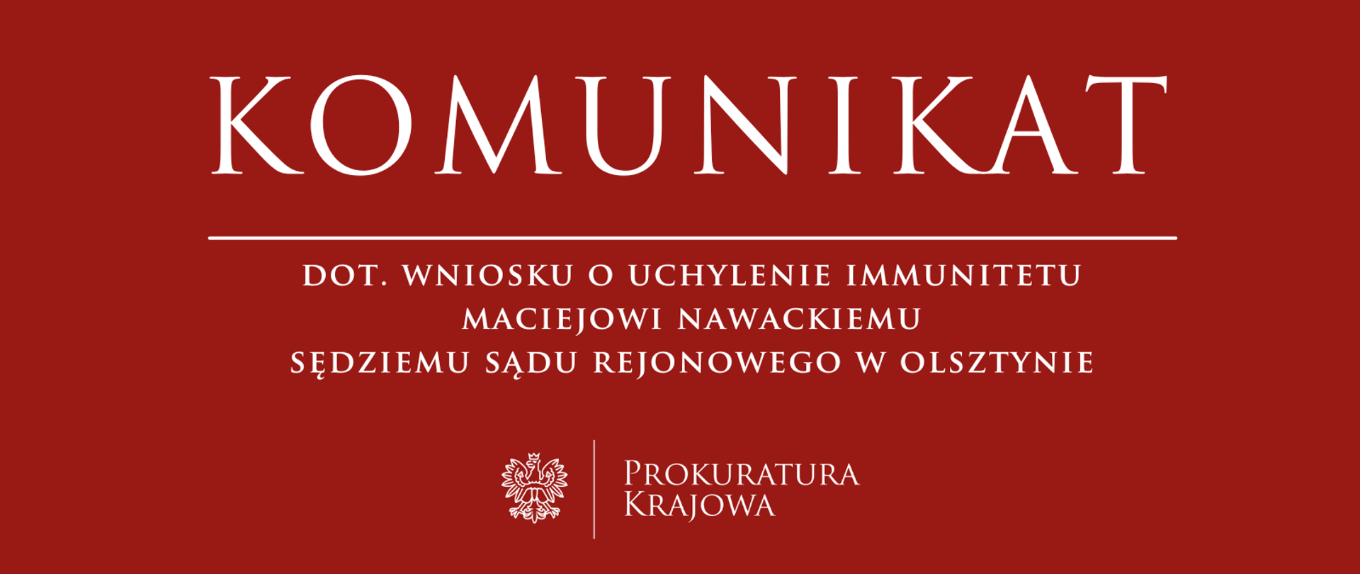 Wydział Spraw Wewnętrznych Prokuratury Krajowej skierował dzisiaj wniosek do Izby Odpowiedzialności Zawodowej Sądu Najwyższego o podjęcie uchwały zezwalającej na pociągnięcie do odpowiedzialności karnej sędziego Sądu Rejonowego w Olsztynie – Macieja Nawackiego.