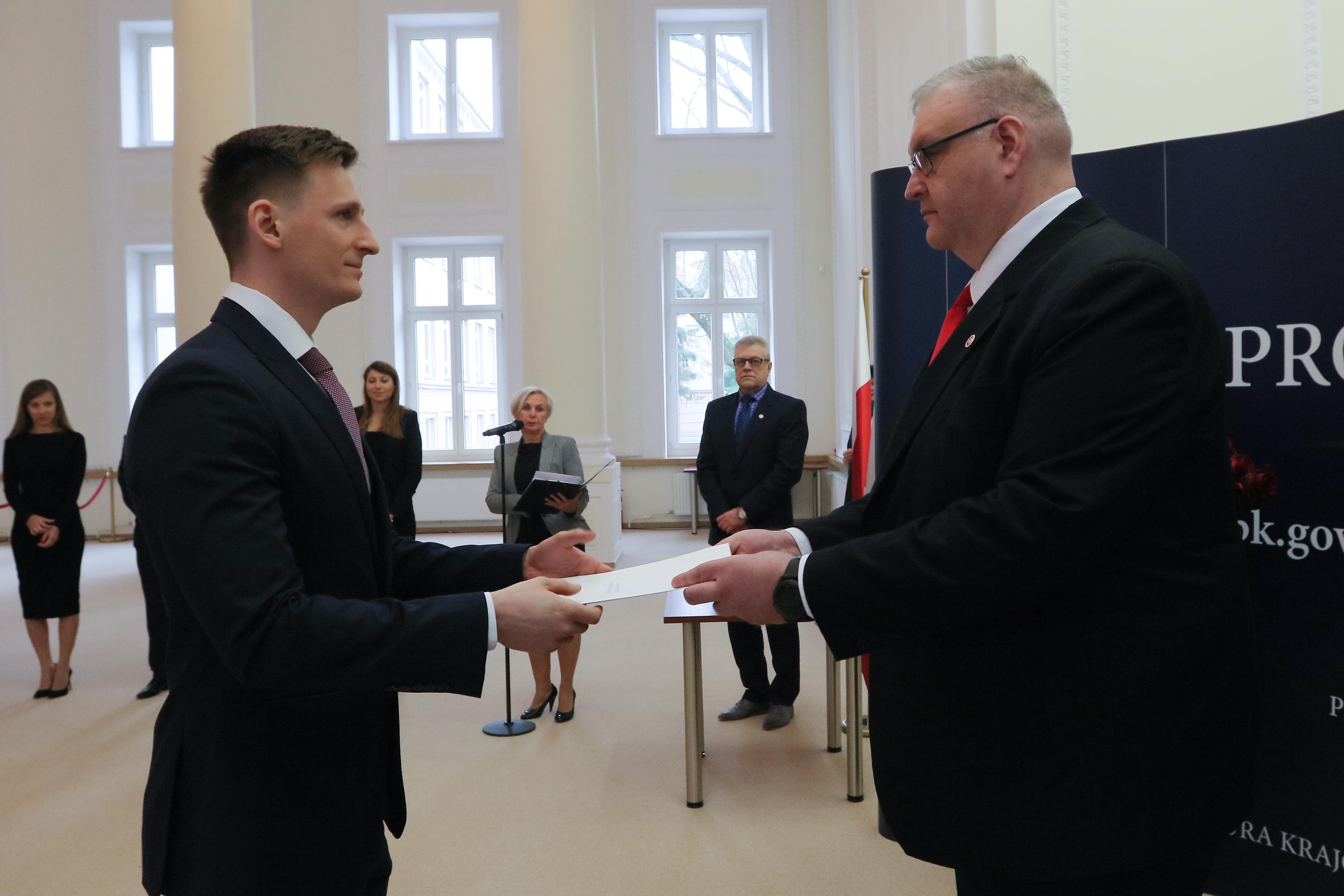 Dziś (19 grudnia 2017 roku) w siedzibie Prokuratury Krajowej odbyła się uroczystość wręczenia nominacji na stanowiska asesorskie. Nominacje wręczyli: I Zastępca Prokuratora Generalnego – Prokurator Krajowy Bogdan Święczkowski oraz Dyrektor Krajowej Szkoły Sądownictwa i Prokuratury prof. Małgorzata Manowska.