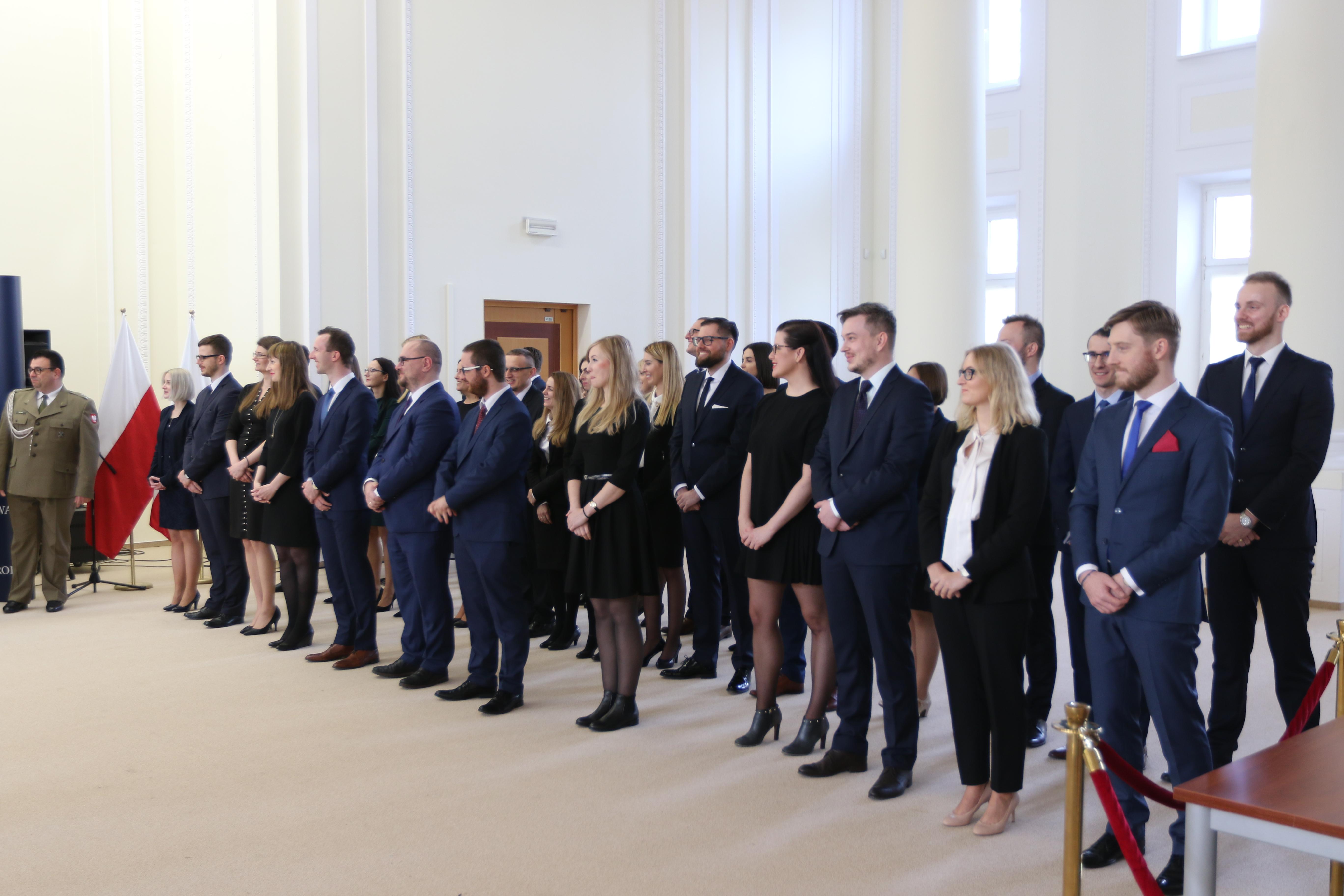 W uroczystości udział wzięli: Zastępca Prokuratora Krajowego Agata Gałuszka – Górska, Dyrektor Biura Kadr Leszek Drwęski, Zastępca Dyrektora Biura Kadr Marek Piotrowicz, Zastępca Dyrektora ds. aplikacji prokuratorskiej Prokurator Prokuratury Regionalnej Ryszard Tłuczkiewicz oraz Naczelnik Wydziału Organizacyjno – Prawnego Departamentu do Spraw Wojskowych Prokuratury Krajowej ppłk. Maciej Nowak.
