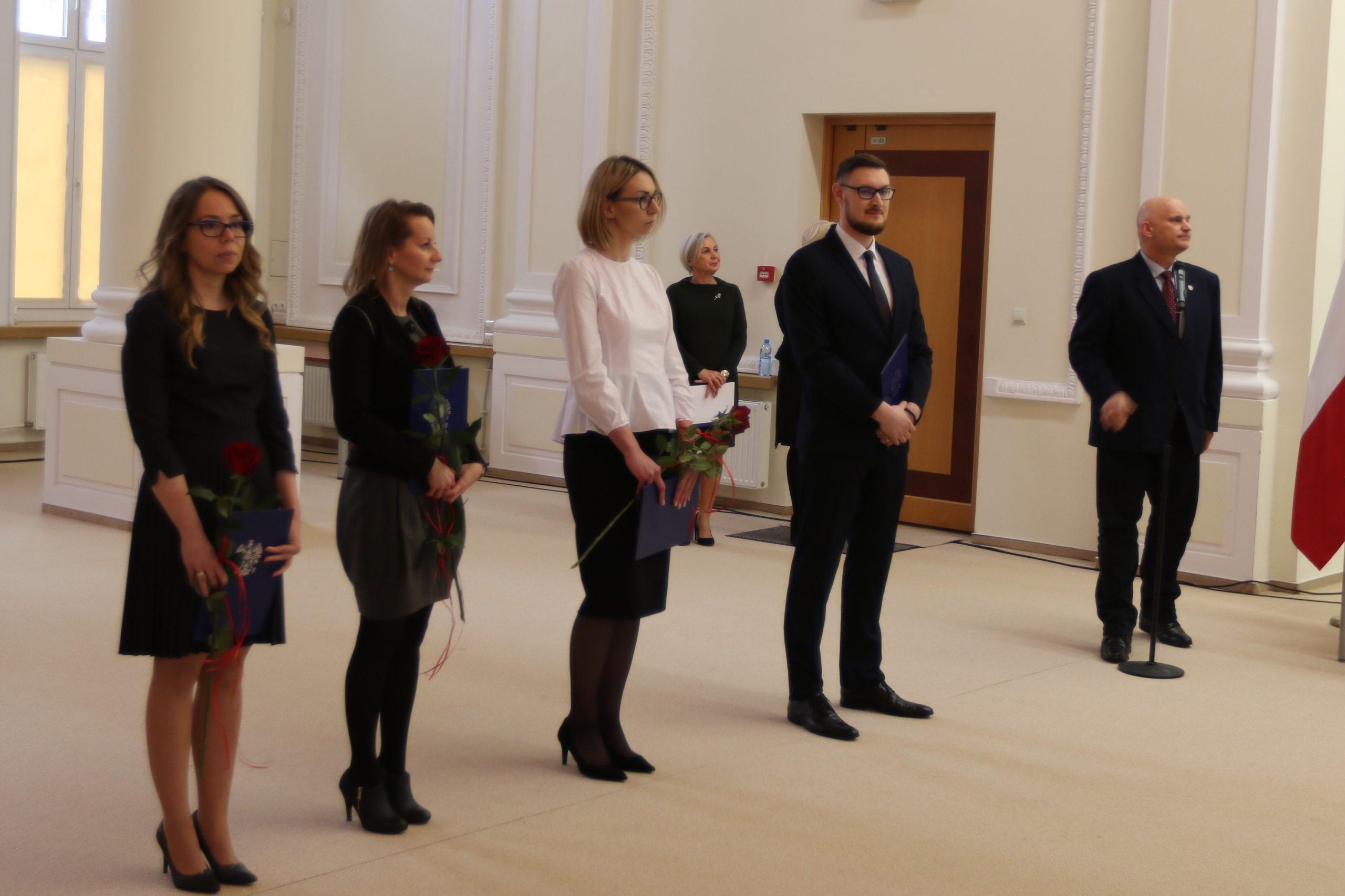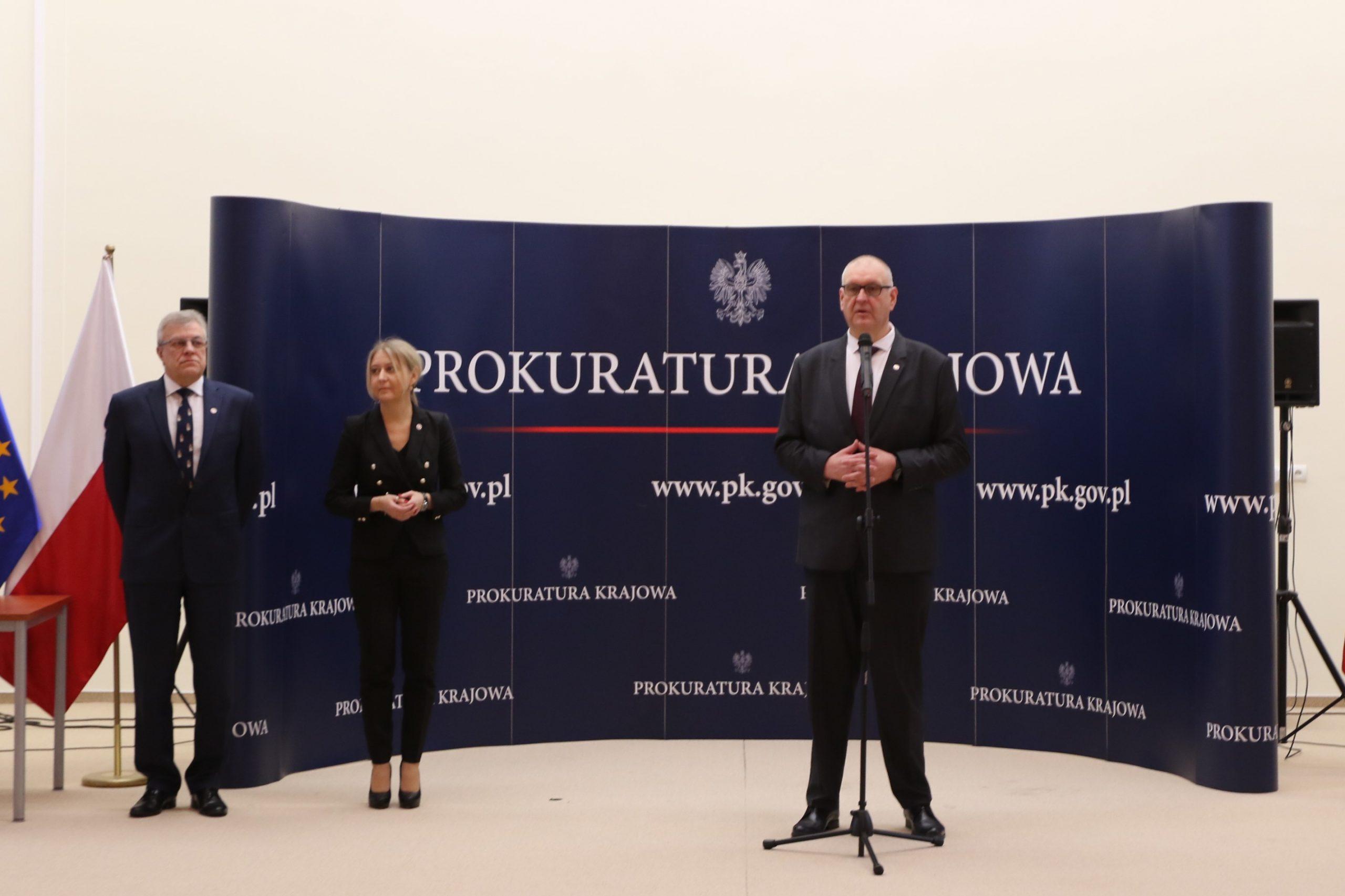 W uroczystości udział wzięli: Zastępca Prokuratora Krajowego Agata Gałuszka – Górska, Dyrektor Biura Kadr Prokuratury Krajowej Leszek Drwęski oraz Zastępca Dyrektora Biura Kadr Prokuratury Krajowej Marek Piotrowicz