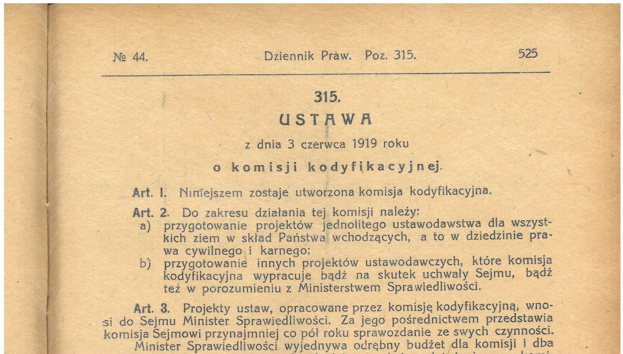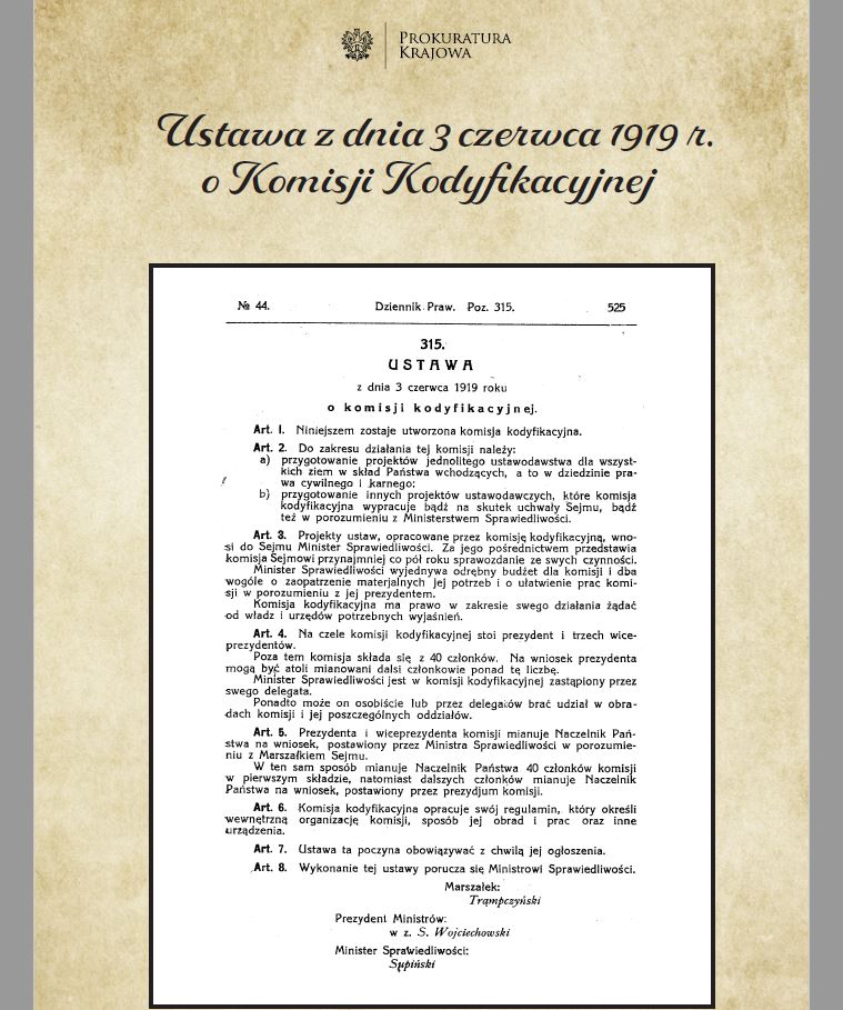 Uchwalona 3 czerwca 1919 r .przez pierwszy sejm odrodzonej Rzeczypospolitej ustawa, na mocy której utworzono Komisję Kodyfikacyjną, miała syntetyczny, ramowy charakter.