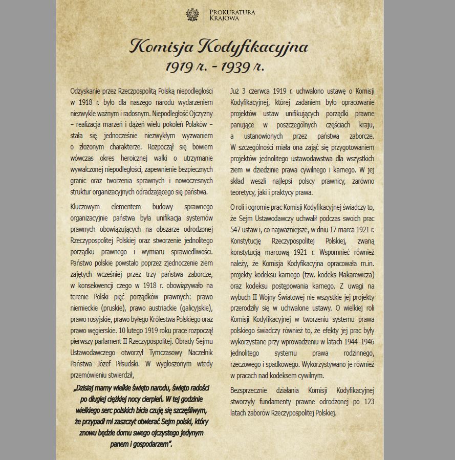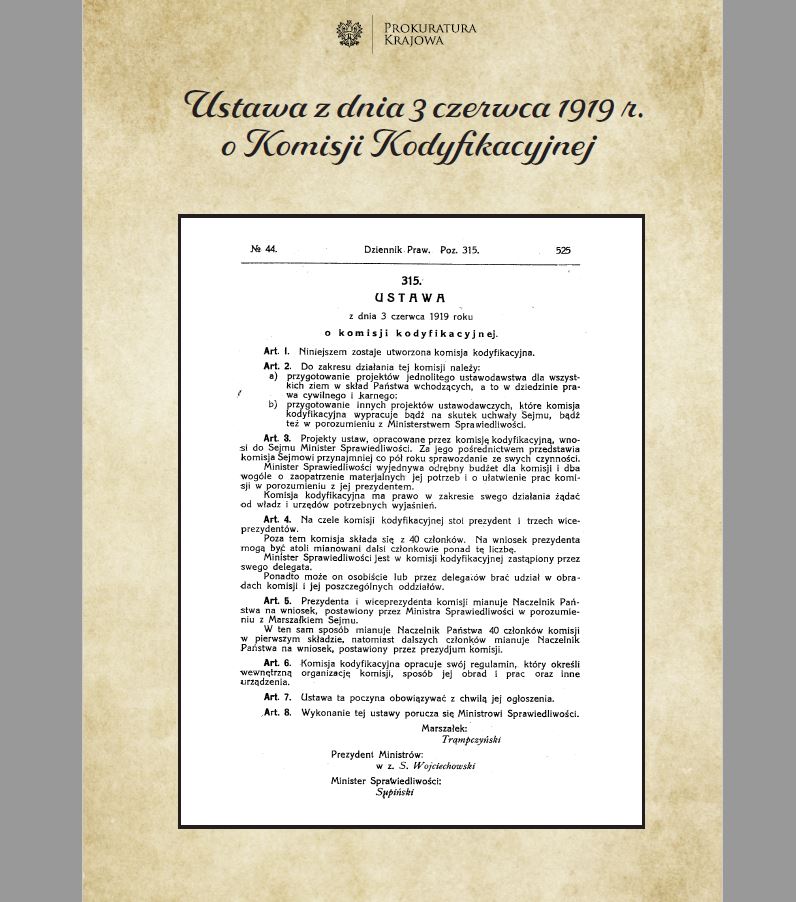 Z okazji kolejnej rocznicy utworzenia w dniu 3 czerwca 1919 r. Komisji Kodyfikacyjnej, w siedzibie Prokuratury Krajowej została udostępniona wystawa poświęcona tej instytucji.
