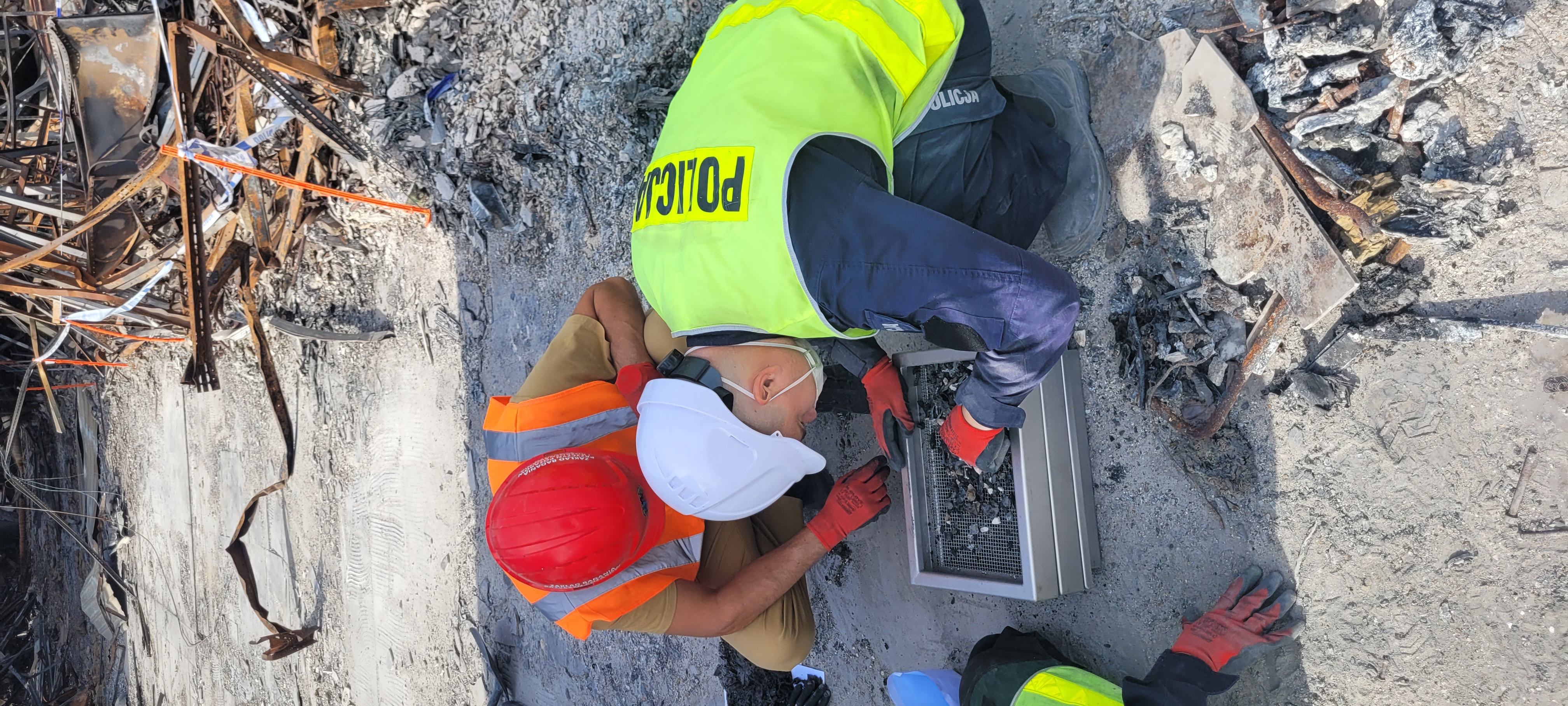 Na miejscu pracowało jednocześnie 6 grup oględzinowych, w skład których wchodzili prokuratorzy, policjanci, technicy, biegli z Akademii Pożarniczej w Warszawie oraz operatorzy maszyn. Przez cały czas obecni byli prowadzący śledztwo prokuratorzy z mazowieckich "pezetów" oraz zespoły procesowe z wydziału dochodzeniowo-śledczego Komendy Stołecznej Policji.