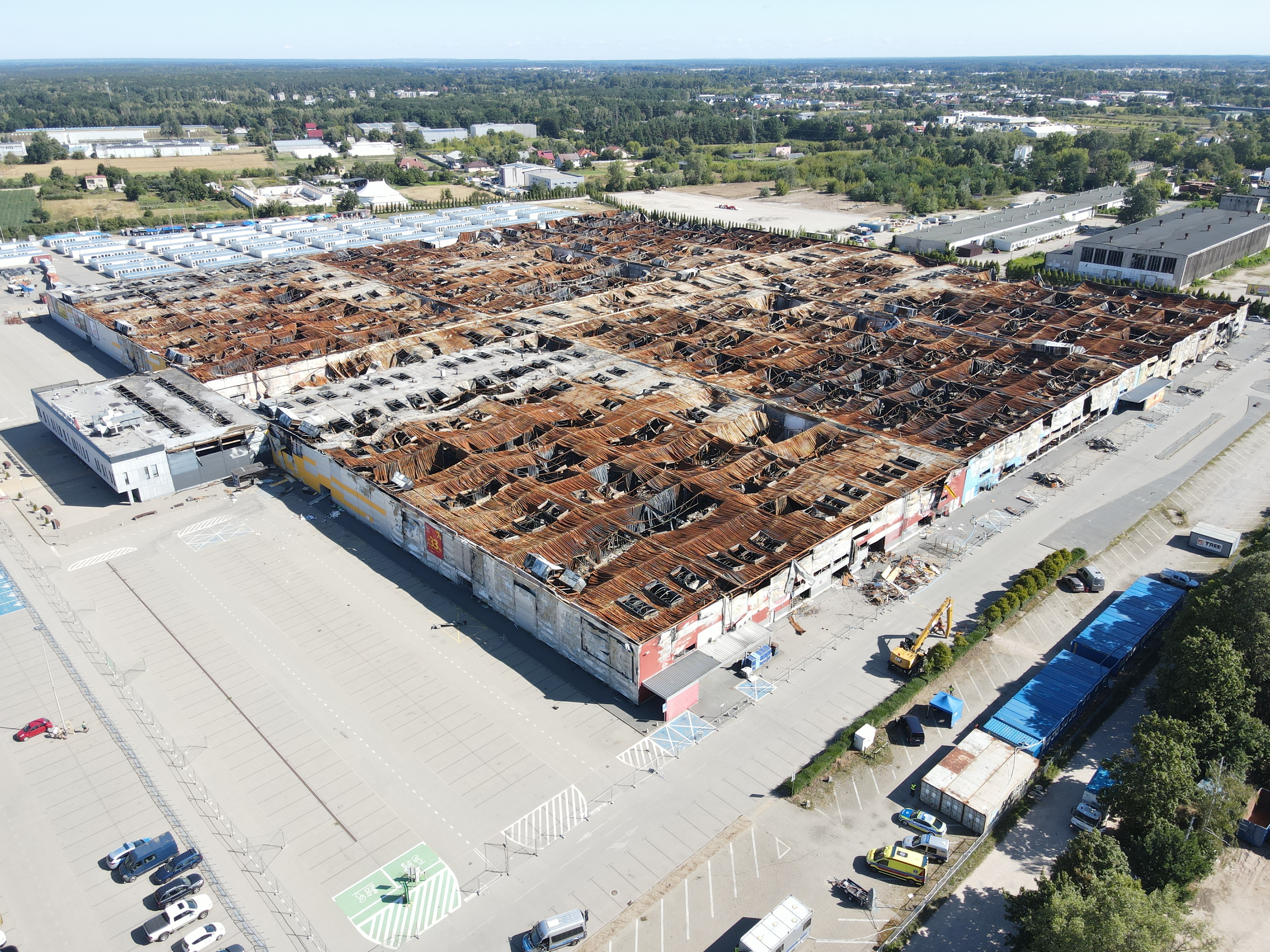 Do pożaru Centrum Handlowego Marywilska 44 doszło 12 maja 2024 r. Oględziny pogorzeliska rozpoczęto 30 lipca 2024 r. - niezwłocznie u po uprawomocnieniu się decyzji nadzoru budowlanego zezwalającej na rozbiórkę spalonej hali.