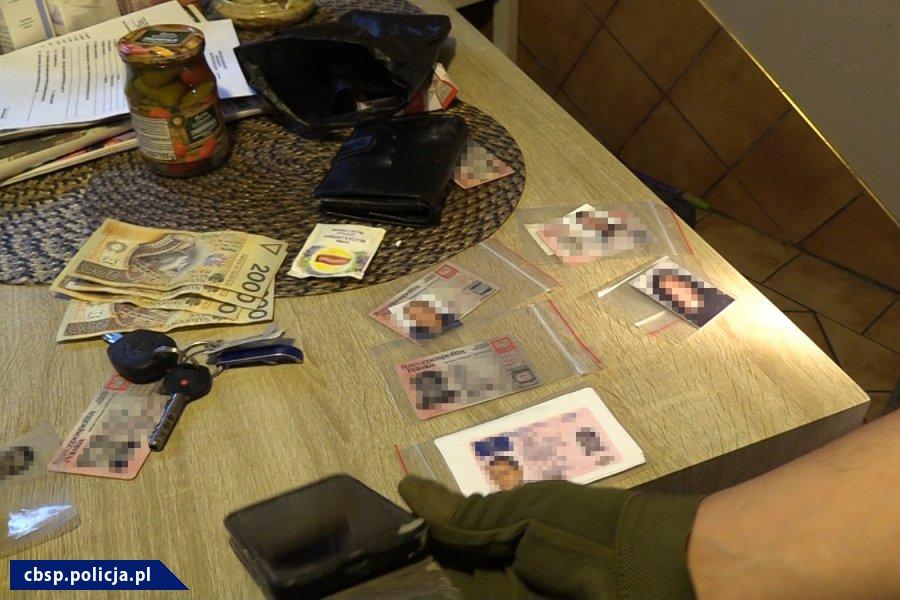 Podczas przeszukań ujawniono sfałszowane dokumenty tożsamości oraz szereg półproduktów i narzędzi służących do fałszowania dokumentów, a także komputer ze specjalistycznym pakietem programów graficznych.