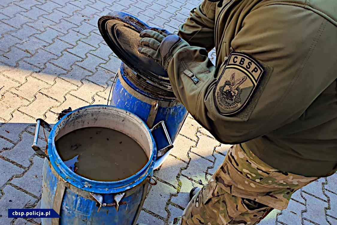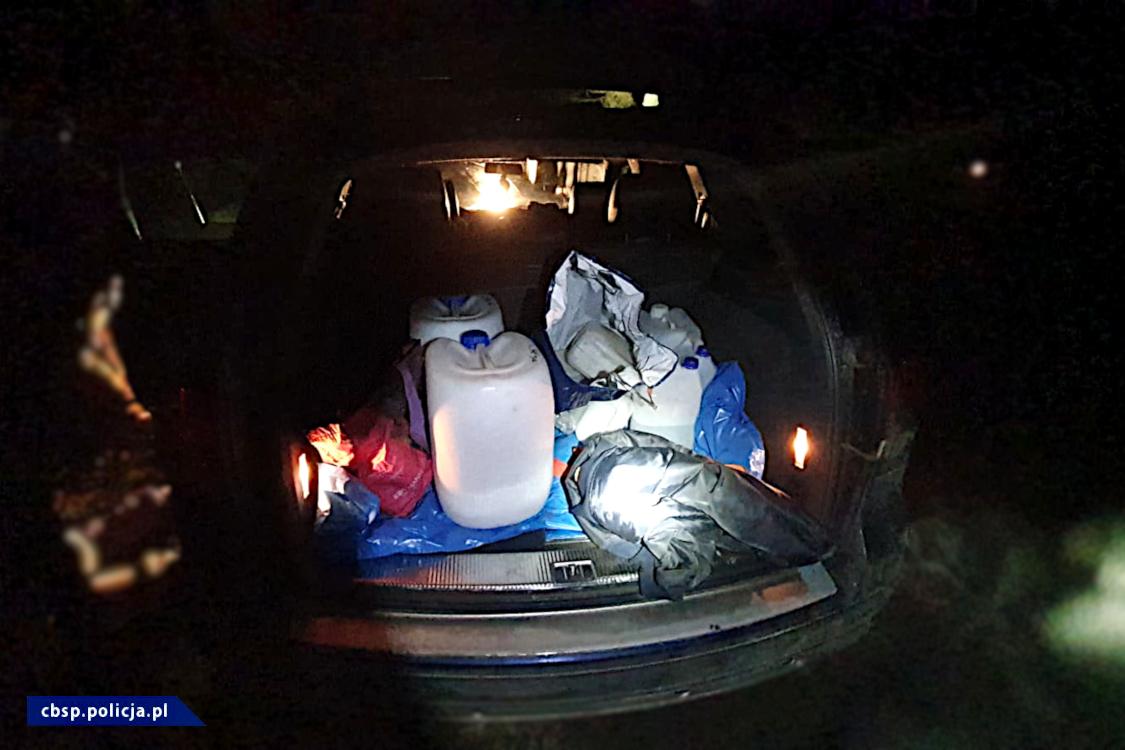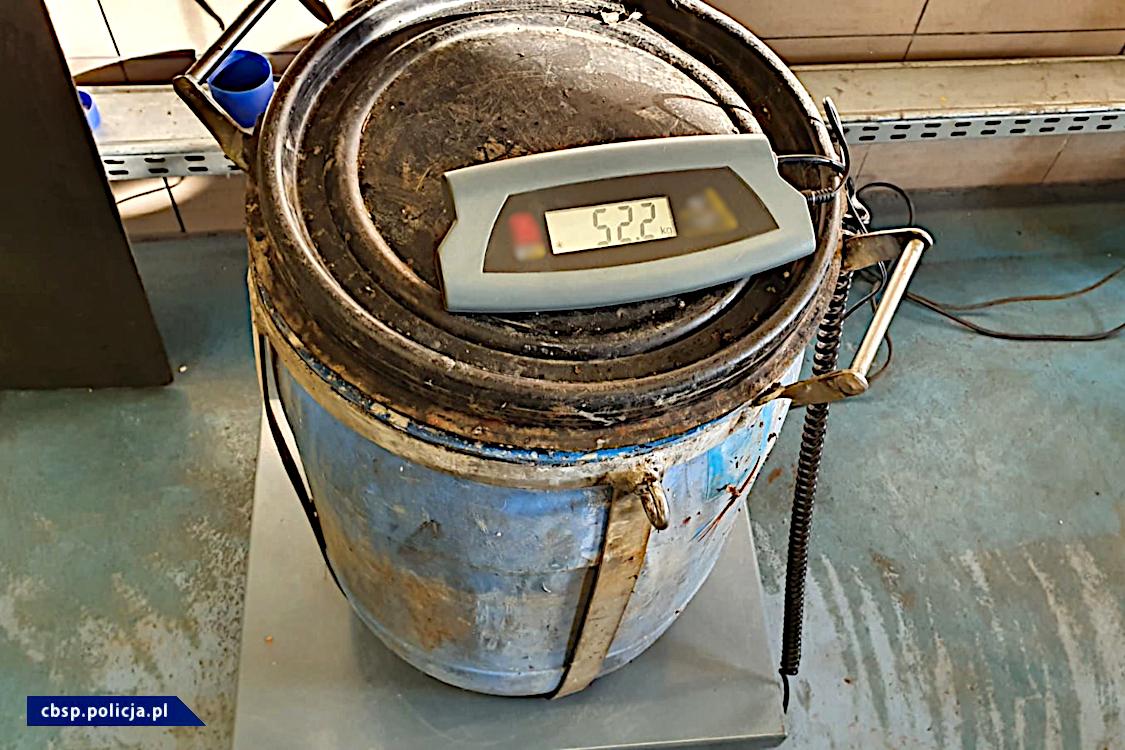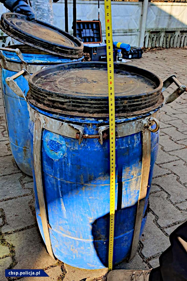 W miejscu zatrzymania ujawniono wkopane w ziemię beczki z zawartością 60 litrów mieszaniny reakcyjnej cieczy z osadem w trakcie końcowego procesu wytwarzania amfetaminy, z czego uzyskano ponad 29 litrów płynnej amfetaminy. Z takiej ilości substancji można wytworzyć około 40 kg siarczanu amfetaminy. Zabezpieczono także podobną ilość pozostałości po przeprowadzonej syntezie. W samochodzie, którym poruszali się zatrzymani, ujawniono przedmioty zwykle wykorzystywane do przeprowadzenia reakcji chemicznej określoną metodą, której efektem końcowym jest amfetamina.