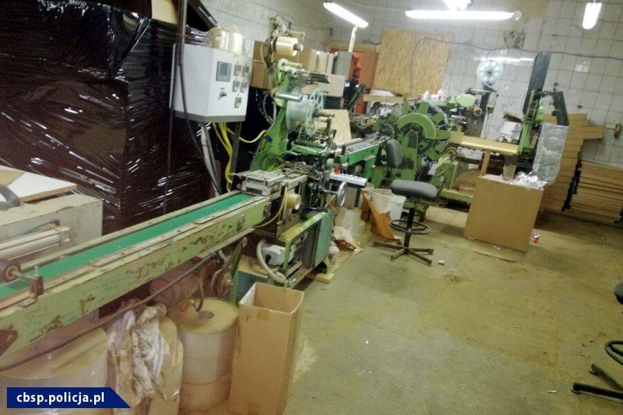 W wyniku przeszukania hali znajdującej się na terenie wytypowanej wcześniej posesji ujawniono i zabezpieczono profesjonalne maszyny, za pomocą których produkowane były papierosy oznaczone logo znanej tytoniowej marki. Zabezpieczono także ponad 375 tysięcy sztuk podrabianych papierosów wraz z komponentami do ich produkcji, m.in. filtrami, klejami, gilzami, bibułą papierosową oraz krajanką tytoniową w ilości około 2 tysięcy kilogramów.