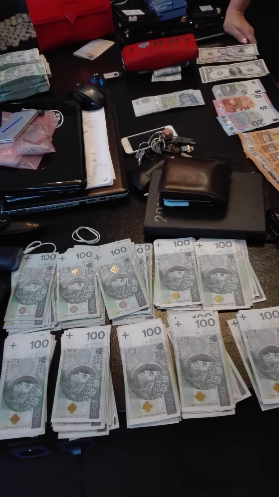 o łącznej wartości 636 tysięcy złotych oraz gotówkę wyjętą z automatów w kwocie ponad 63 tysiące złotych.