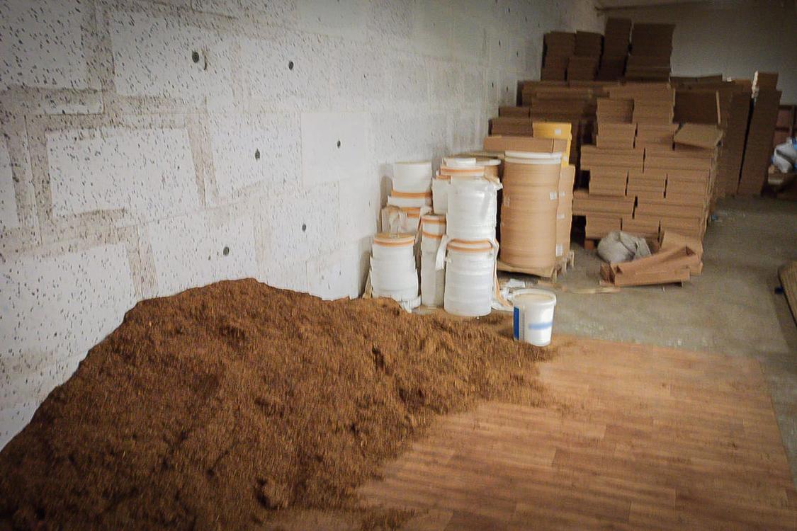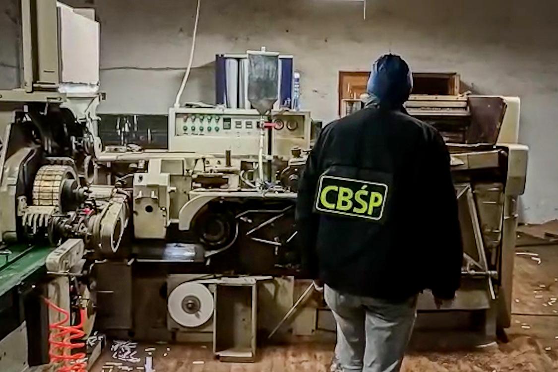 Podczas realizowanych czynności zabezpieczono maszynę służącą do produkcji papierosów. Eksperci wstępnie oszacowali wydajność maszyny na co najmniej 1,5 tysięcy sztuk papierosów na minutę, a to pozwala wyprodukować dziennie 720 tys., w skali miesiąca to blisko 15 mln sztuk papierosów. Zabezpieczono także 100 tysięcy gotowych papierosów, komponenty służące do ich produkcji, m.in. ponad 1,5 tony krajanki tytoniowej, hurtowe ilości bibuły papierosowej, korkowej okleiny filtra z podrobionym znakiem towarowym jednego ze znanych koncernów tytoniowych, gilzy oraz kleje.
