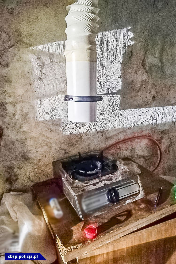 W trakcie czynności w jednym z pomieszczeń gospodarczych na terenie powiatu zgorzeleckiego w podłodze w psim kojcu ujawniono ukryte wejście. Wąskie przejście prowadziło do laboratorium, w którym wytwarzano metamfetaminę. Ujawniono tam specjalistyczny system produkcji narkotyku, chłodzenia i wentylacji obiektu. Linia produkcyjna została zabezpieczona przez funkcjonariuszy. Przejęto również m.in. naczynia laboratoryjne oraz ponad 200 litrów różnych substancji chemicznych, mogących służyć do wytwarzania narkotyków.