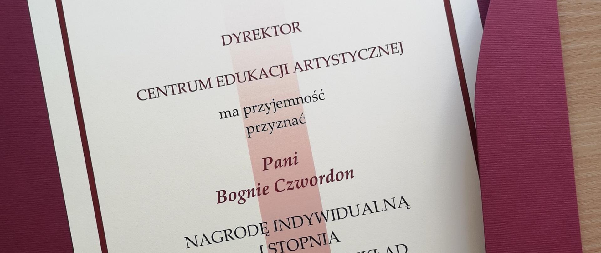 19.10.2022Dyrektor Bogna Czwordon z wyróżnieniem