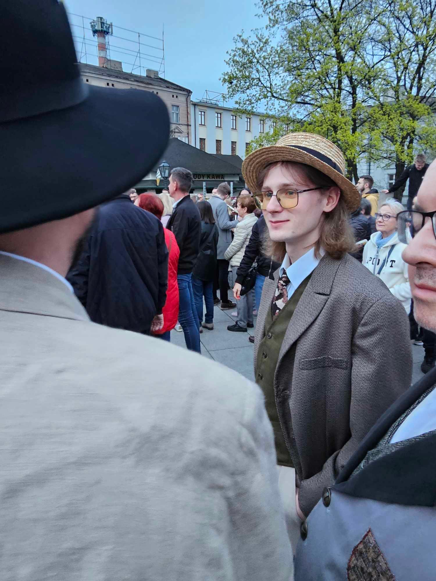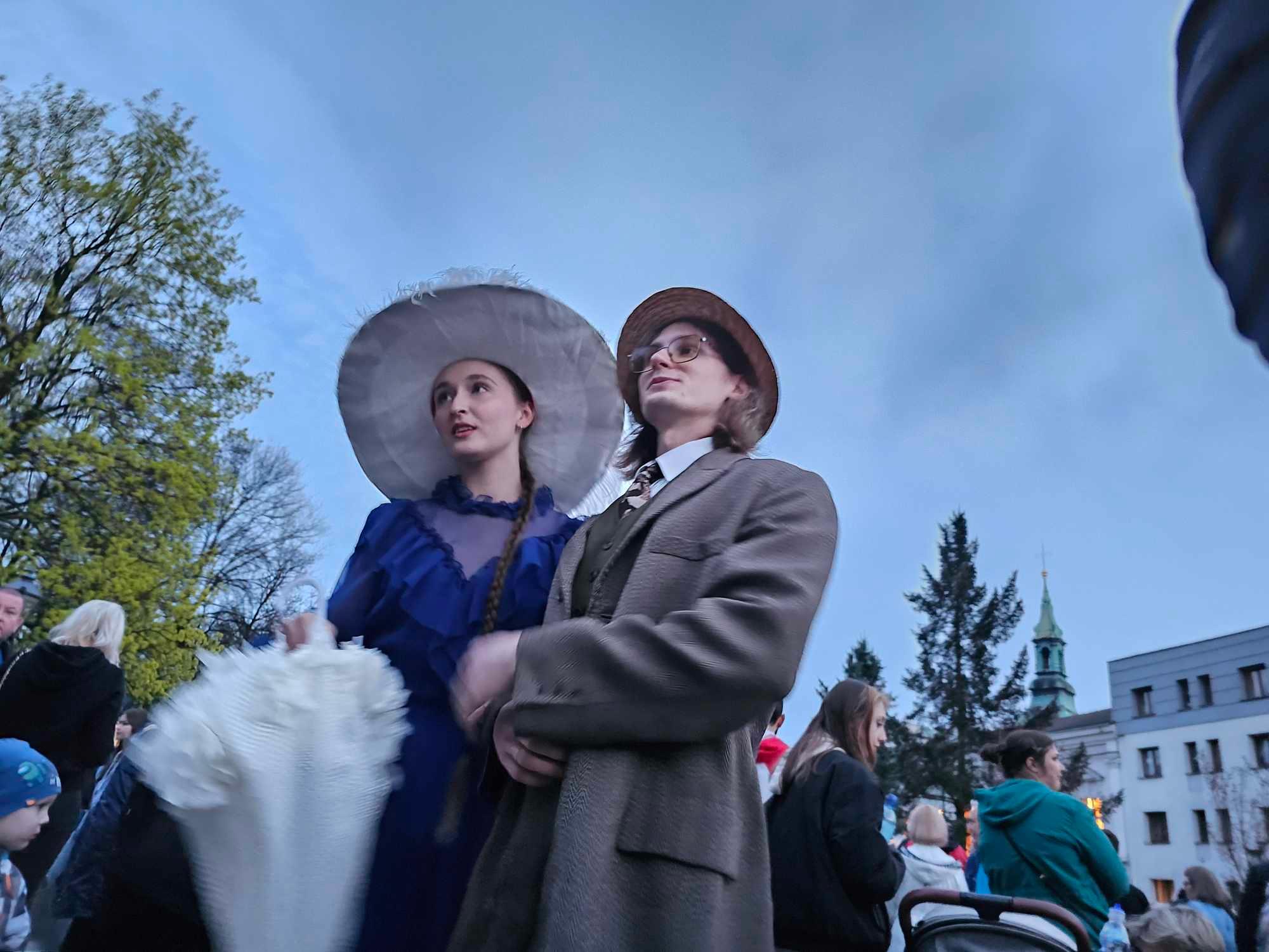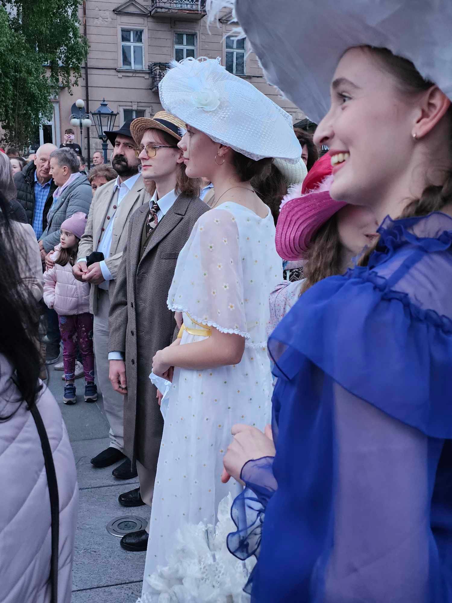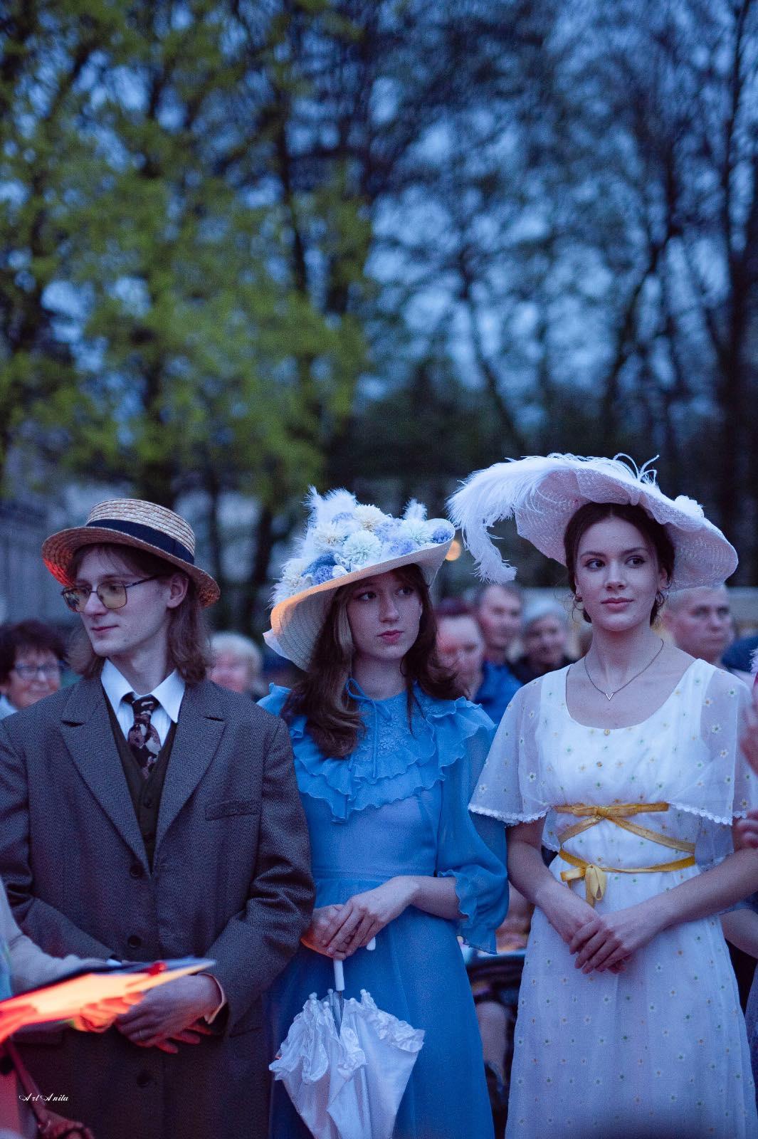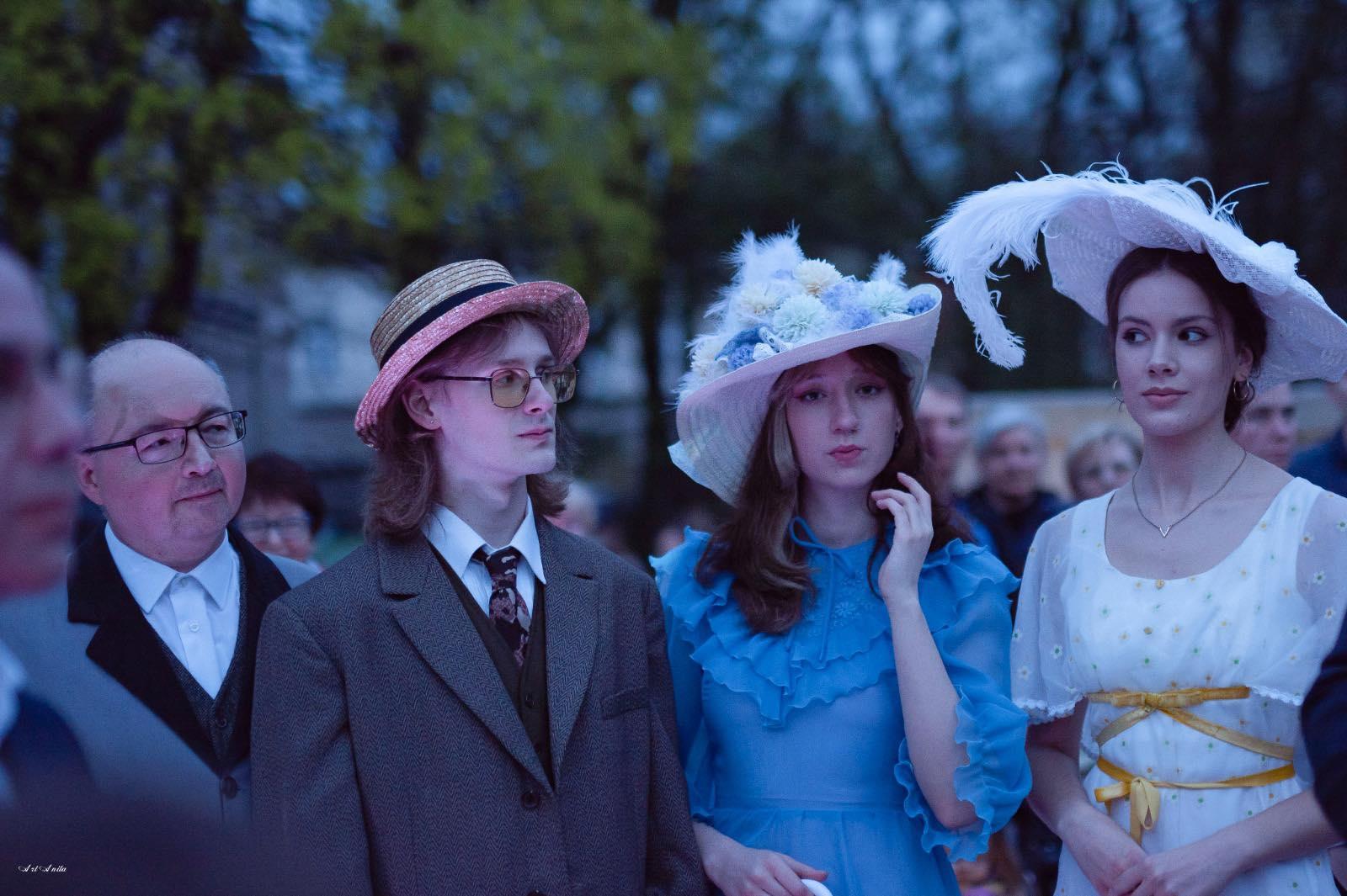 Nasi słuchacze ubrali się w strój z epoki. Wspólnie z bibliotekarzami Karolem Pietrzakiem oraz Sebastianem Chudzikiem z Miejskiej Biblioteki Publicznej im. Adama Asnyka w Kaliszu odegrali rolę mieszkańców Kalińca z powieści Marii Dąbrowskiej.