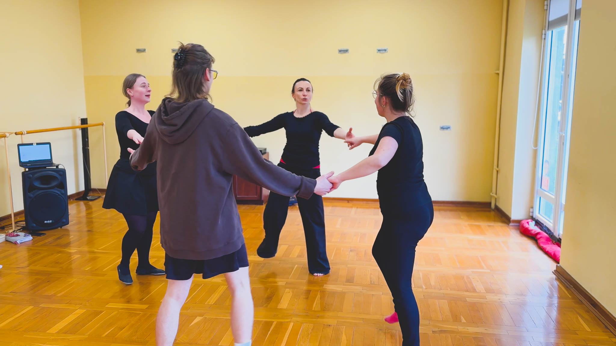 Podczas zajęć dr Anna Wytych-Wierzgacz kładzie nacisk nie tylko na poznanie tradycyjnych kroków, układów choreograficznych, ale także prowadzi słuchaczy przez fascynującą podróż po świecie naszych przodków.