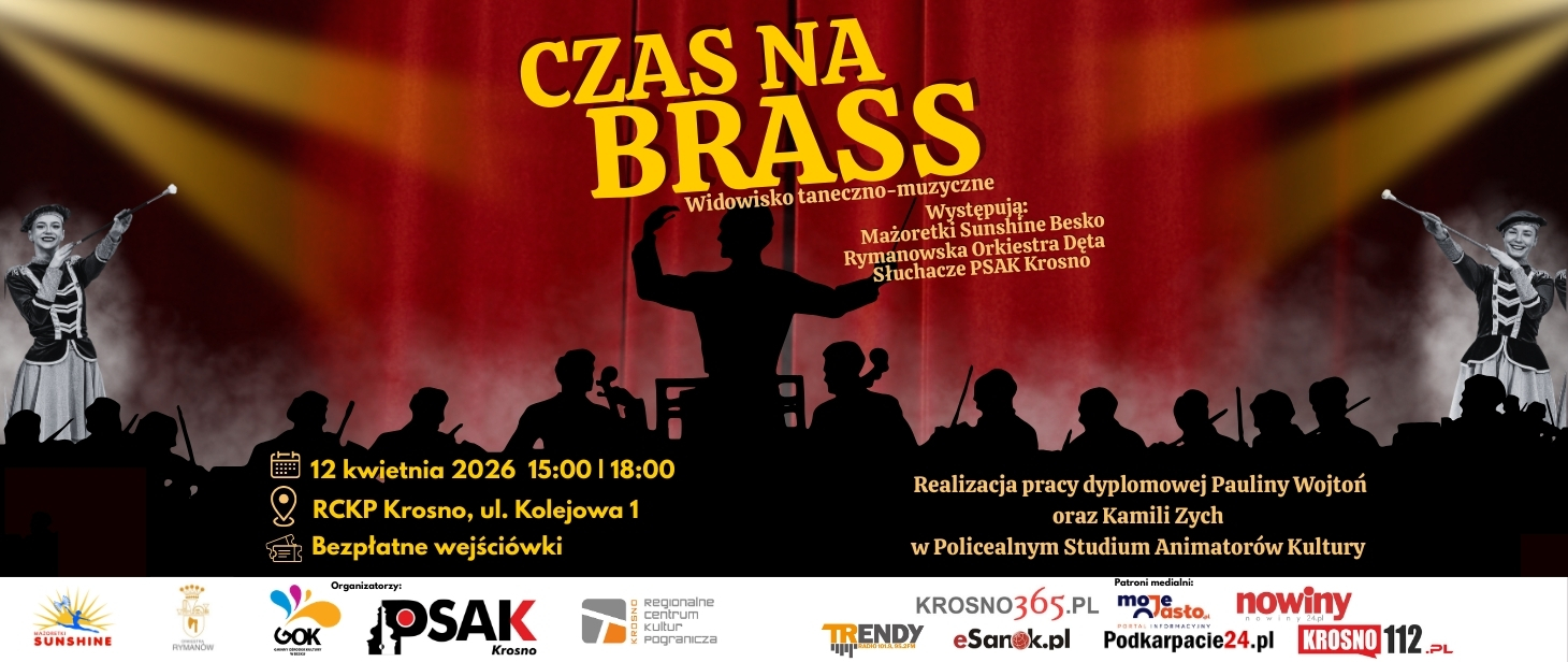 Policealne Studium Animatorów Kultury w Krośnie oraz Gminny Ośrodek Kultury w Besku zaprasza na widowisko taneczno-muzyczne „Czas na brass”.