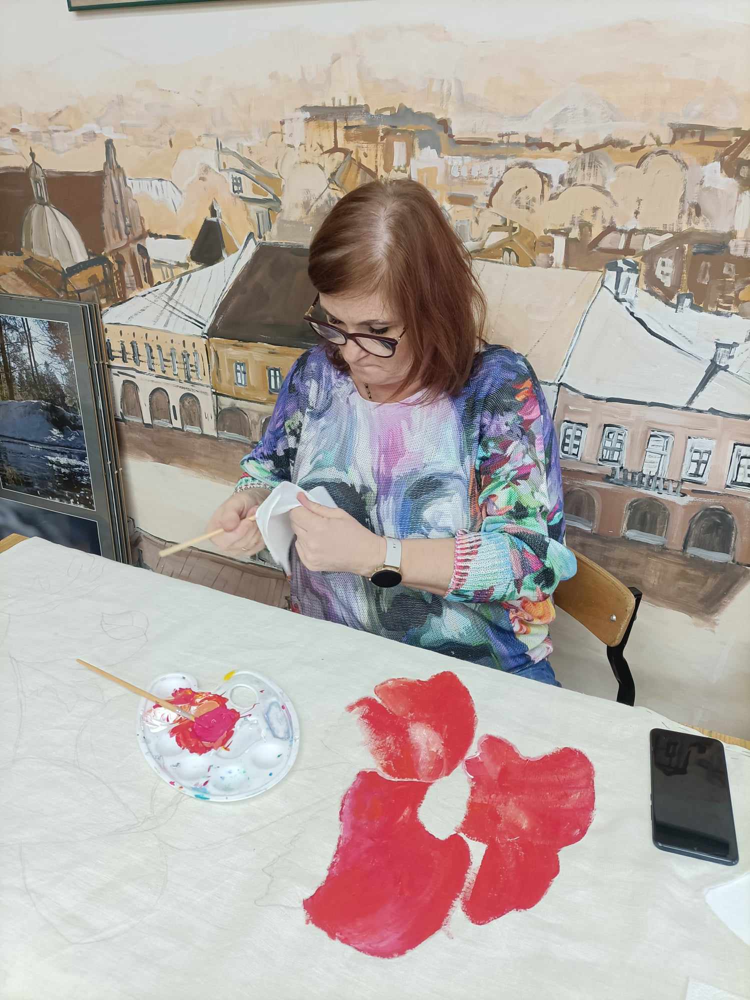 Animatorzy kultury regionalnej doskonalili warsztat rękodzielniczy. Malowanie na tkaninie sprawia wiele radości i satysfakcji.