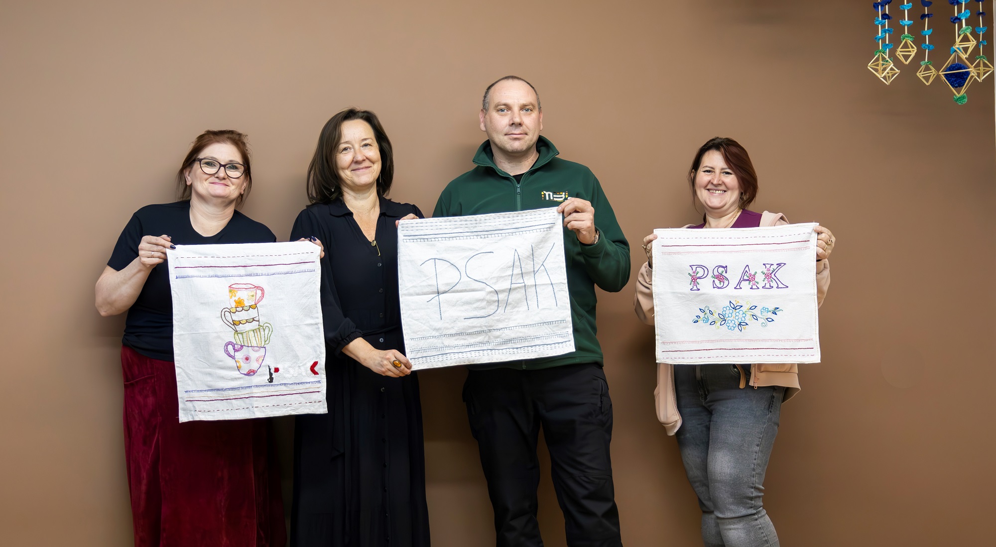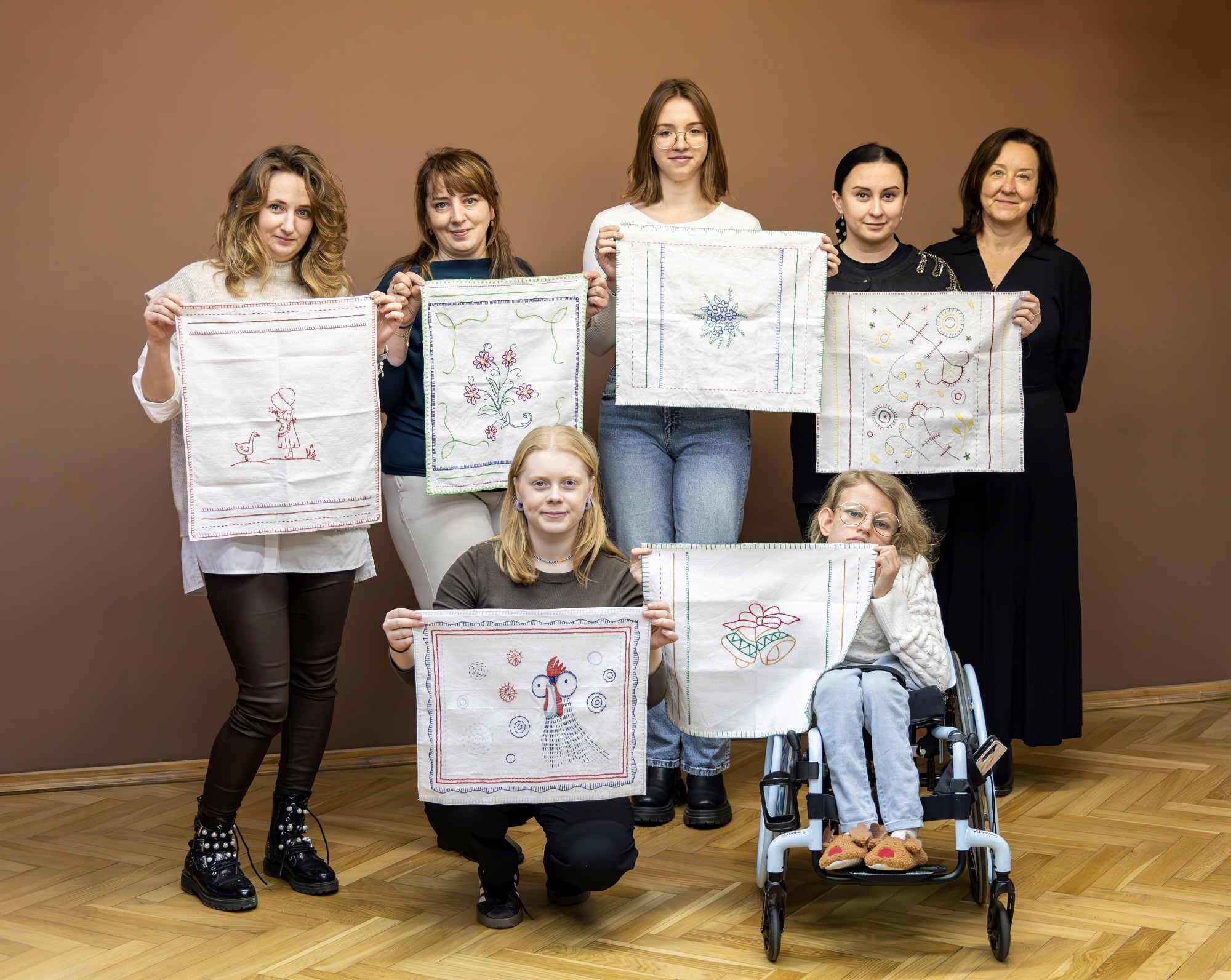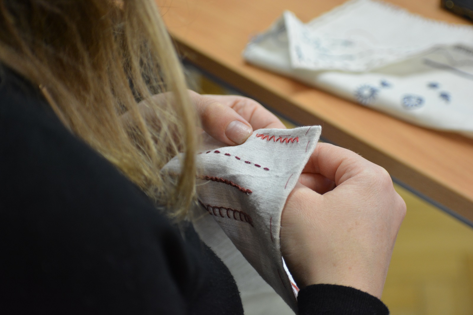 Było radośnie i twórczo. Pod czujnym okiem pani Marty Terrier animatorzy kultury regionalnej poznawali podstawy haftu oraz wykonali makatki według własnego projektu.