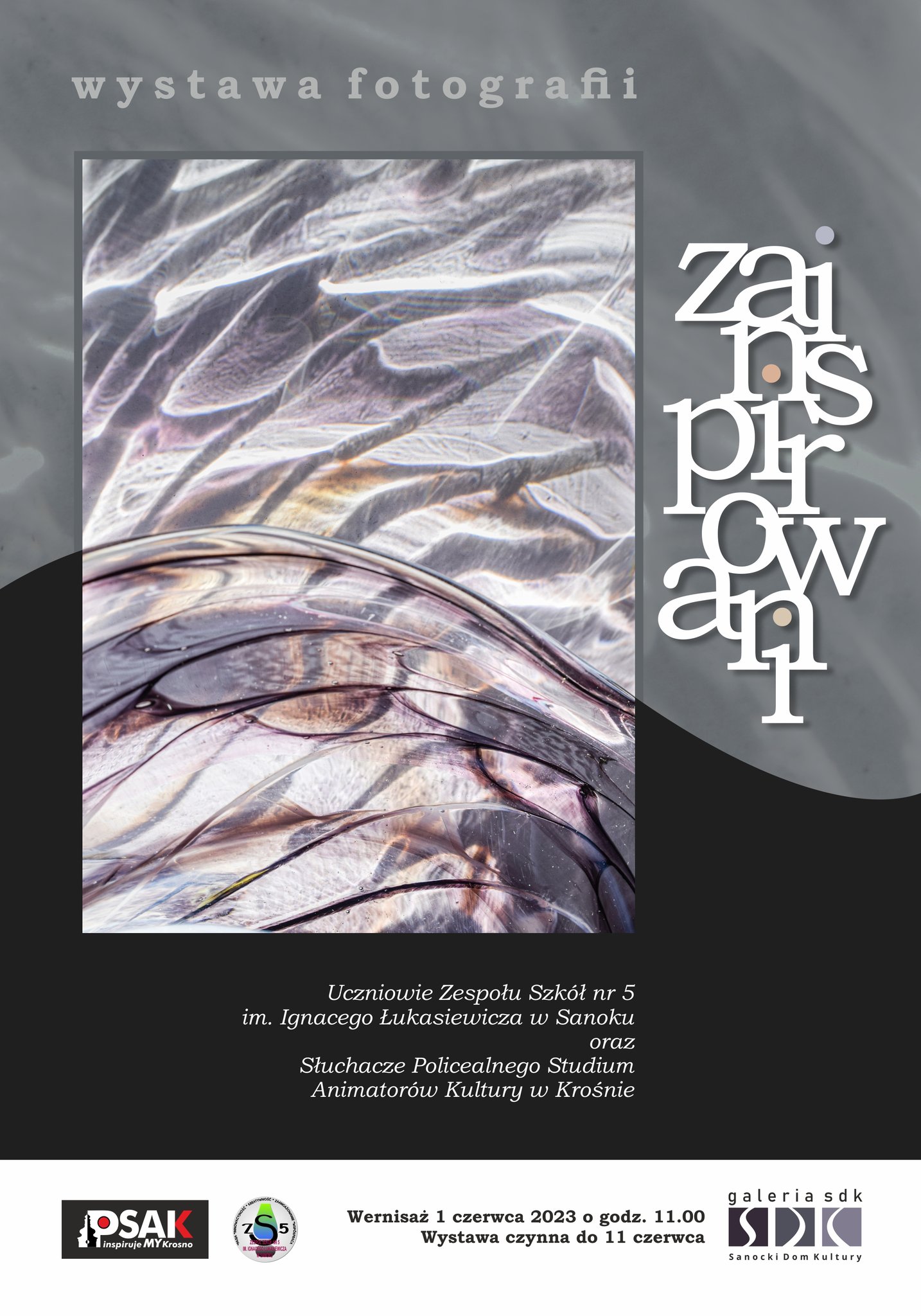 Dnia 1 czerwca 2023 r. o godz. 11.00 w Sanockim Domu Kultury odbędzie się wystawa pt. „Zainspirowani”. Autorami wystawy są słuchacze Policealnego Studium Animatorów Kultury w Krośnie oraz uczniowie Zespołu Szkół nr 5 im. Ignacego Łukasiewicza w Sanoku.