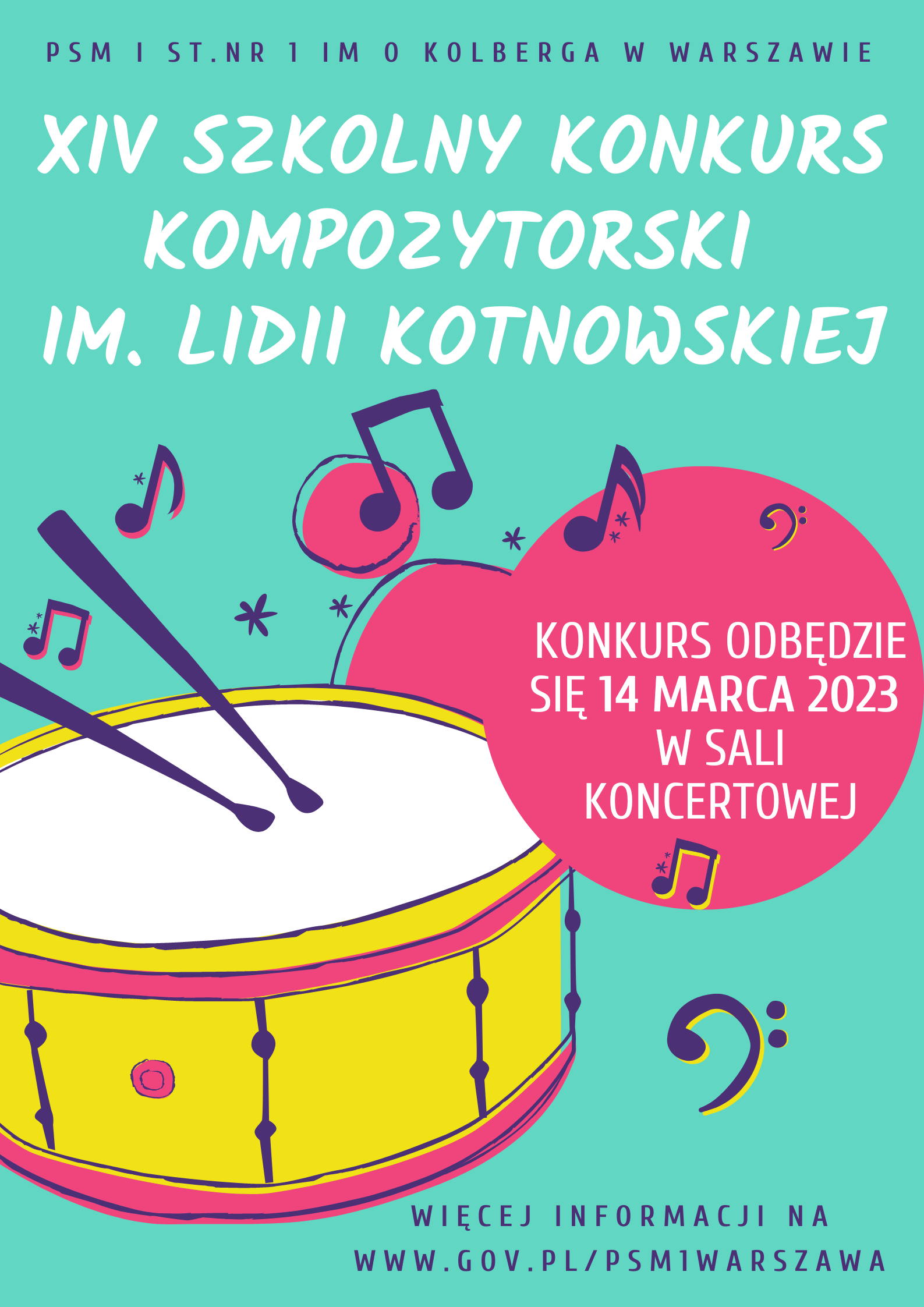 Serdecznie zapraszamy do wzięcia udziału w XIV Szkolnym Konkursie Kompozytorskim im. Lidii Kotnowskiej.