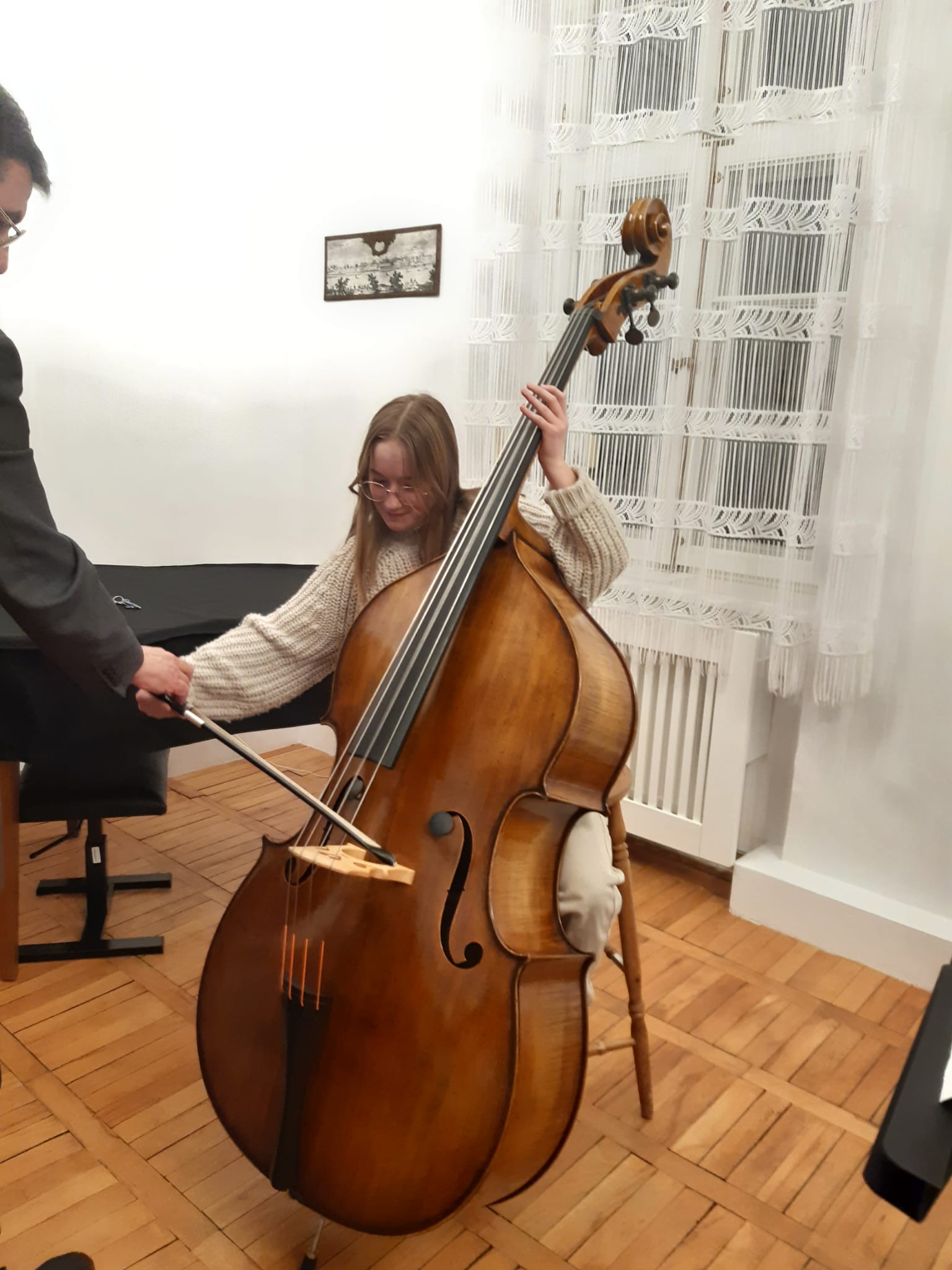 Po koncercie każdy chętny mógł spróbować zagrać na kontrabasie. Może komuś ten instrument się spodoba i zechce uczyć się na nim grać?