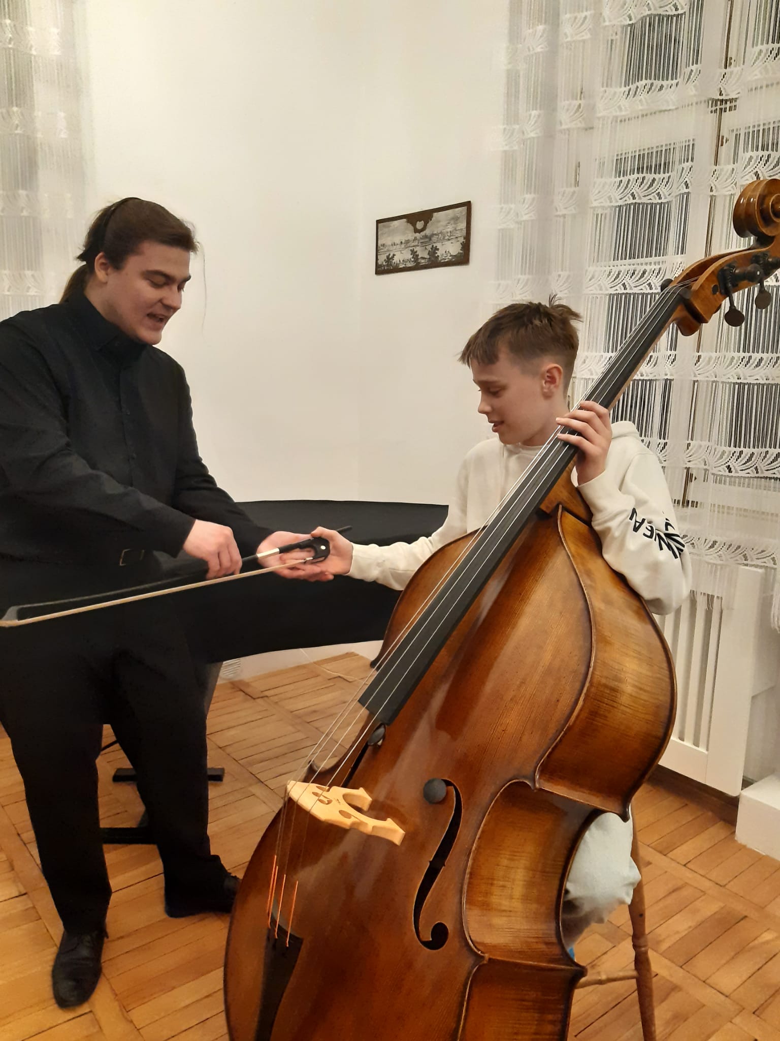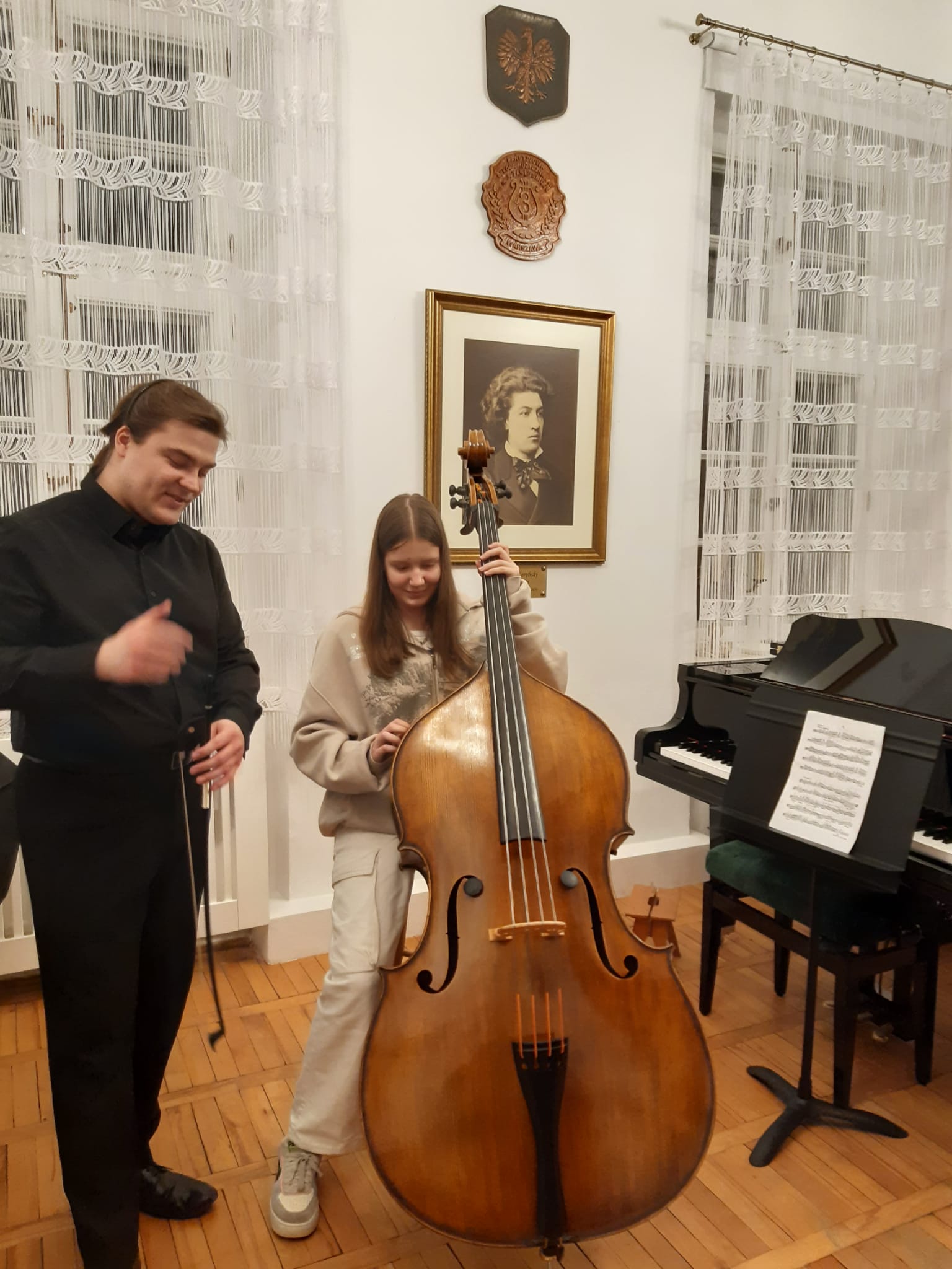 Dla szóstoklasistów powoli czas nauki w naszej szkole zbliża się ku końcowi. Niektórzy chcą kontynuować naukę w szkole II stopnia. Dalsza nauka na tym instrumencie, na którym dotychczas się uczyli, to jedna z możliwości. Inna opcja to zmiana instrumentu. Jednym z takich instrumentów, na którym można zacząć się uczyć od początku w szkole średniej, jest kontrabas. 3 marca 2025 gościliśmy p. Michała Lisieckiego, nauczyciela ze szkoły na Bednarskiej (ZPSM im. F. Chopina), który wraz ze swoim uczniem przyjechał, by zaprezentować naszym uczniom ten piękny instrument i zachęcić do wybrania go w szkole II stopnia.