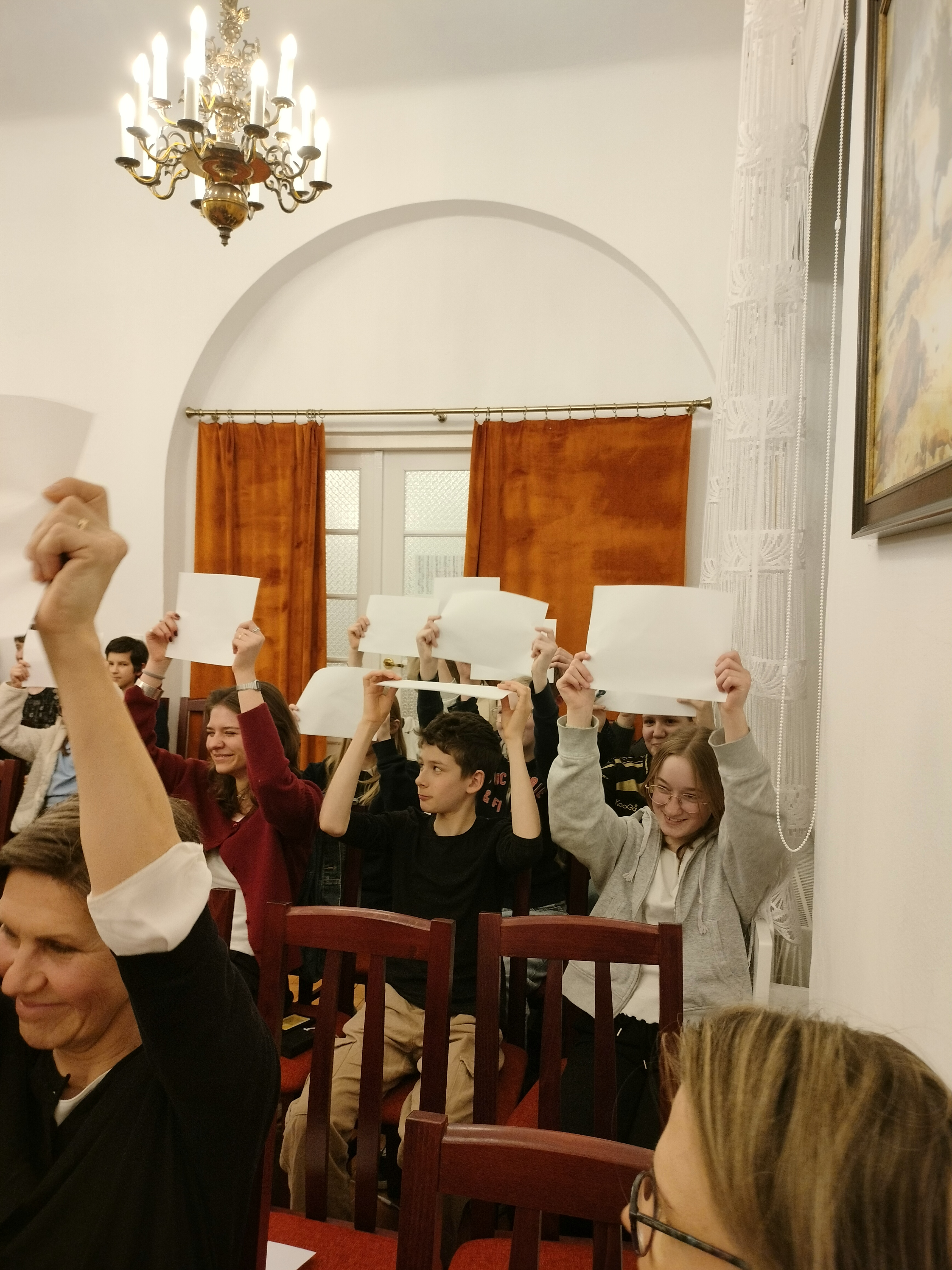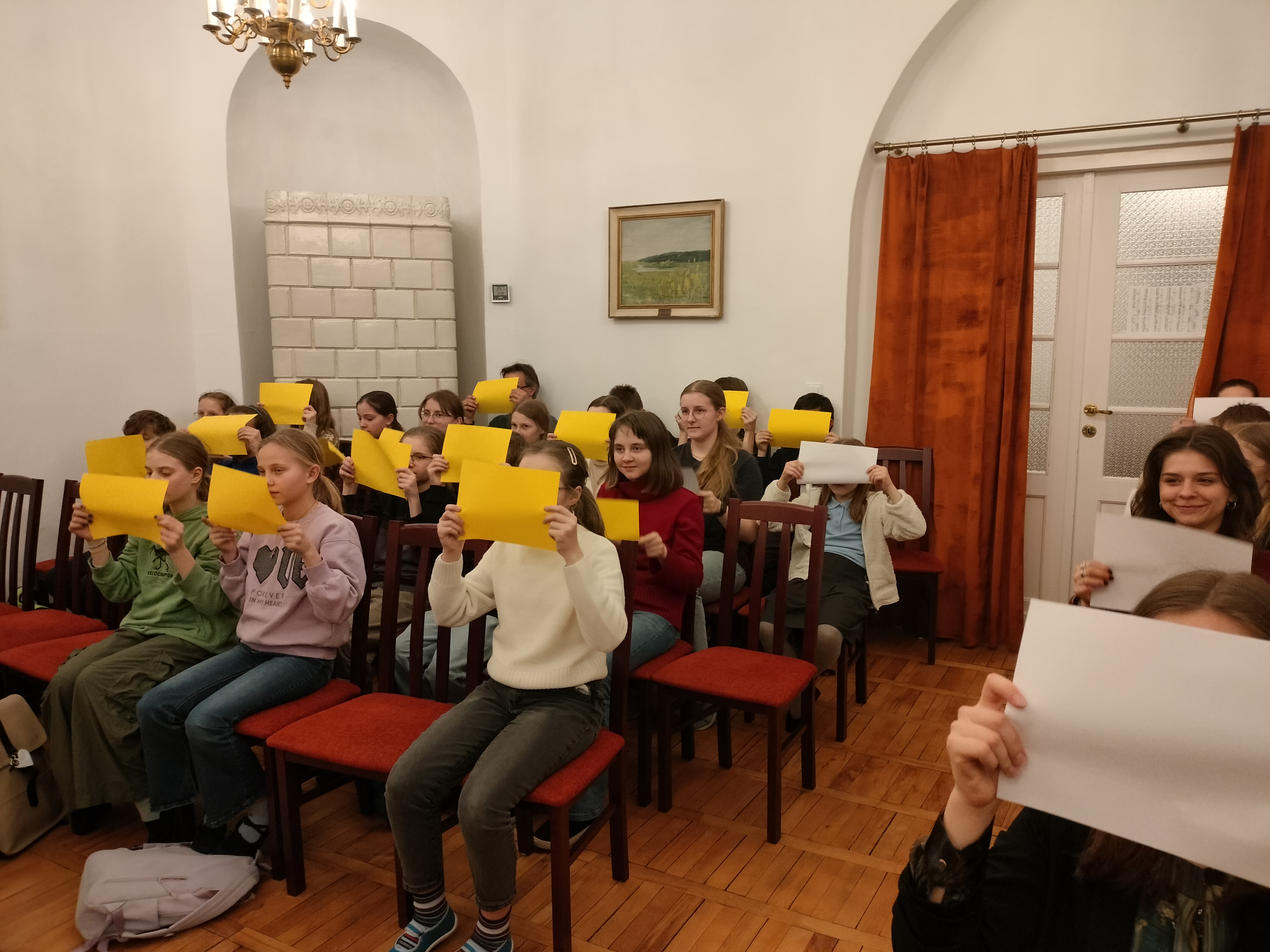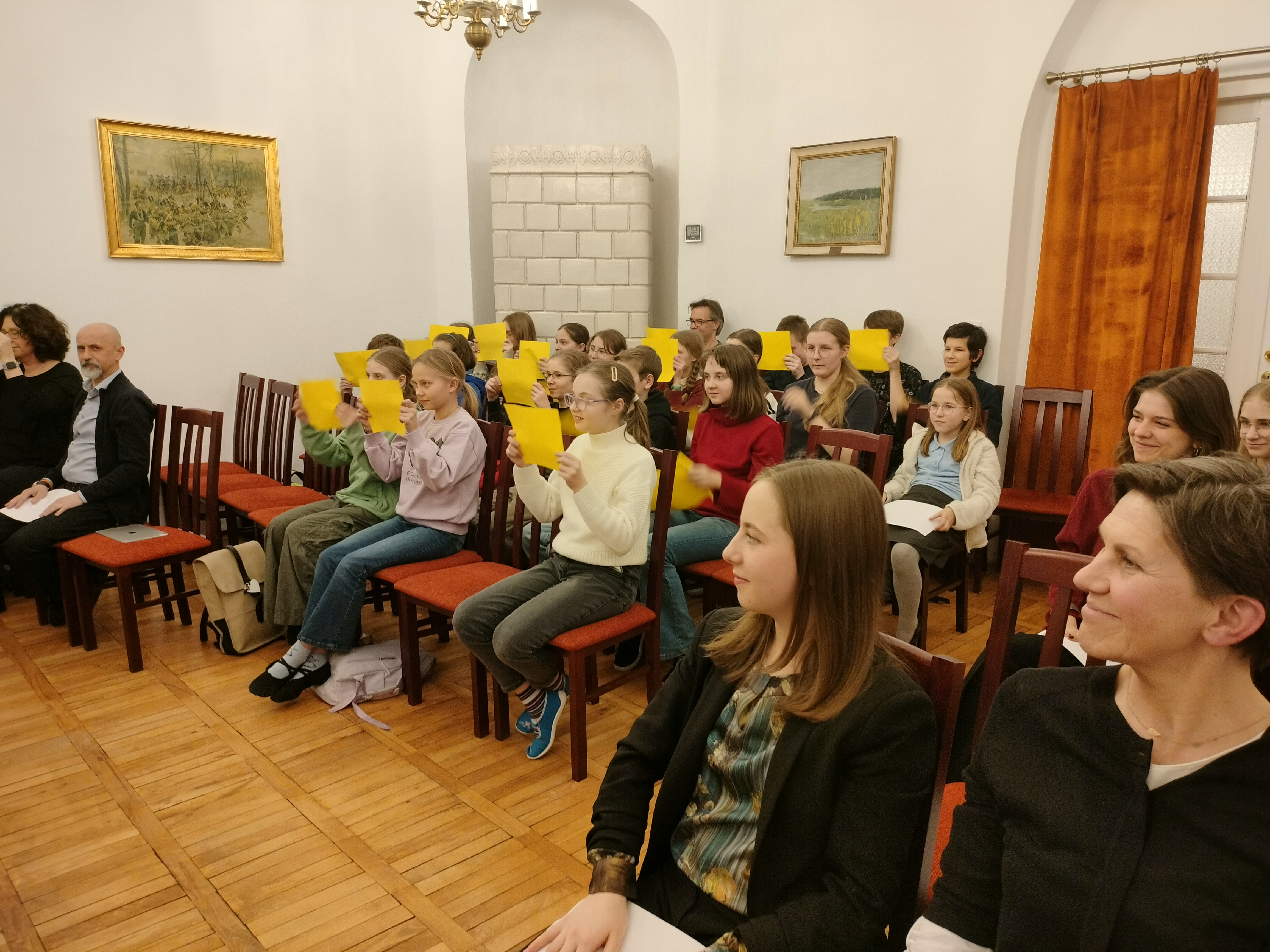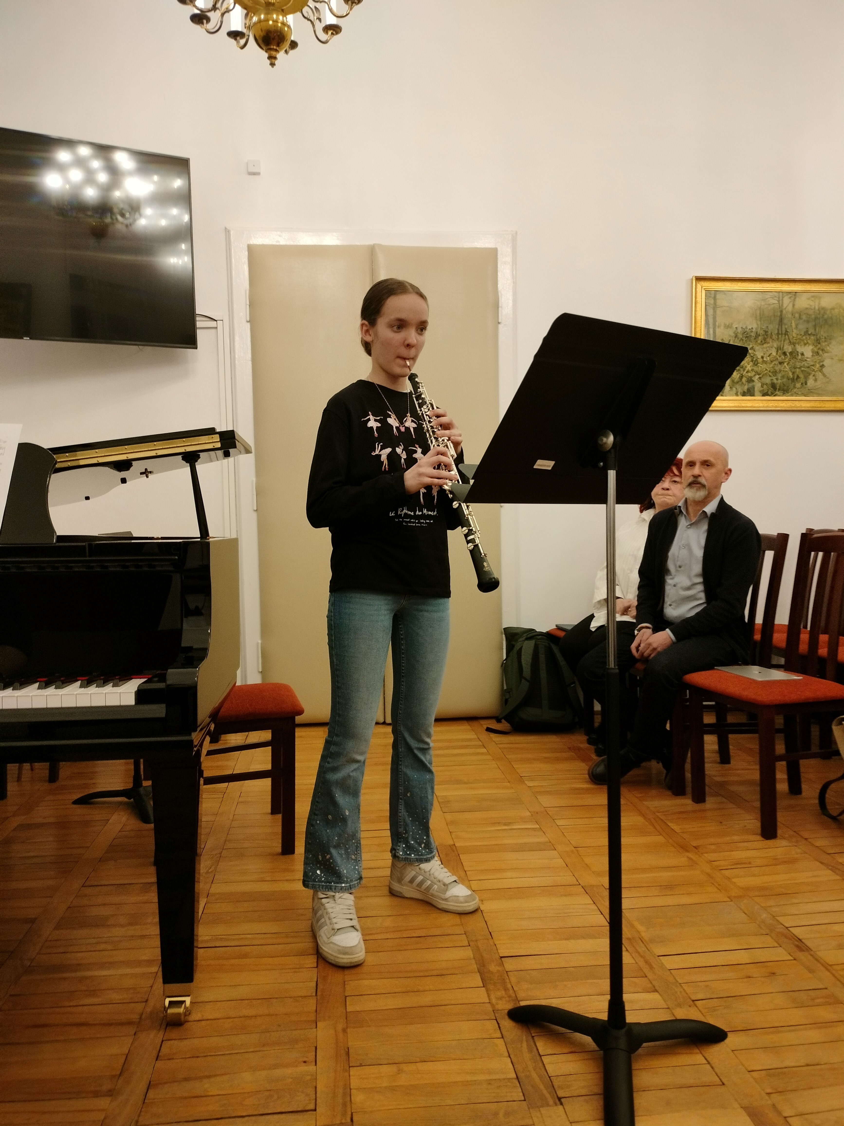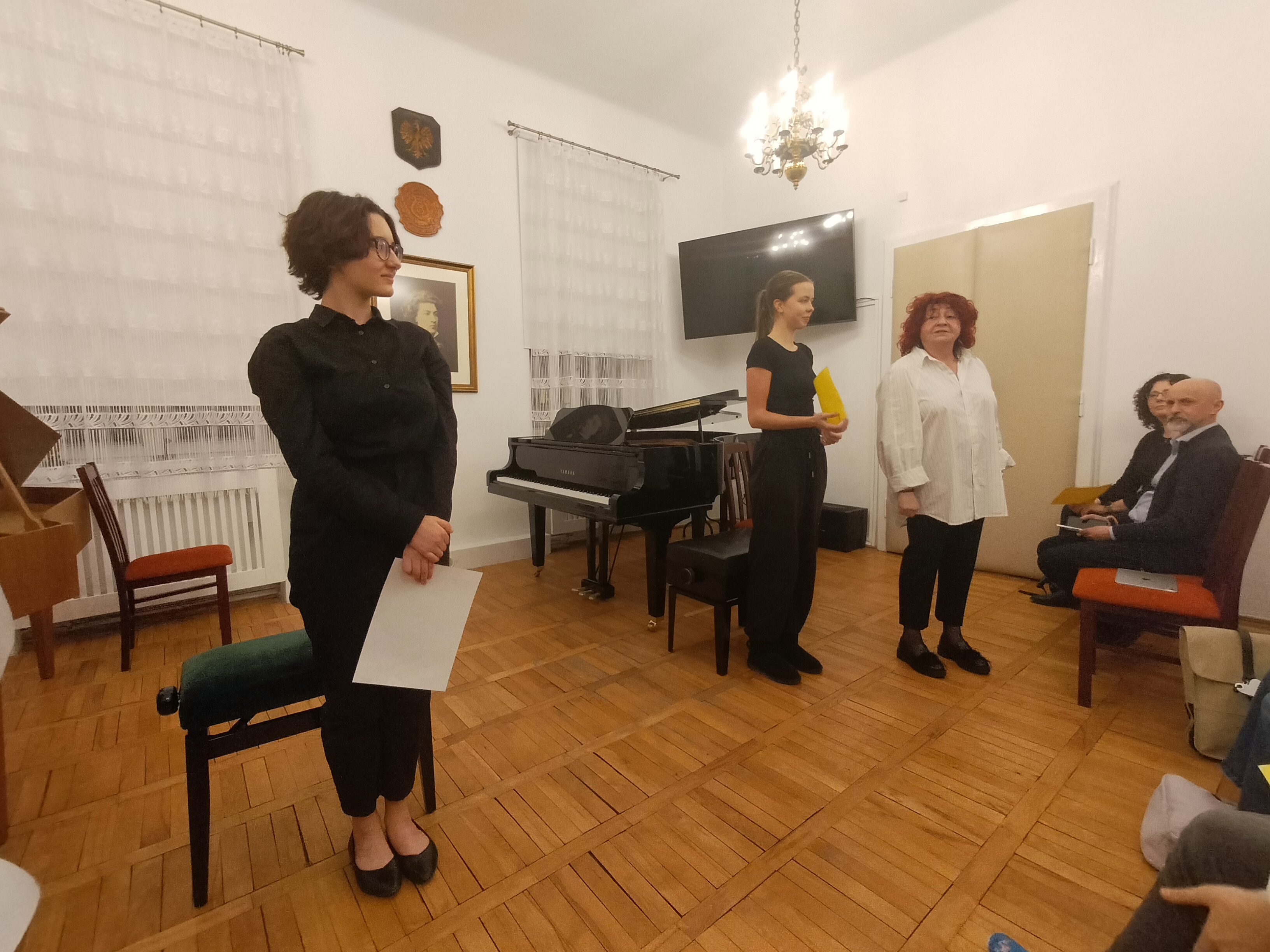 20 marca 2025 r. odbył się w naszej szkole znakomity koncert. Wystąpili uczniowie Zespołu Państwowych Szkół Muzycznych im. F. Chopina w Warszawie (Bednarska). Przyszli do nas, by promować swoją szkołę, pokazać, że można zdecydować się na naukę gry na innym instrument, niż dotychczas, i zachęcić naszych uczniów do zdawania na Bednarską. Wystąpiły zespoły: zespół muzyki dawnej, duet altówkowy, duet gitarowo-akordeonowy oraz soliści: fortepian, obój, śpiew. Ważną częścią koncertu był pokaz uczennic Sekcji Rytmiki - pokazały improwizację i kompozycję fortepianową. Wspaniały pokaz wspólnej improwizacji dała uczennica Bednarskiej i nasz uczeń - Jonasz Koprukowiak z VI klasy. Uczennice średniej szkoły w bardzo wesoły sposób zaprosiły też do muzycznej zabawy wszystkich słuchaczy - co widać na zdjęciach. Wśród wykonawców byli nasi absolwenci: Karol Świerczyński - klawesyn (w naszej szkole uczył się gry na fortepianie), Milena Majewska - altówka barokowa (u nas uczyła się gry na skrzypcach), Teresa Wawryło - obój (u nas fortepian), Szymon Bury - gitara. Koncert poprowadziła p. Katarzyna Tomaszkiewicz.