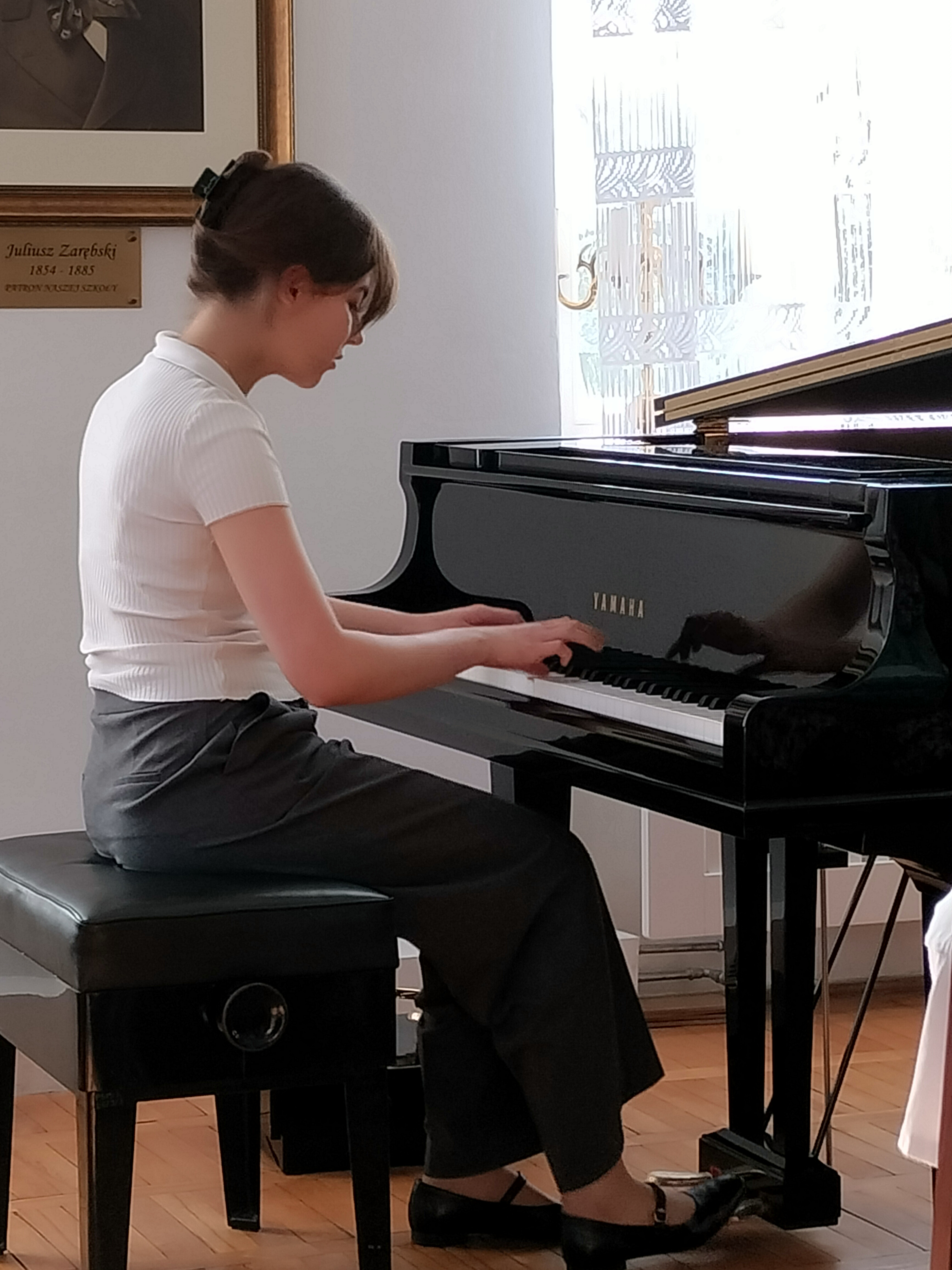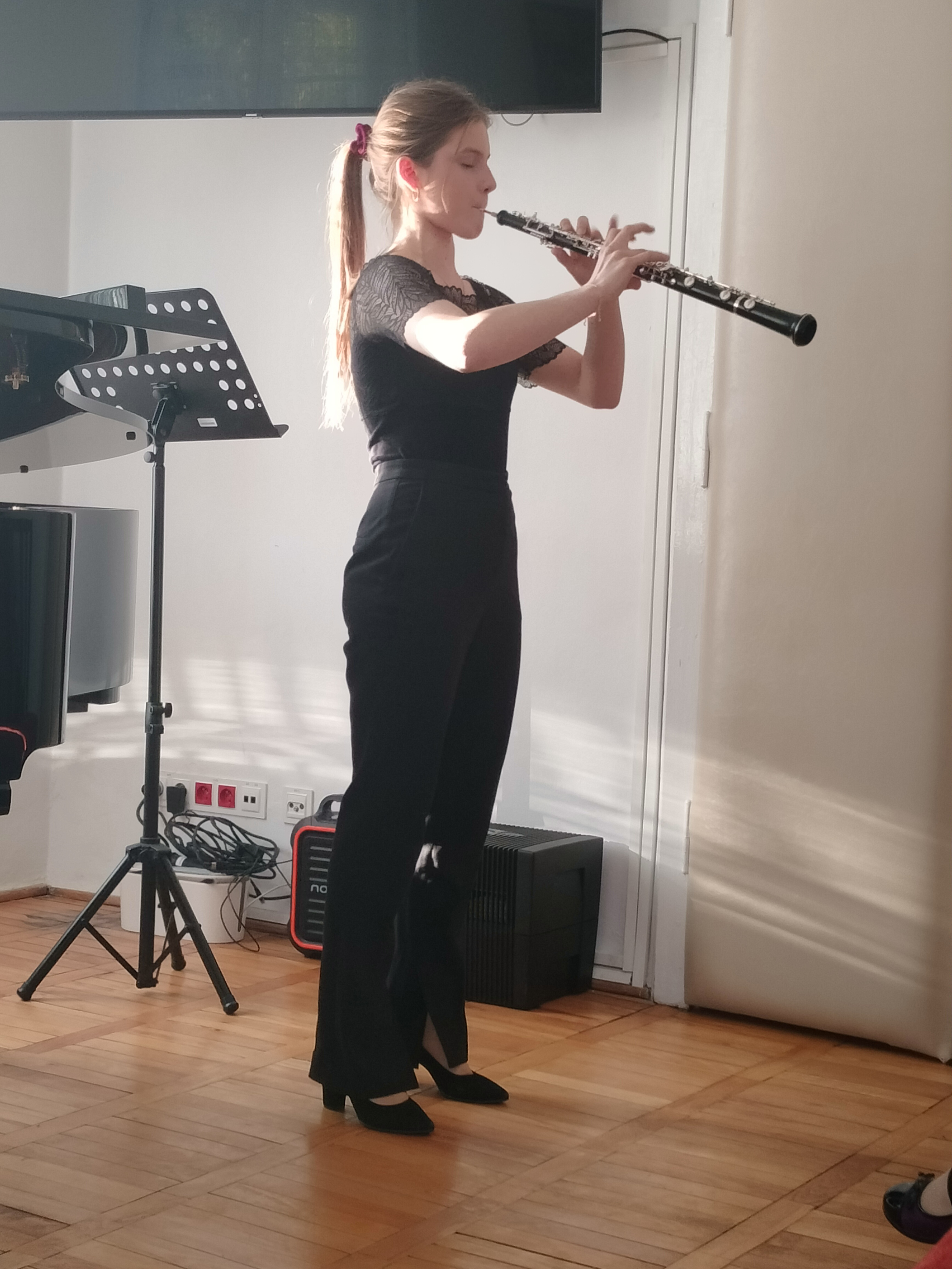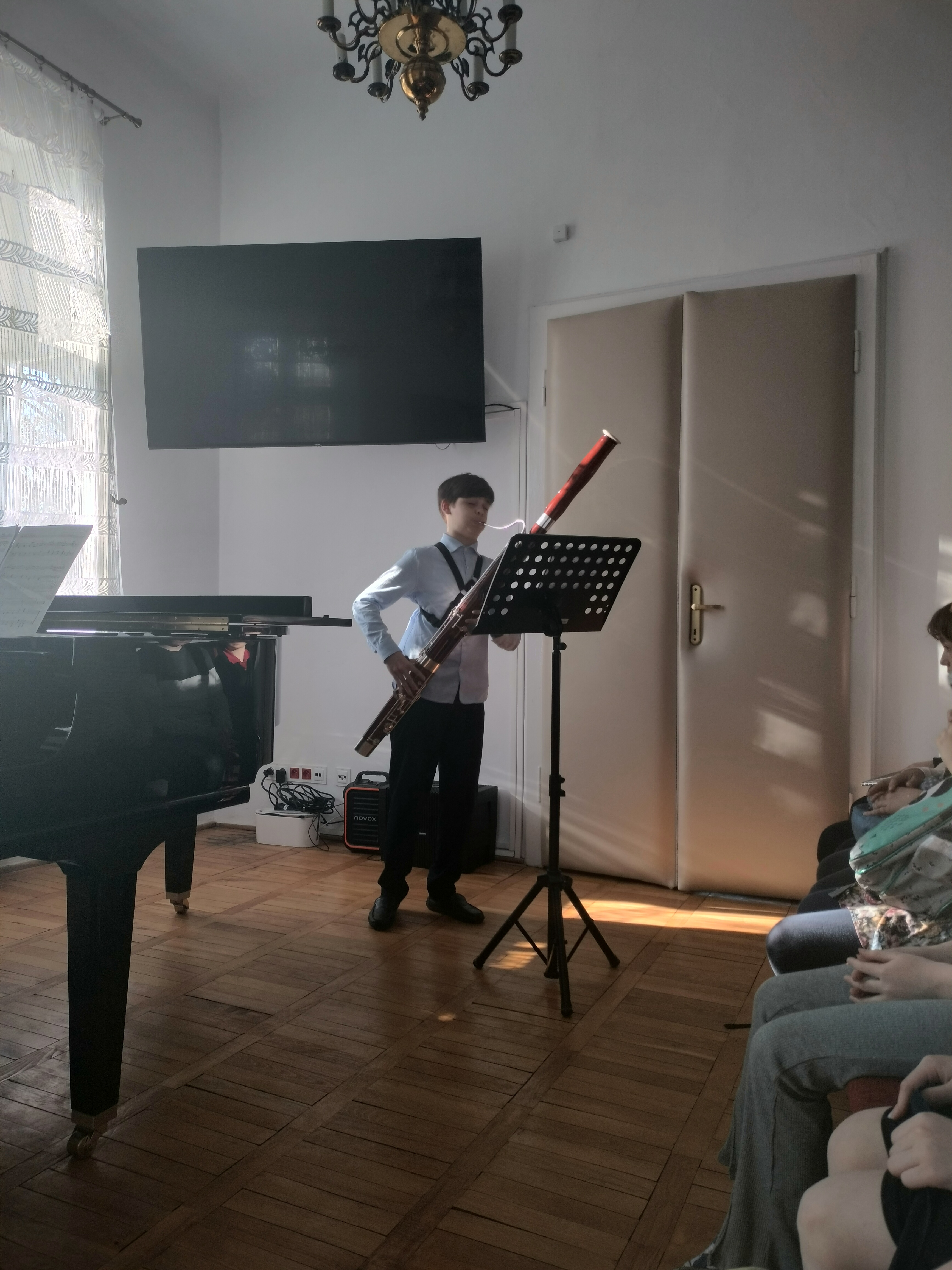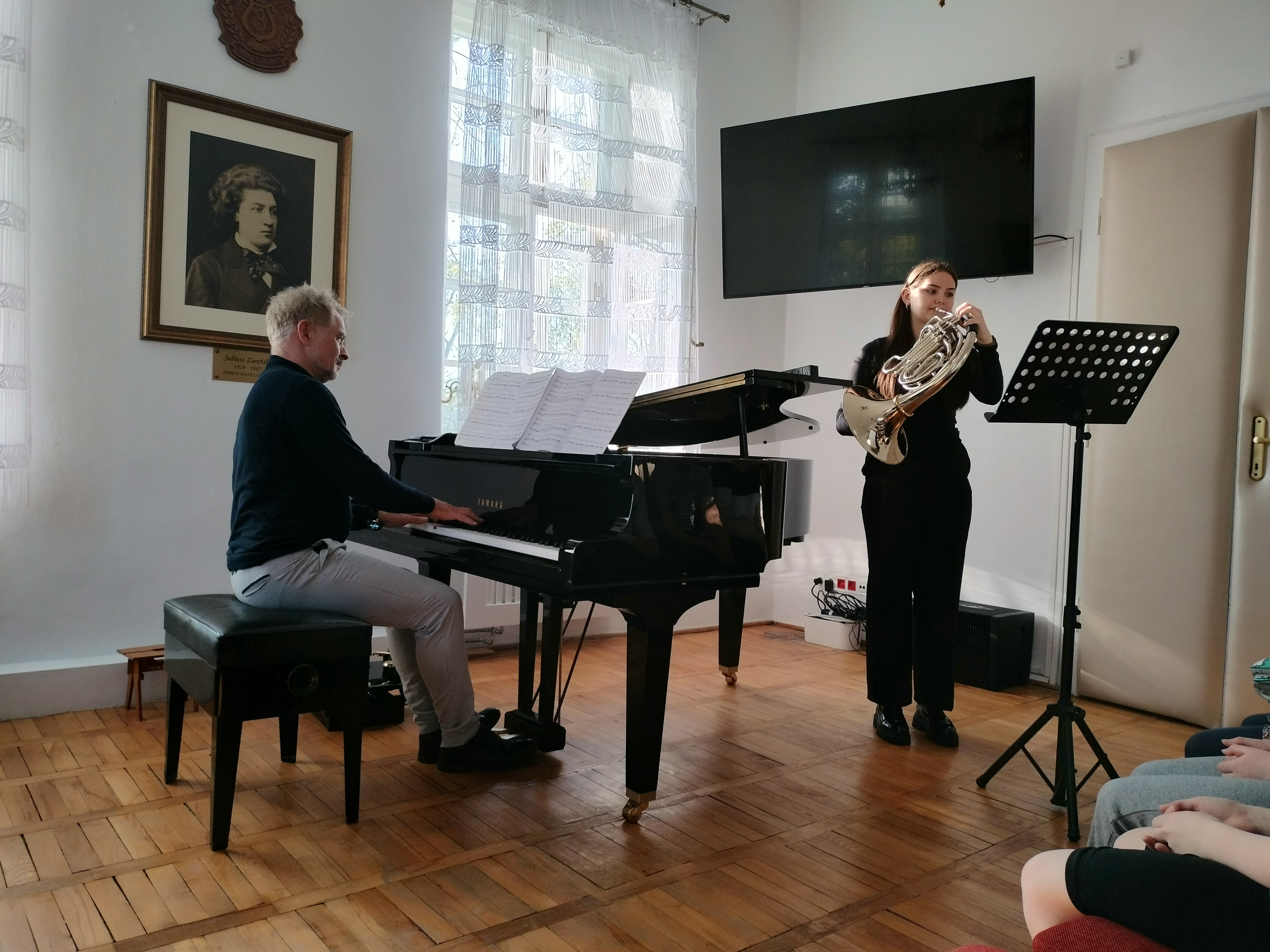 16 kwietnia 2025 r. odbył się w naszej szkole kolejny świetny koncert. Tym razem wystąpili uczniowie Zespołu Państwowych Szkół Muzycznych nr 1 z ul. Rakowieckiej. Podobnie, jak wcześniej ich koledzy z Bednarskiej, przyszli do nas, by promować swoją szkołę - pokazać, że można zdecydować się na naukę gry na innym instrumencie, niż dotychczas, i zachęcić naszych uczniów do zdawania do II stopnia. Wystąpili soliści grający na instrumentach dętych, których u nas nie ma, a na których można zacząć się uczyć grać w szkole średniej: fagot, obój, puzon, waltornia. Wśród wykonawców nie mogło zabraknąć naszych absolwentów - pianistów. Dla licznie zgromadzonej publiczności zagrali Jonatan Nazaruk, Maja Podleśna i Rita Jarszak. Koncert poprowadziła p. Beata Walęcka-Jackowska. O szkole opowiedziały występujące uczennice oraz p. Małgorzata Góra, kierownik sekcji i nauczyciel fortepianu na Rakowieckiej.