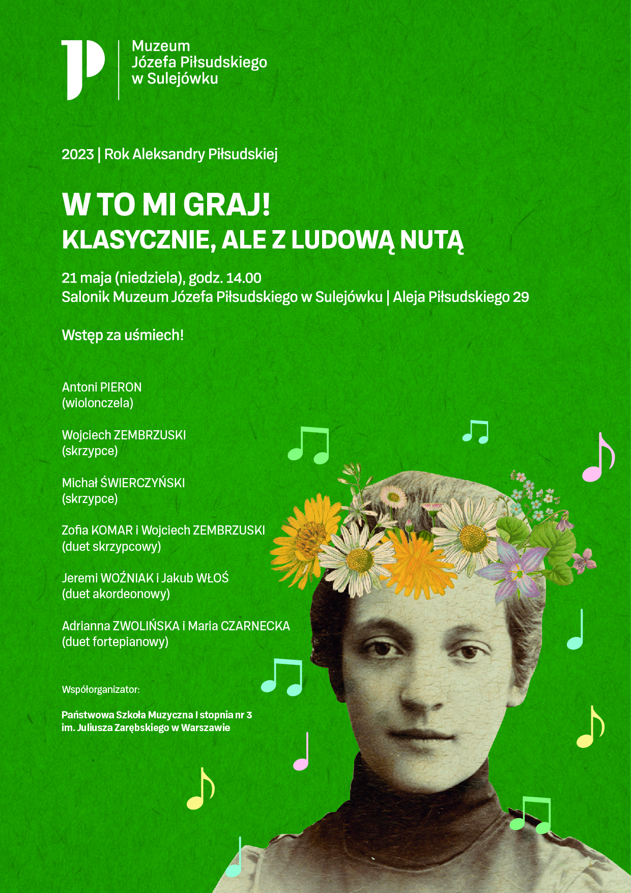 Serdecznie zapraszamy na koncert w Muzeum Józefa Piłsudskiego w Sulejówku. Koncert odbędzie się 21 maja 2023 roku (niedziela), o godz. 14.00. Wstęp wolny