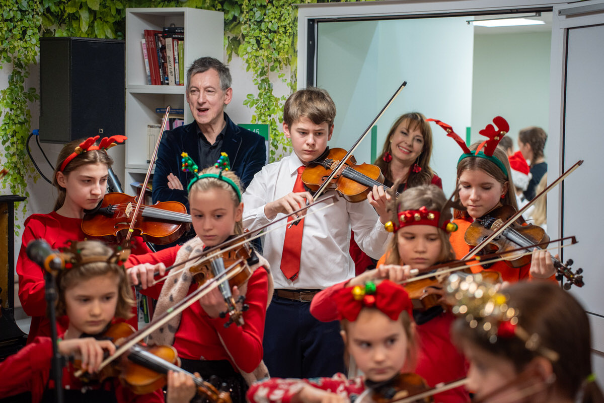 19 grudnia 2024 r. w Klinice Onkologii Uniwersyteckiego Centrum Klinicznego Warszawskiego Uniwersytetu Medycznego, na Koncercie Kolęd wystąpili uczniowie naszej szkoły wraz z Panią Justyną Sieńczyłło, Panem Maciejem Miecznikowskim oraz Panią Anną Szot, która przygotowała uczniów do koncertu oraz im akompaniowała. Swój występ podczas wydarzenia miała również Pani Julia Subramanian, studentka II roku medycyny WUM. Kierownik Kliniki - Pan prof. dr hab. n. med. Rafał Stec zaprosił na ten świąteczny koncert pacjentów i ich rodziny.