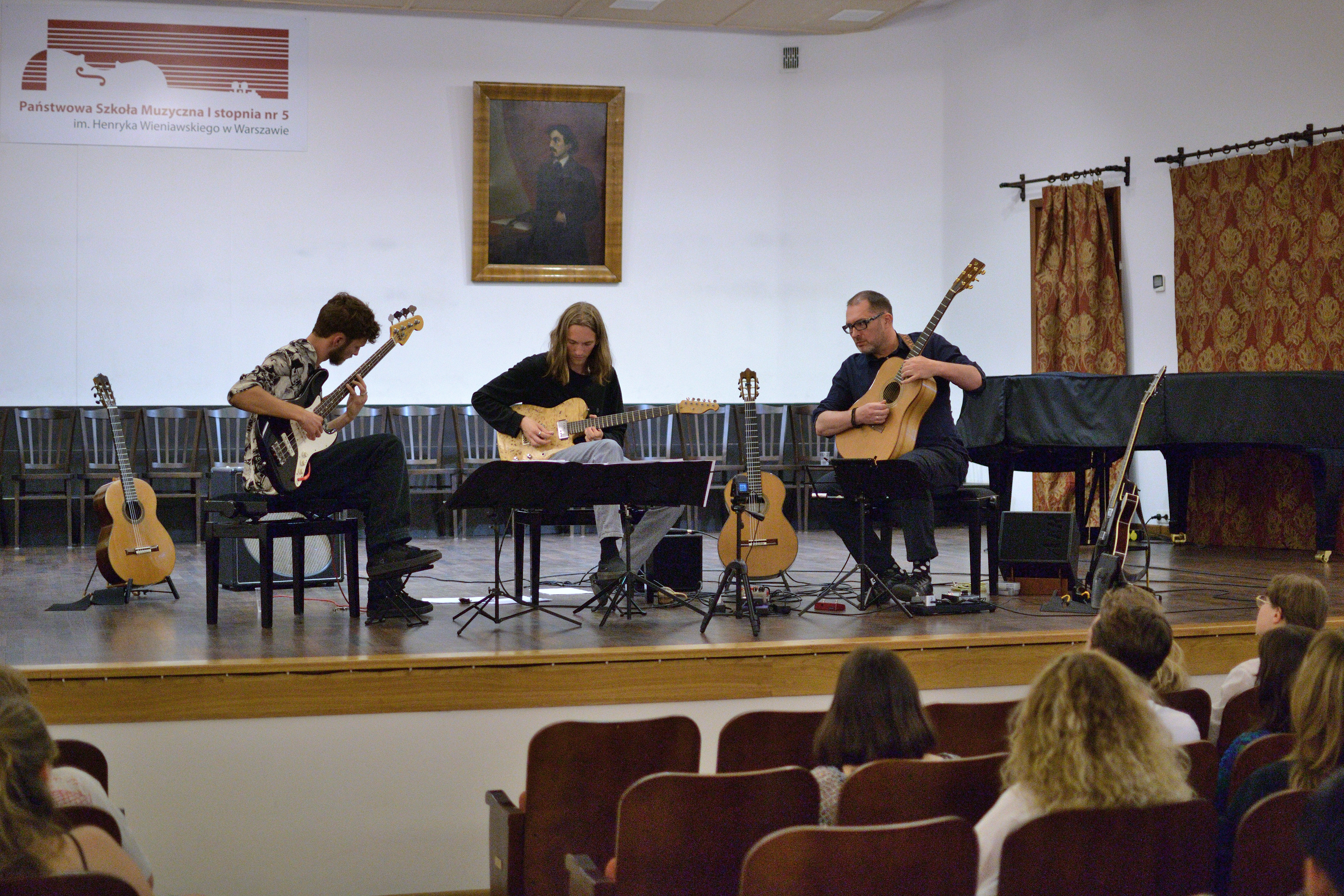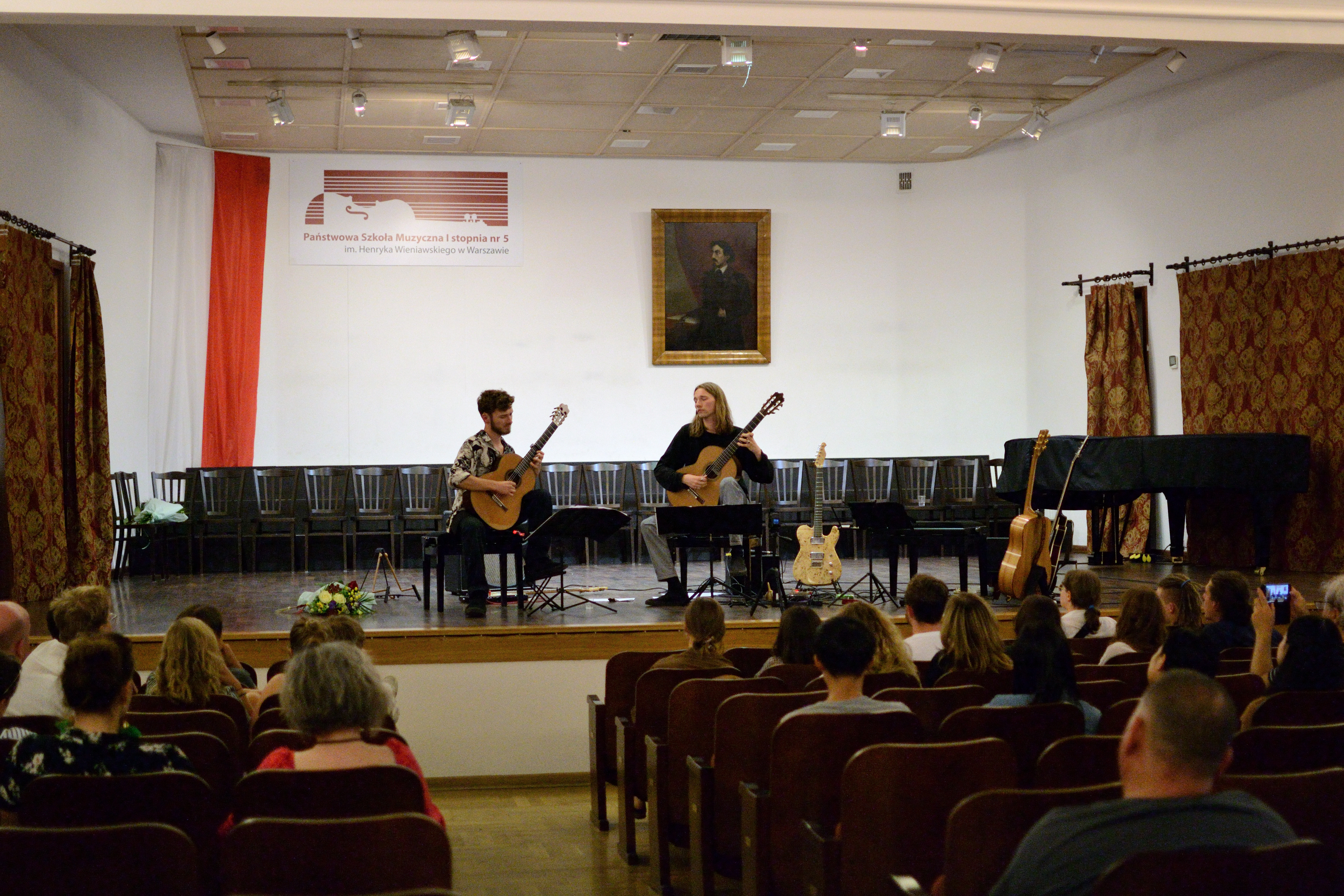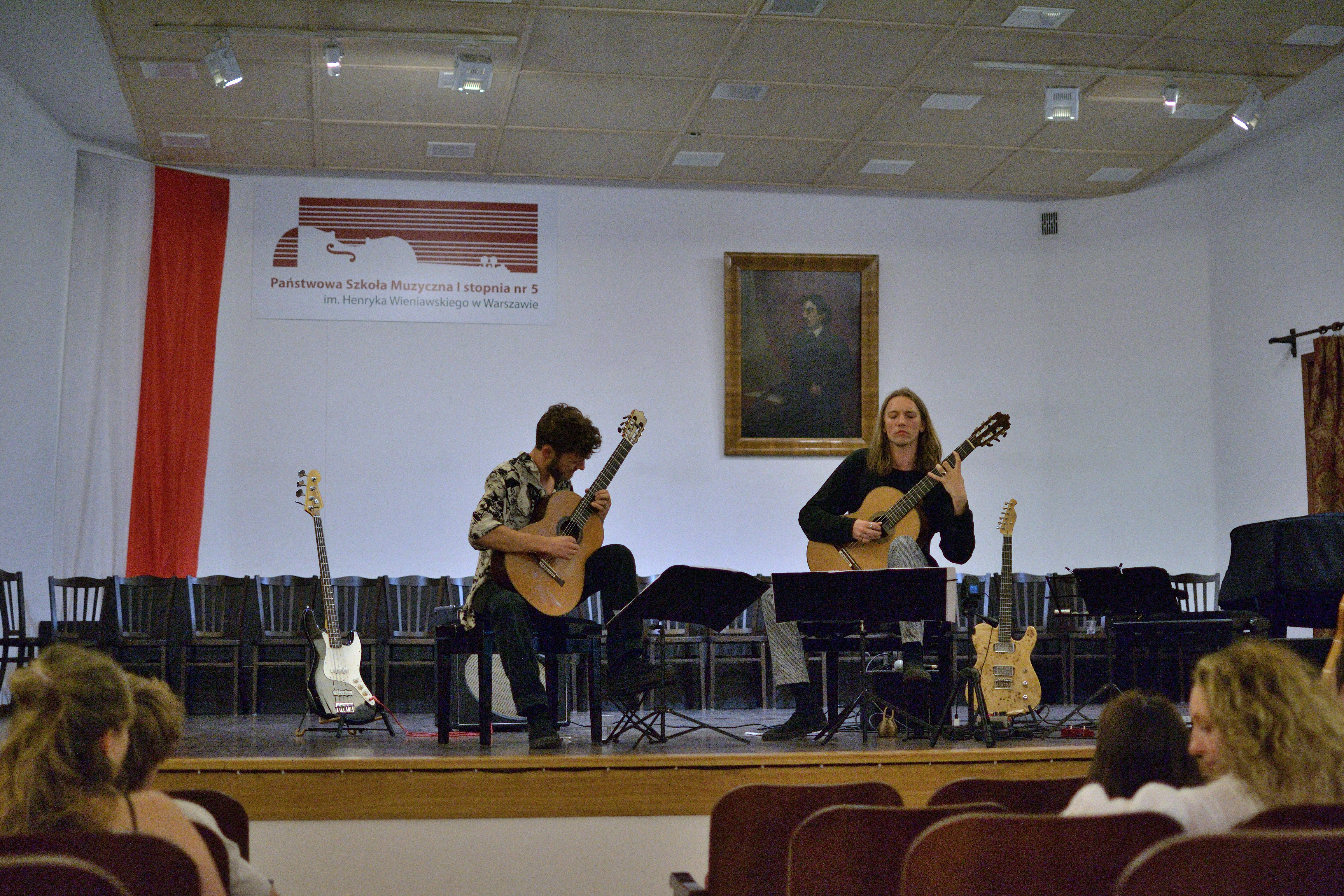 26 czerwca 2023 roku, w Sali Koncertowej Państwowej Szkoły Muzycznej I stopnia nr 5 im. Henryka Wieniawskiego w Warszawie miało miejsce wyjątkowe wydarzenie artystyczne. Duo gitarowe fonoduo, w skład którego wchodzi Juliusz Warszawski (absolwent naszej szkoły) oraz Odée Mertzweiller wystąpiło razem z nauczycielem klasy gitary - Marcinem Olakiem. Muzycy zaprezentowali niezwykle szeroki wachlarz muzycznych gatunków i stylistyk: począwszy od baroku, przez muzykę improwizowaną aż po autorskie kompozycje.