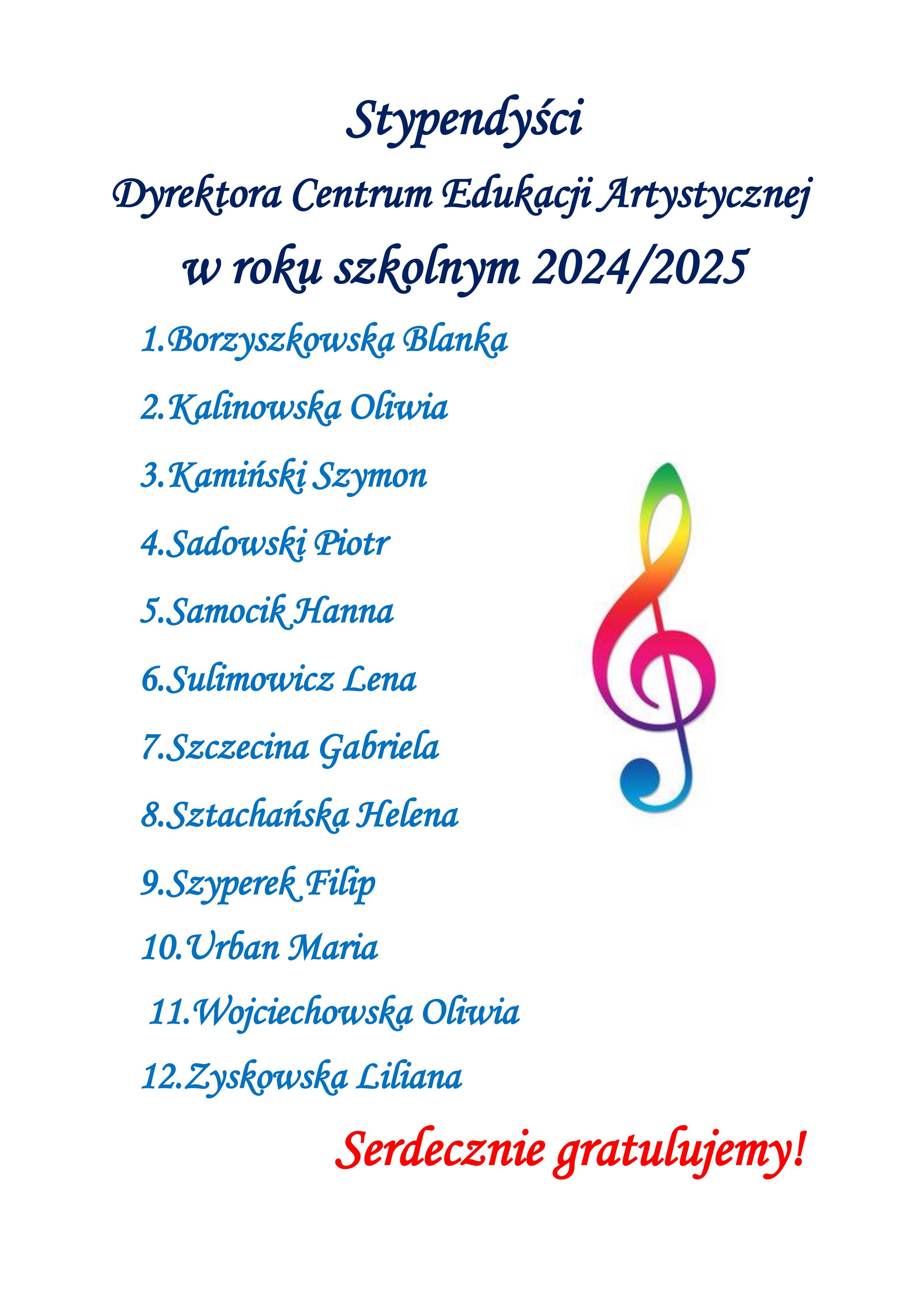Stypendyści Dyrektora CEA 2024/2025 06.11.2024 Z dumą prezentujemy listę osób wyróżnionych przez Dyrektora CEA. Zdjęcia (1) Pokaż zdjęcie 1 z galerii.