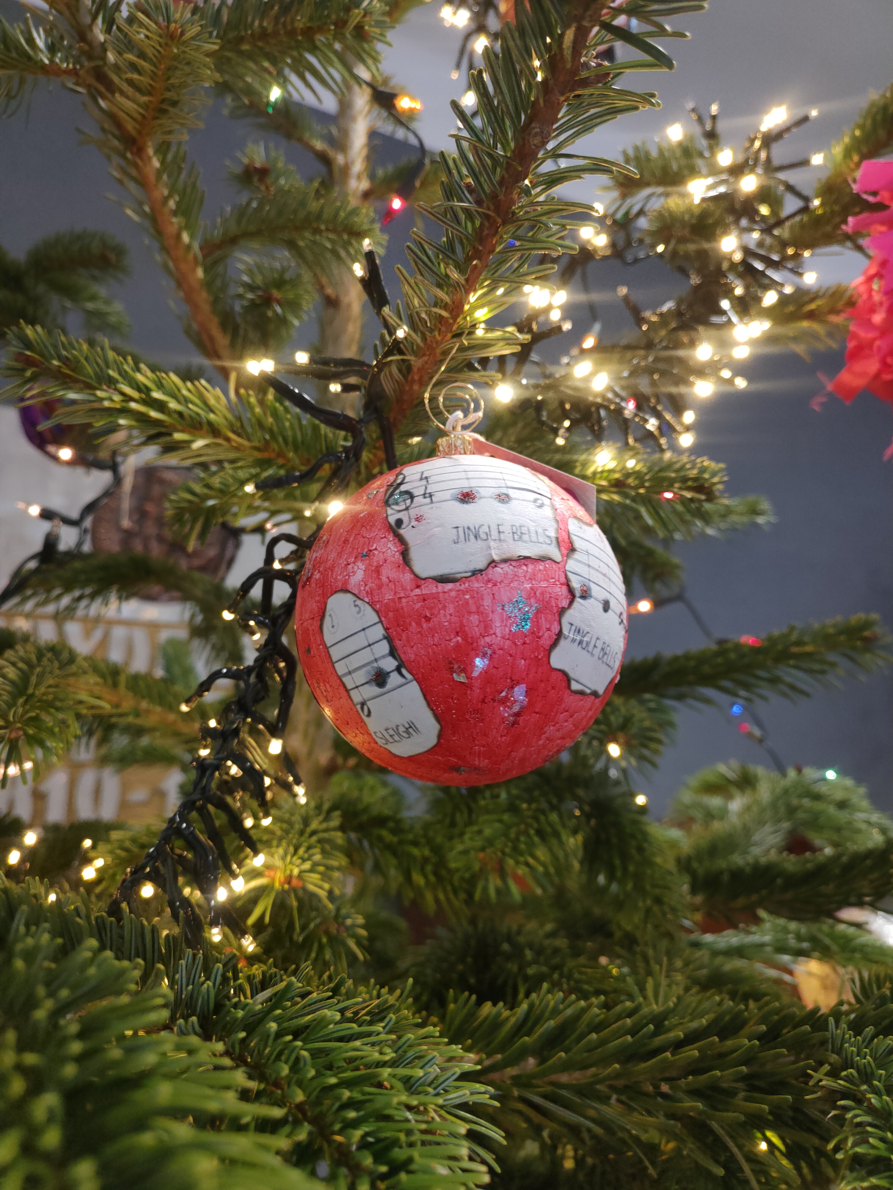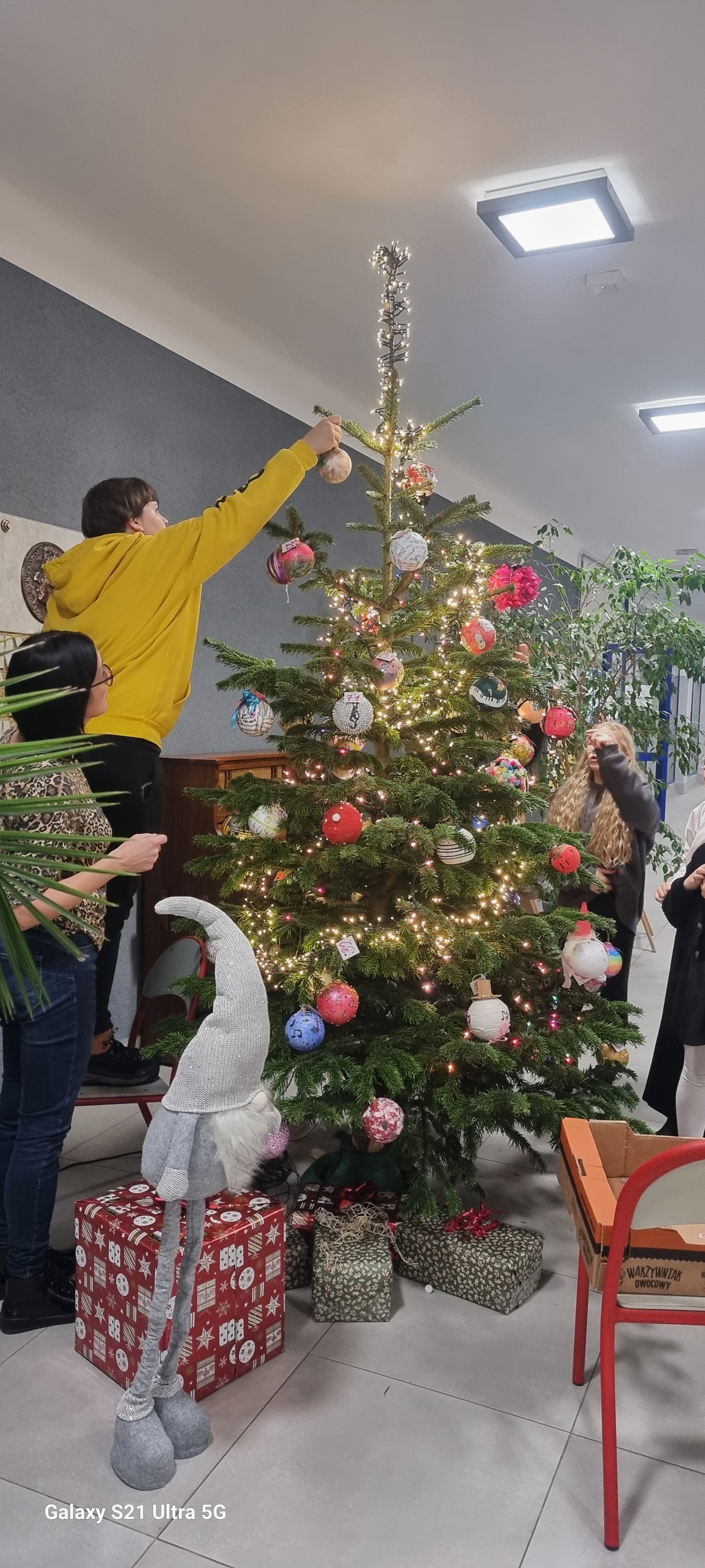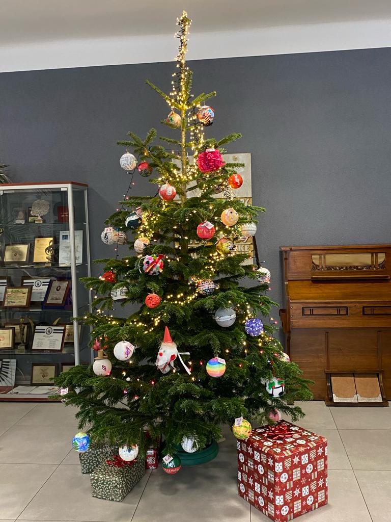 Wczoraj dzieci przyozdabiały żywą choinkę, która stanęła w naszej szkole. Bombki wiszące na drzewku, zostały przygotowane przez uczniów naszej szkoły w ramach konkursu na najładniejszą bombkę.