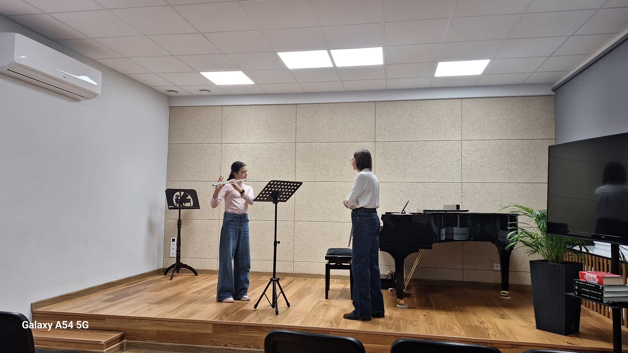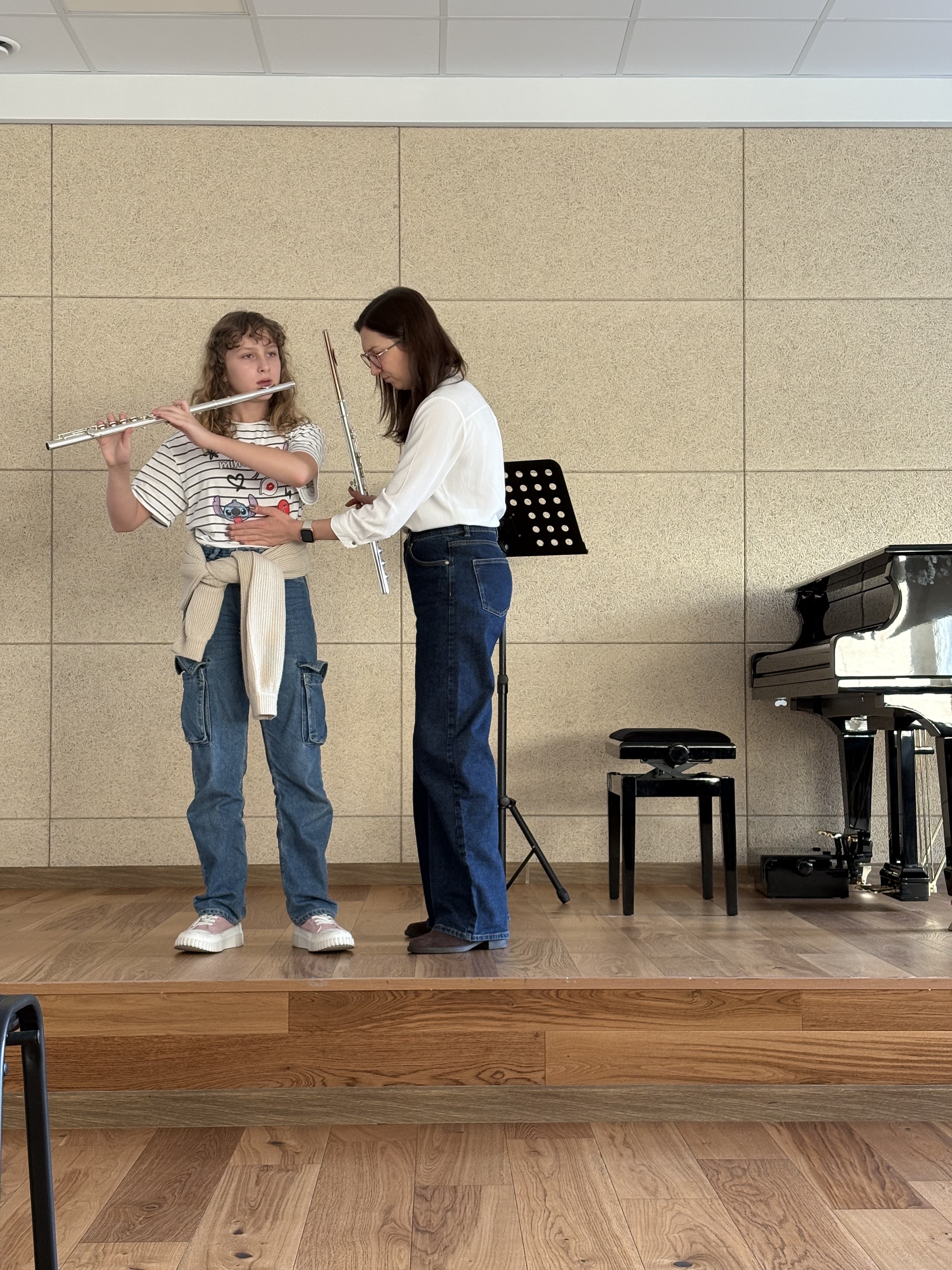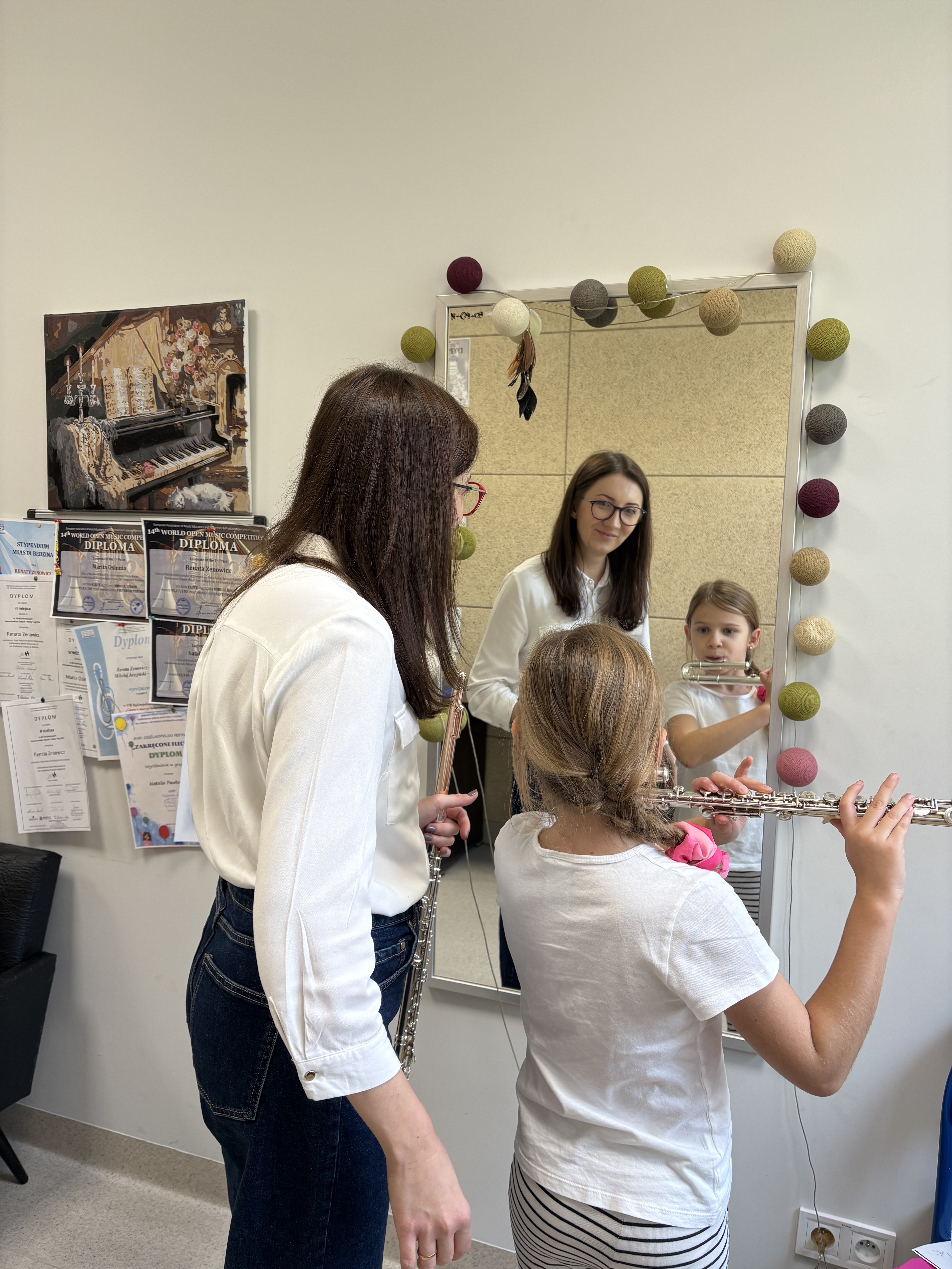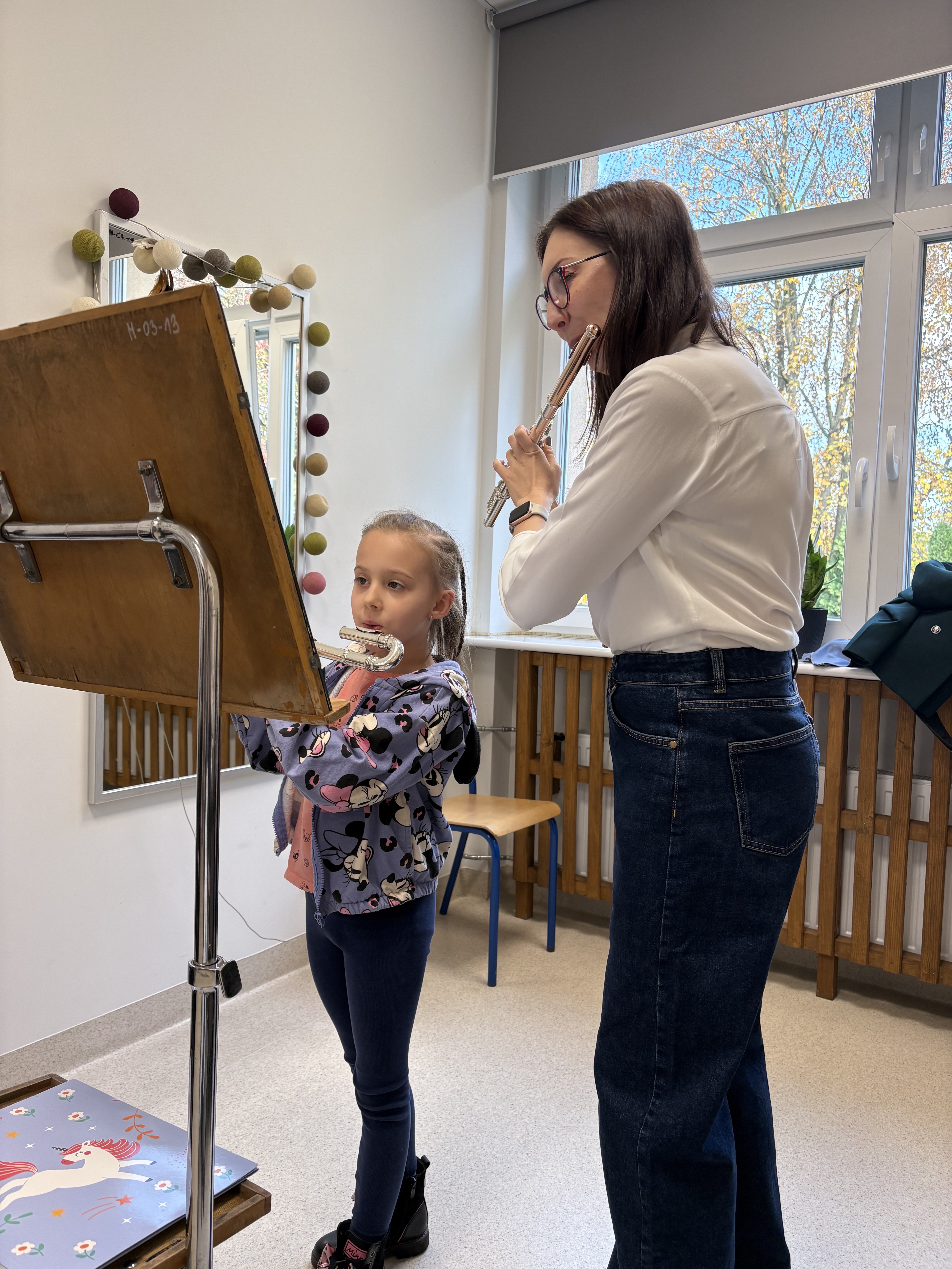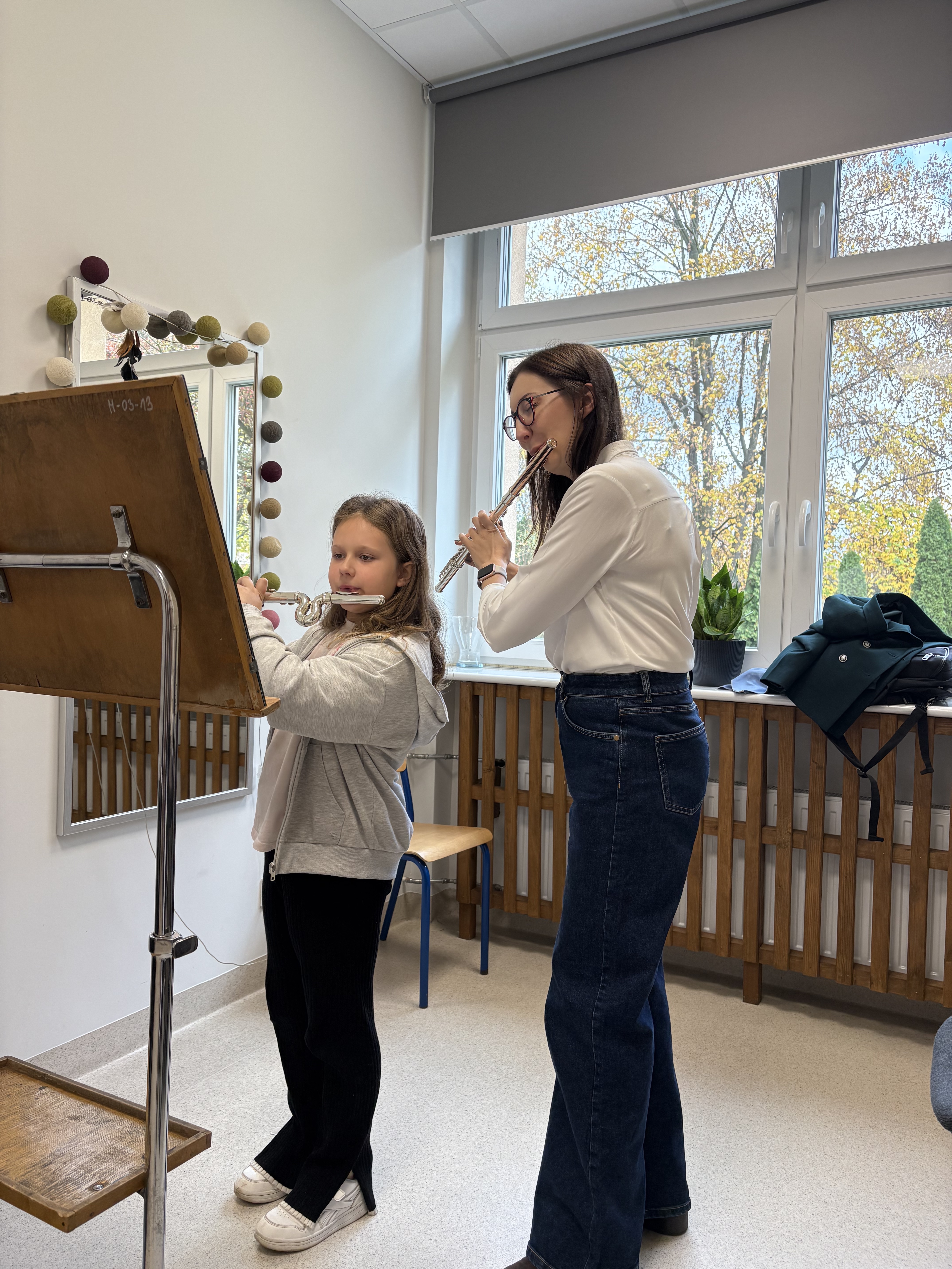 W dniu 29.10.2025 odbyły się warsztaty fletowe, w klasach fletu Marioli Dobrzańskiej i Agnieszki Gajgier-Otręby prowadzone przez panią dr Katarzynę Pudełko-Cofałka. Uczniowie z zainteresowaniem słuchali i realizowali uwagi oraz propozycje nowych ćwiczeń, które pokazywała pani dr Katarzyna Pudełko-Cofalka. Zarówno panie nauczycielki jak i uczniowie na pewno wykorzystają wiedzę z warsztatów do dalszej pracy.