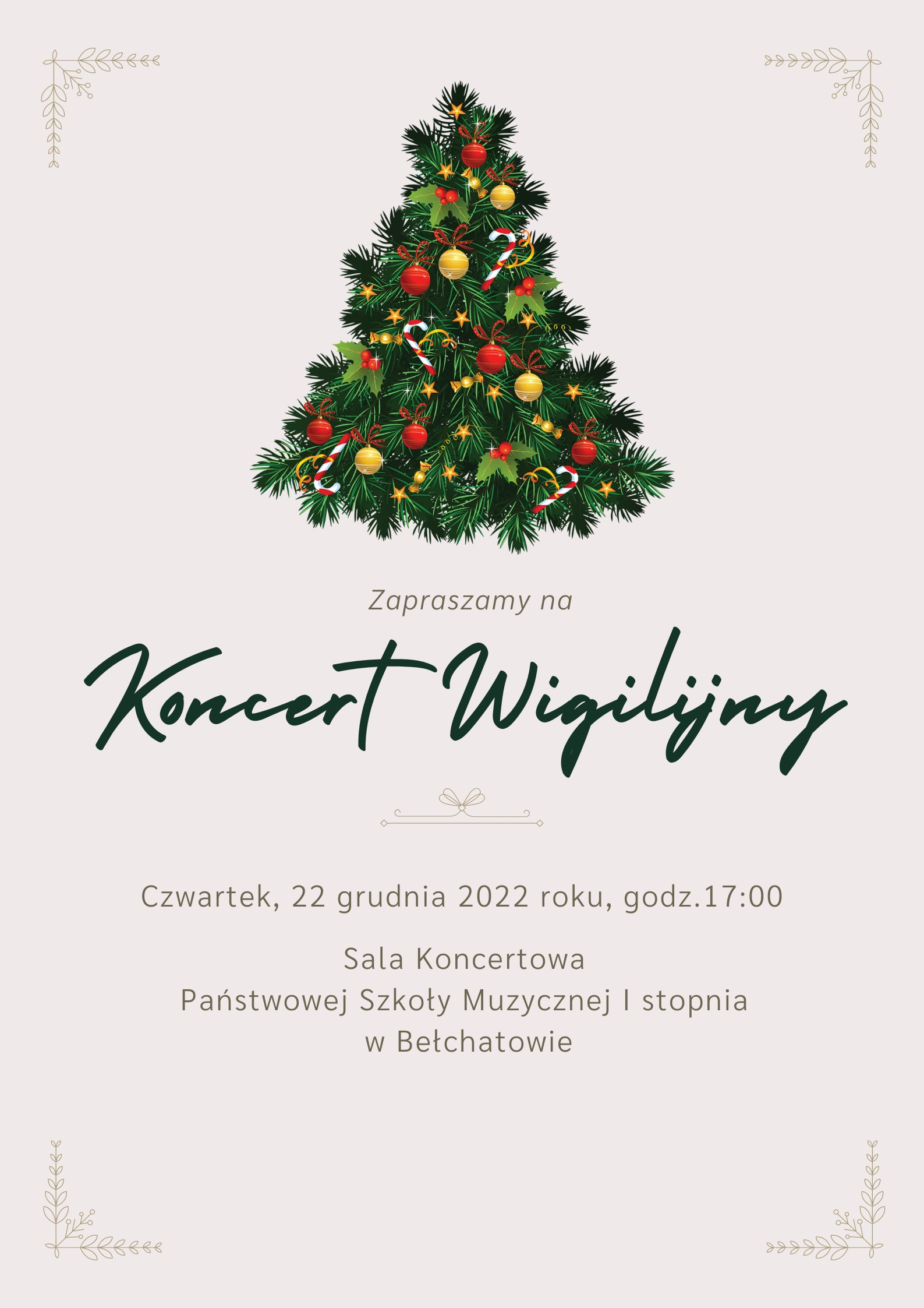 Serdecznie zapraszamy uczniów i rodziców naszej szkoły na Koncert Wigilijny.