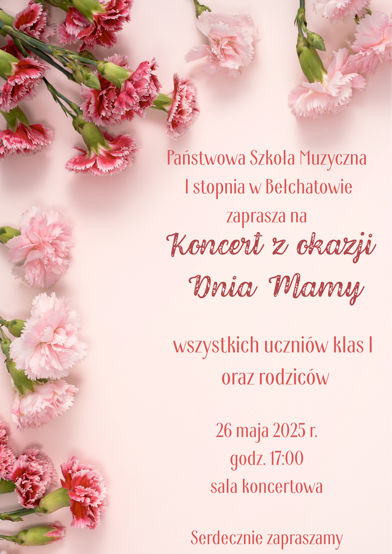 Serdecznie zapraszamy uczniów klas I oraz ich rodziców na koncert z okazji Dnia Mamy,