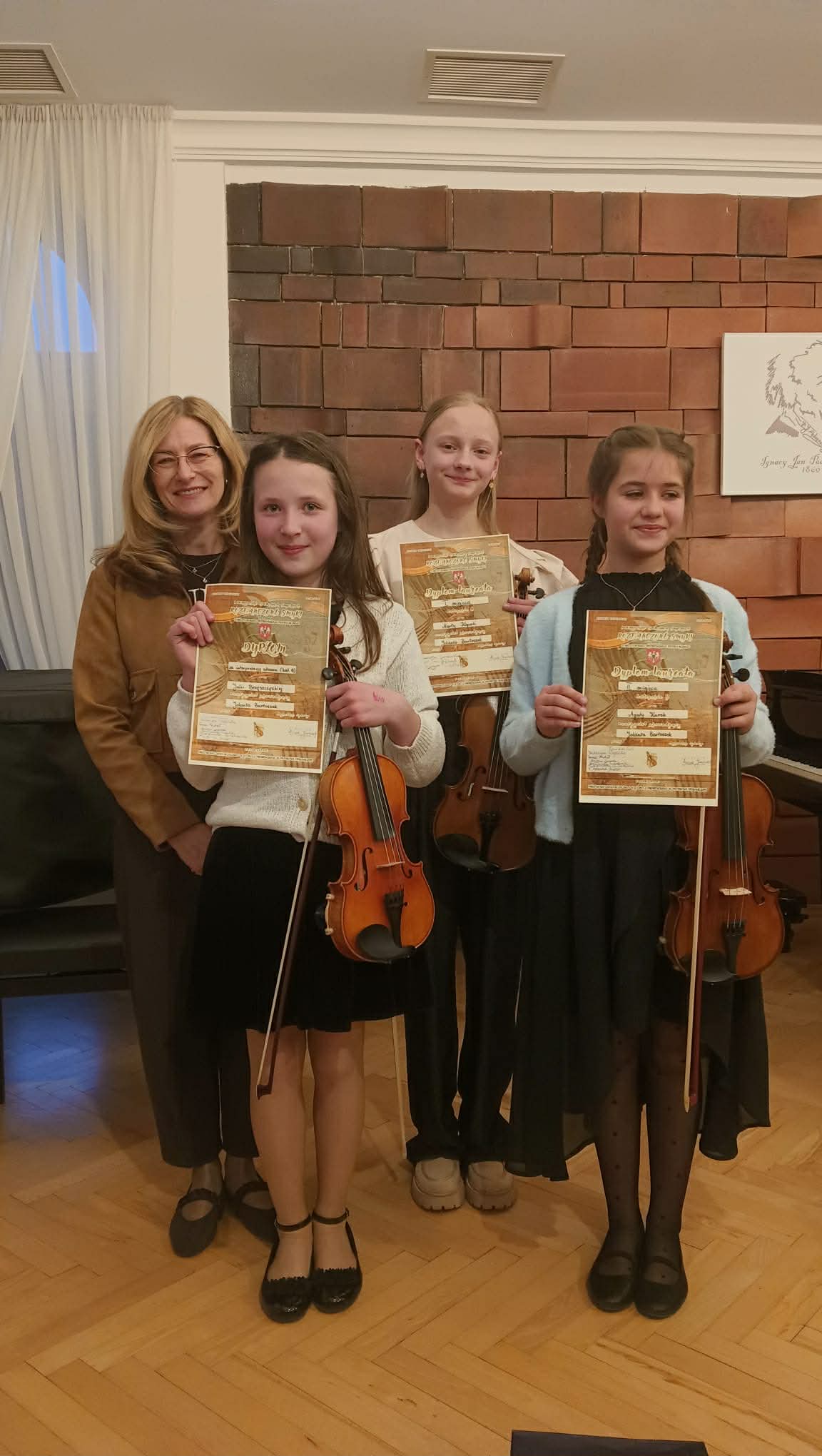 Uczennicom przy fortepianie towarzyszył pan Mateusz Sztabiński, który otrzymał dyplom za profesjonalny akompaniament.