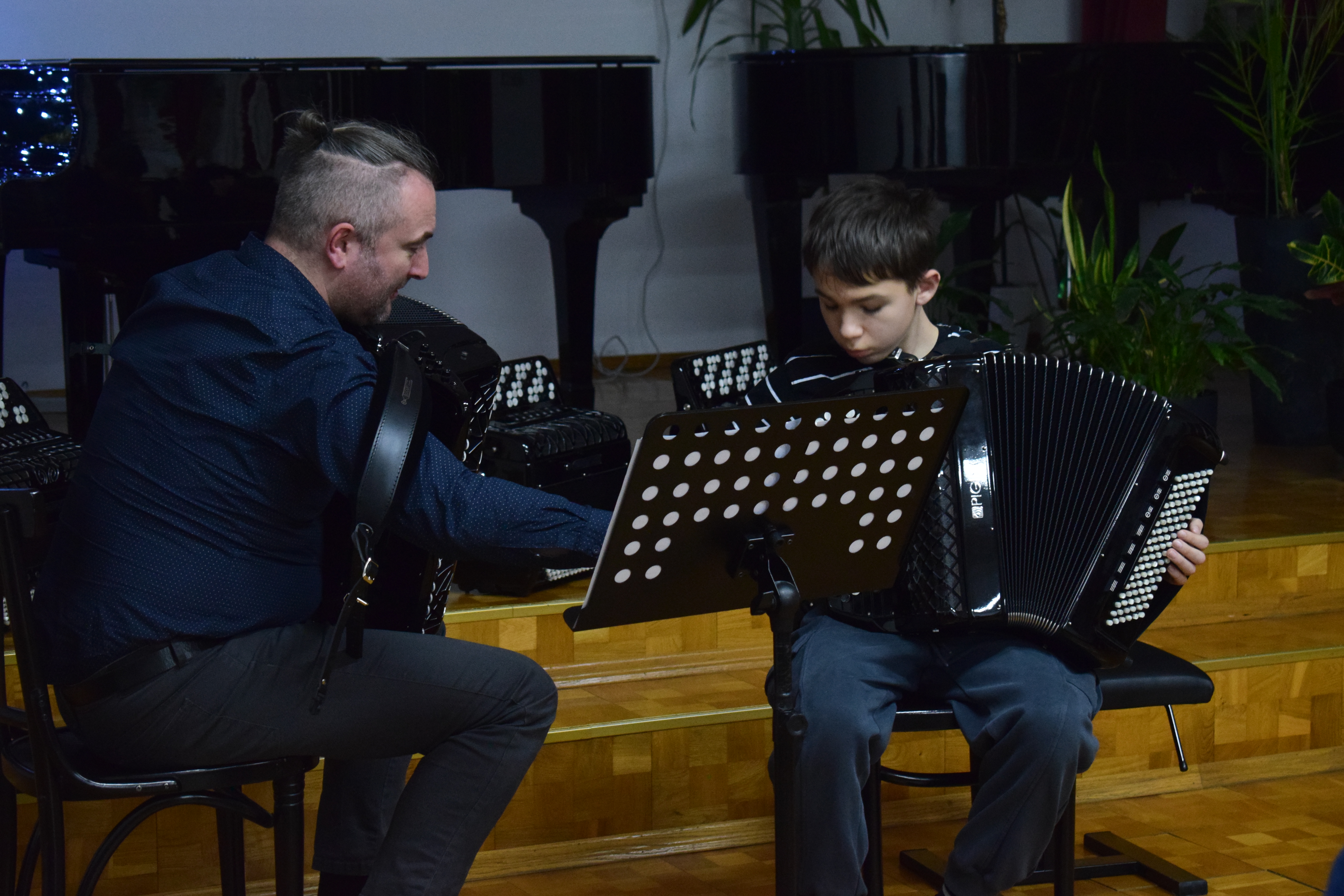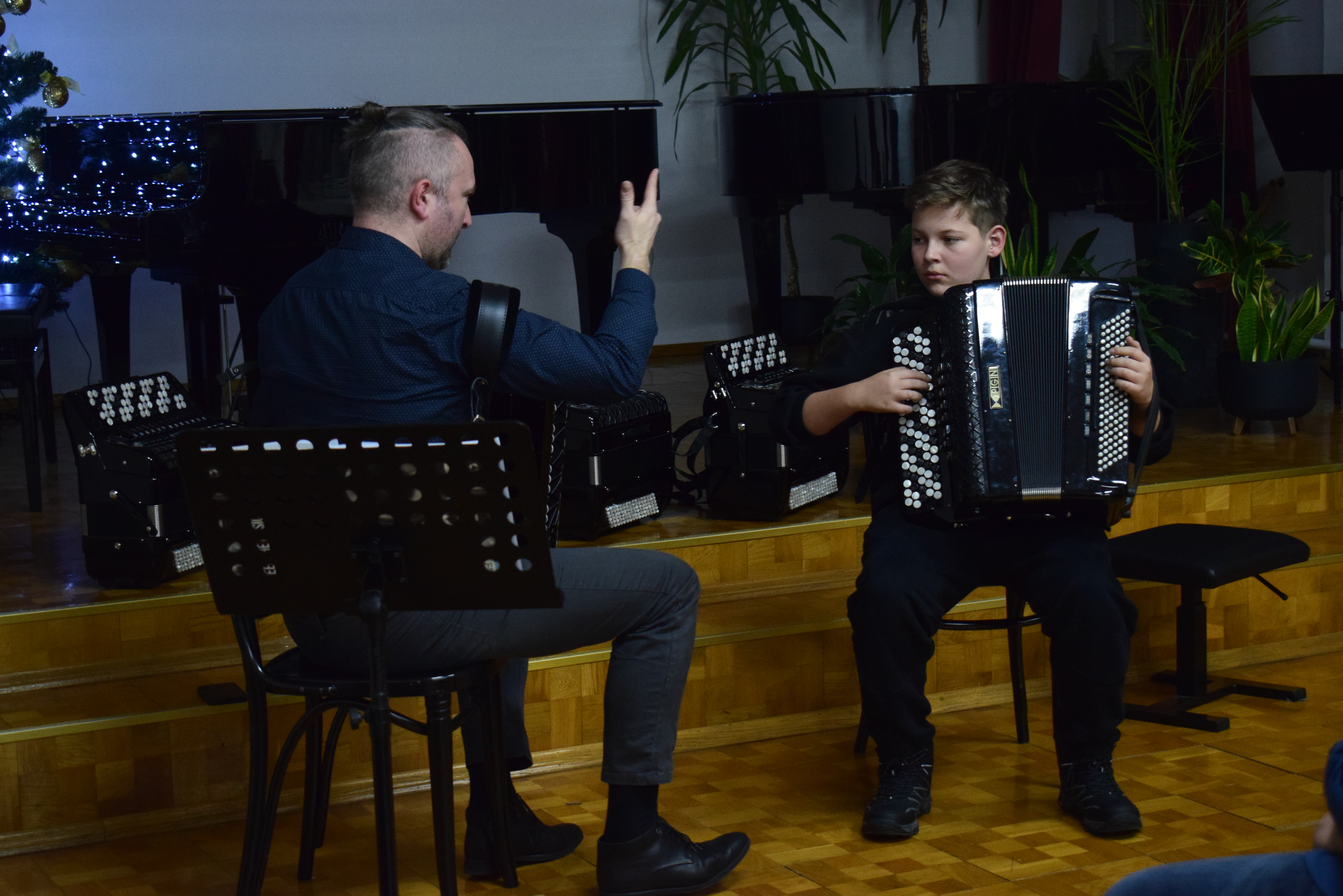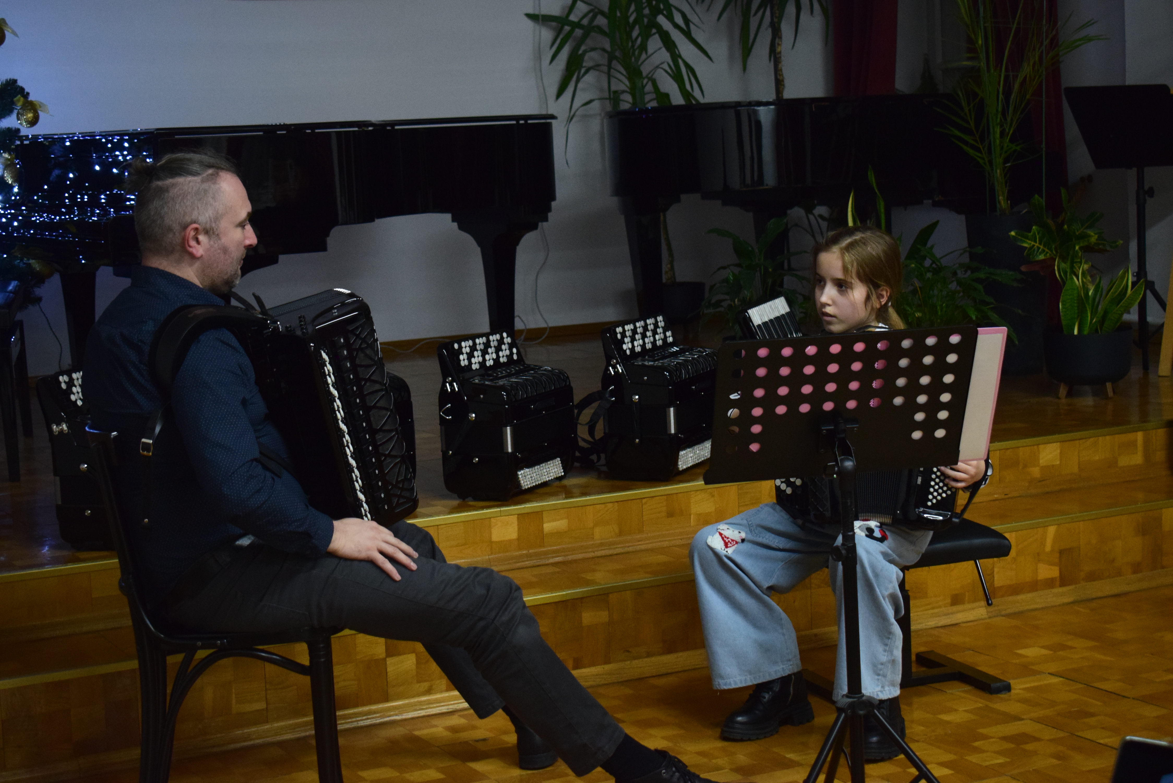 Warsztaty akordeonowe 08.12.2025 W dniu 4 grudnia 2025 r. w naszej szkole odbyły się warsztaty akordeonowe, które poprowadził dr Eneasz Kubit z Akademi Muzycznej im. Grażyny i Kiejstuta Bacewiczów w Łodzi. Zdjęcia (6) Pokaż poprzednie zdjęcia Pokaż zdjęcie 1 z galerii. Pokaż zdjęcie 2 z galerii. Pokaż zdjęcie 3 z galerii. Pokaż zdjęcie 4 z galerii. Pokaż zdjęcie 5 z galerii. Pokaż zdjęcie 6 z galerii. Pokaż nestępne zdjęcia