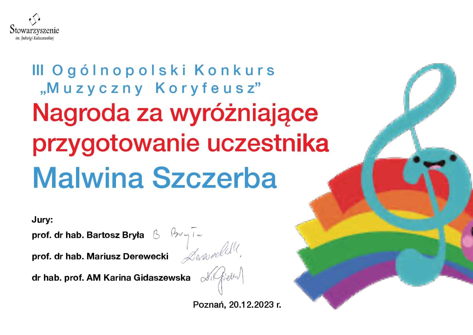 III Konkurs Muzyczny Koryfeusz Poznań 20 grudnia 2023 r.