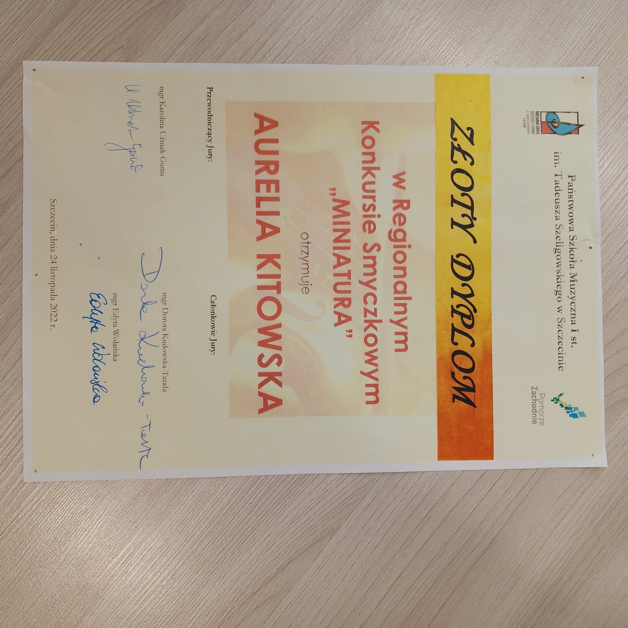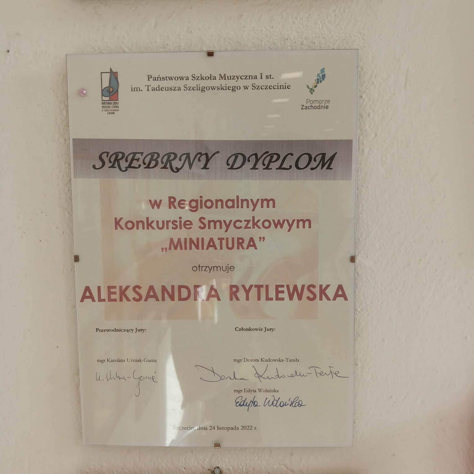 Dnia 24 listopada 2022 roku odbył się w Szczecinie Regionalny Konkurs Smyczkowy "Miniatura", na którym sukcesy odniosły uczennice naszej Szkoły. Złoty dyplom zdobyła wiolonczelistka Aurelia Kitowska z klasy Pani Katarzyny Trepiak, natomiast srebrny dyplom zdobyła Aleksandra Rytlewska z klasy Pani Aleksandry Bratko. Gratulujemy!!!