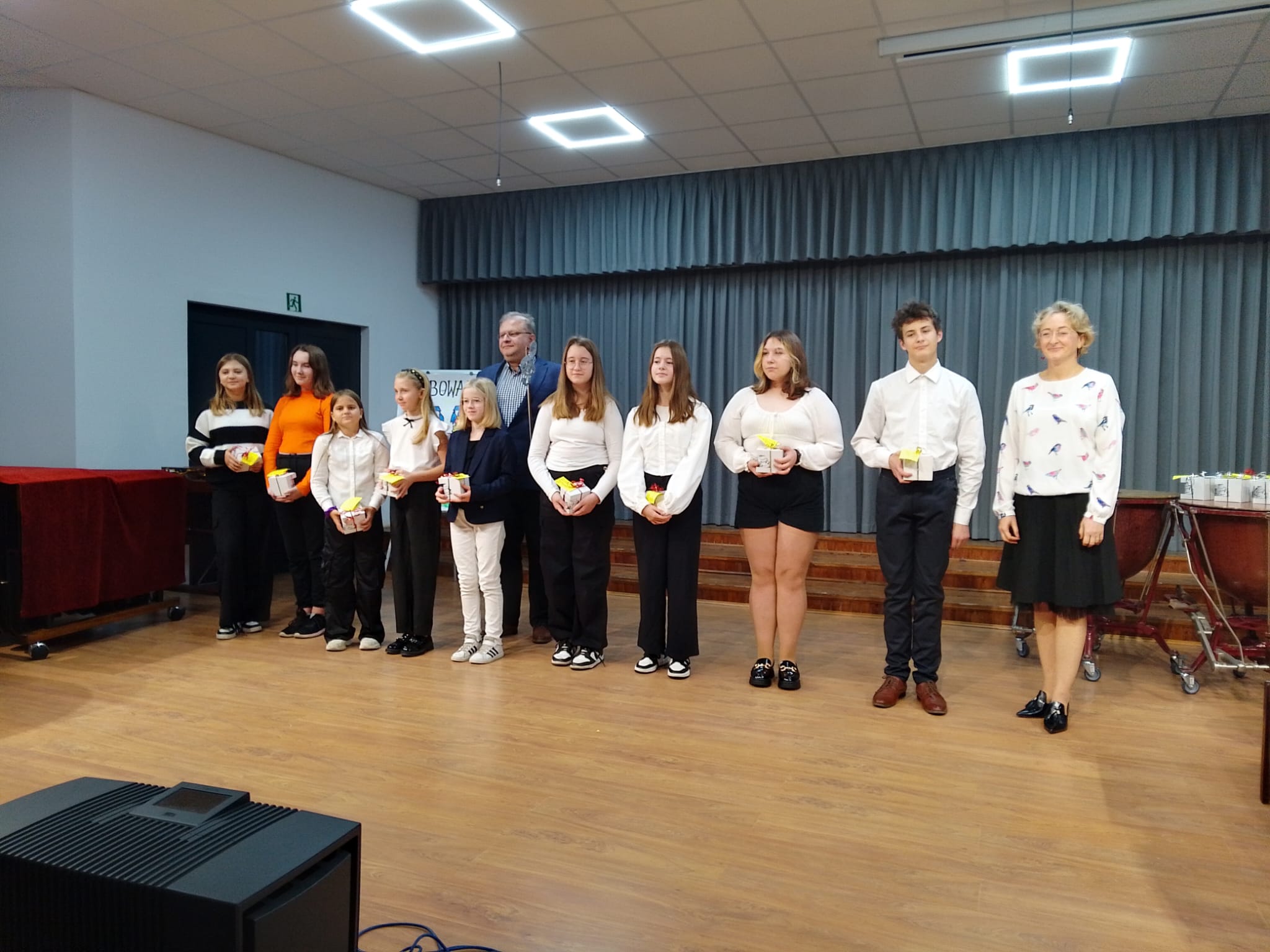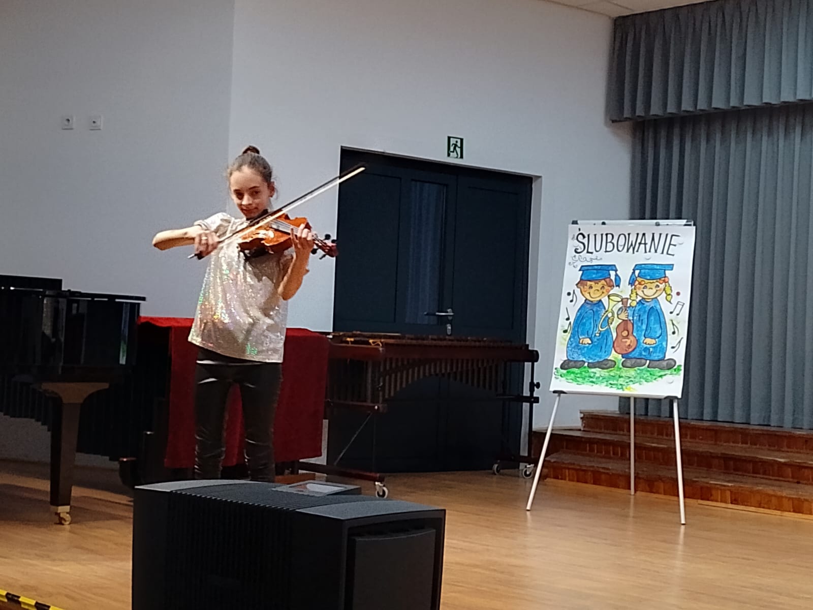 W dniu 19 października 2023 r. w sali koncertowej naszej Szkoły odbyło się Pasowanie na Ucznia Państwowej Szkoły Muzycznej I stopnia w Białogardzie. Uroczystość rozpoczęła się koncertem, na którym wystąpili uczniowie klas pierwszych działu dziecięcego oraz młodzieżowego wspólnie śpiewając piosenki. "Pierwszaki" zaprezentowały również swoje umiejętności gry na instrumencie zdobyte w tak krótkim czasie, na scenie wystapili: Zofia Dublinowska, Nina Palyonko, Aleksy Skubiyenko, Lilianna Kunowska, Jakub Bortnik, Jakub Molenda oraz Gabriel Stachniuk. Następnie pan Dyrektor Andrzej Jórkowski dokonał pasowania symbolicznym smyczkiem uczniów klas pierwszych cyklu 6-letniego i 4-letniego. Na zakończenie mieliśmy okazję zobaczyć występ Rozalii Kitowskiej, uczennicy klasy VI, która przy akompaniamencie pani Elżbiety Plebanek - Dudy wykoła utwór "Synkopy" F. Kreislera. Wszystkim uczniom klas pierwszych życzymy wielu sukcesów, radości, cierpliwości i wytrwałości!!!