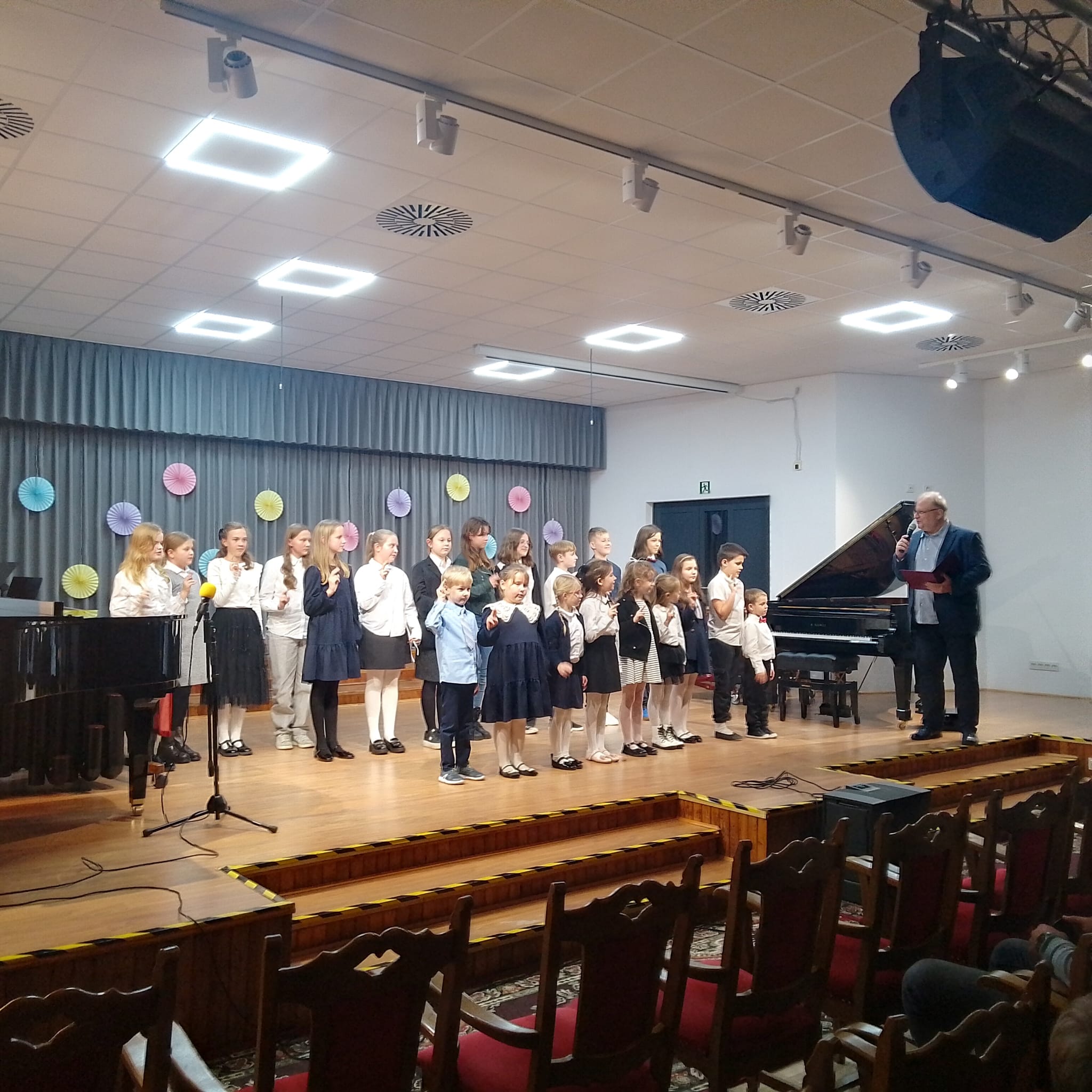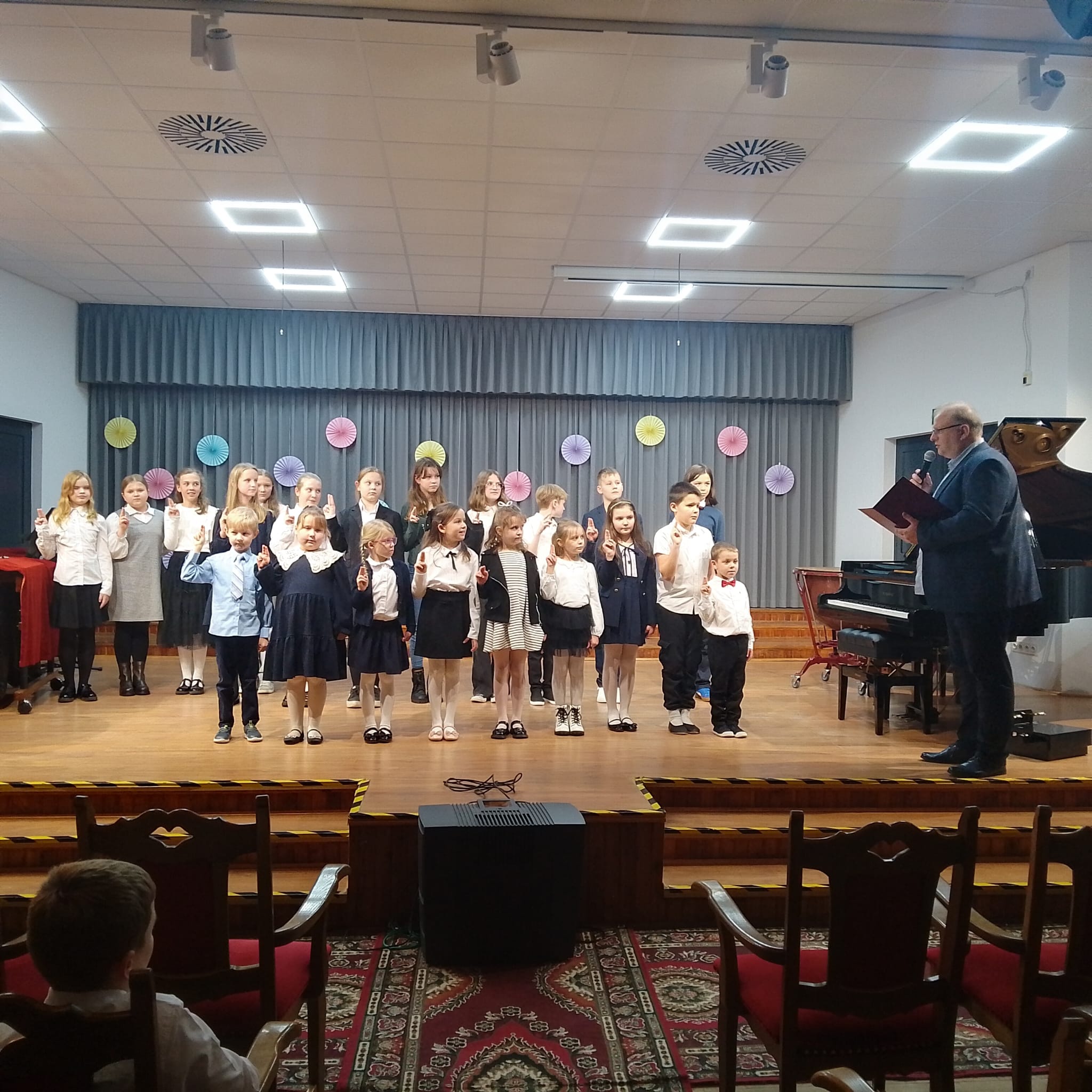 W dniu 20 listopada 2025 r. w sali koncertowej naszej Szkoły odbyło się Uroczyste Ślubowanie Klas Pierwszych Państwowej Szkoły Muzycznej I stopnia w Białogardzie. Uroczystość połączona była z koncertem, na którym swoje pierwsze kroki na scenie stawiali uczniowie klas I c/6 oraz I c/4. Wystąpili również ich koleżanki i koledzy z klas starszych. Następnie pan Dyrektor Andrzej Jórkowski przeprowadził Uroczyste Ślubowanie Uczniów Klas Pierwszych. Wszystkim wykonawcom gratulujemy wspaniałych występów a uczniom klas pierwszych życzymy wielu sukcesów i wytrwałości podczas nauki gry na instrumentach!!!