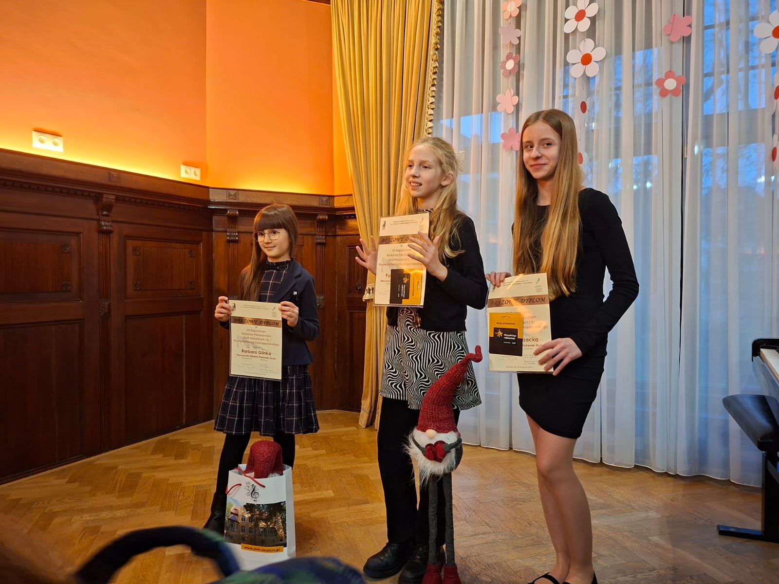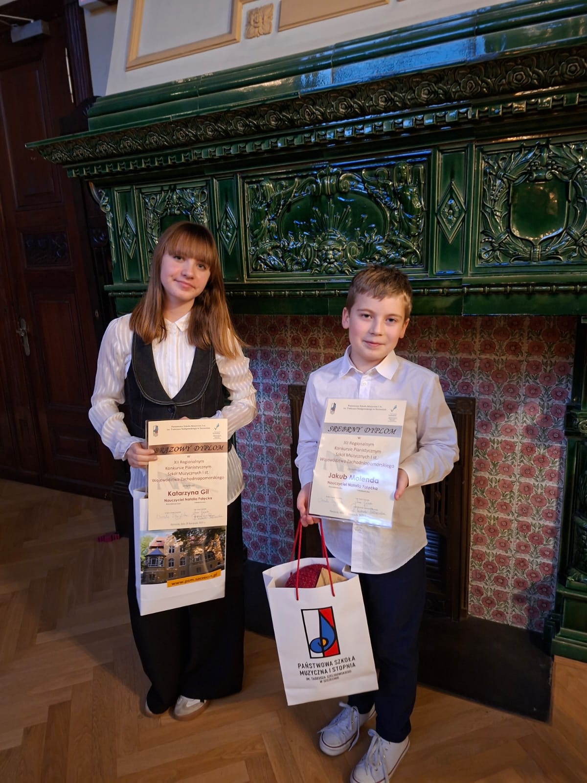 29 listopada 2025 roku pięcioro uczniów naszej szkoły brało udział w XII Regionalnym Konkursie Pianistycznym Szkół Muzycznych I stopnia w Szczecinie. Jakub Molenda (kl.III c/6) zdobył Srebrny Dyplom, natomiast Barbara Glinka (kl.II c/6), Katarzyna Gil i Pola Nosowska (kl.V c/6) oraz Marta Melzacka (kl.VI c/6) zdobyły Brązowe Dyplomy. Serdecznie gratulujemy uczniom oraz ich nauczycielkom p. Elżbiecie Plebanek - Dudzie i p. Natalii Falęckiej. Gratulujemy i życzymy kolejnych sukcesów!!!