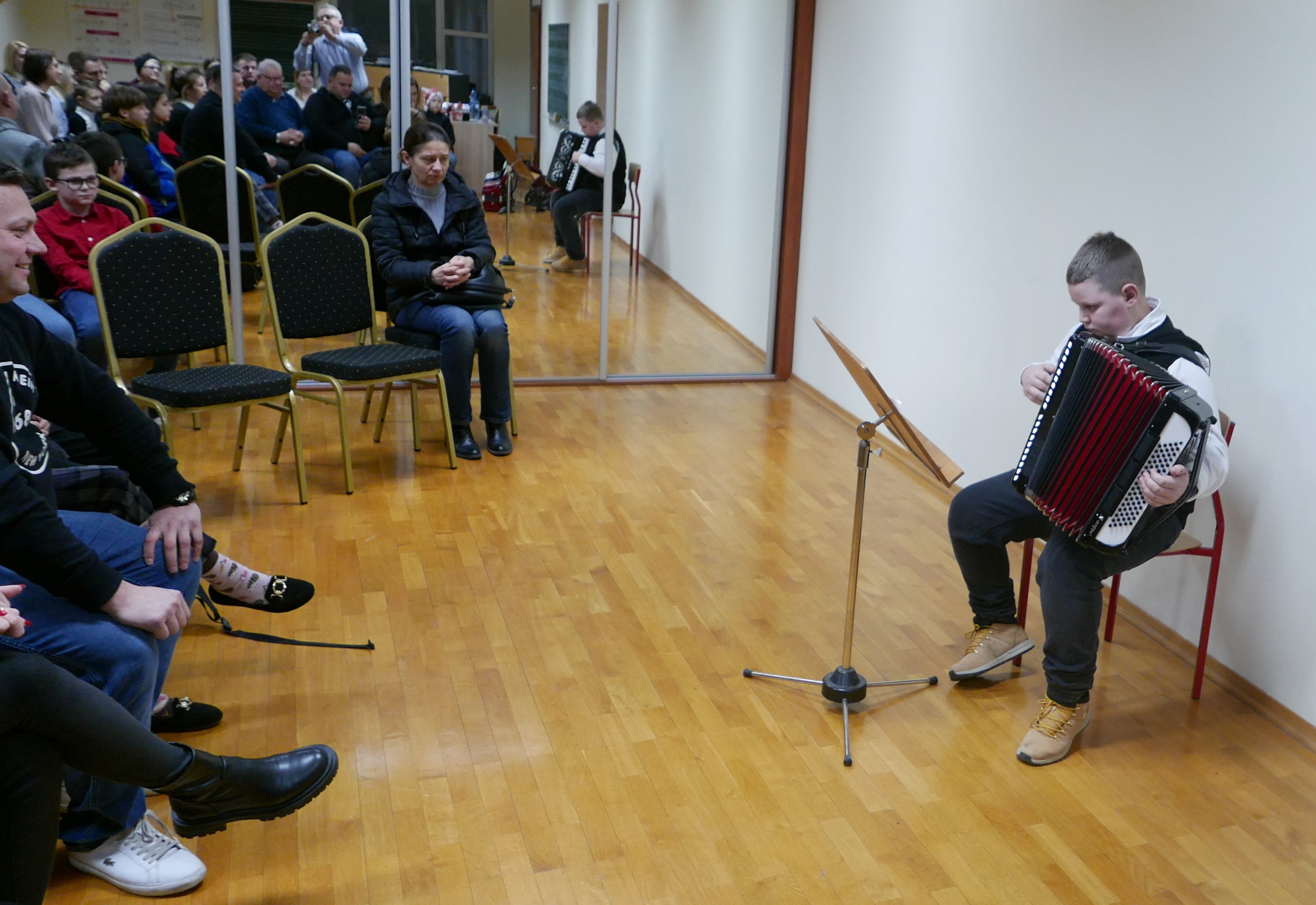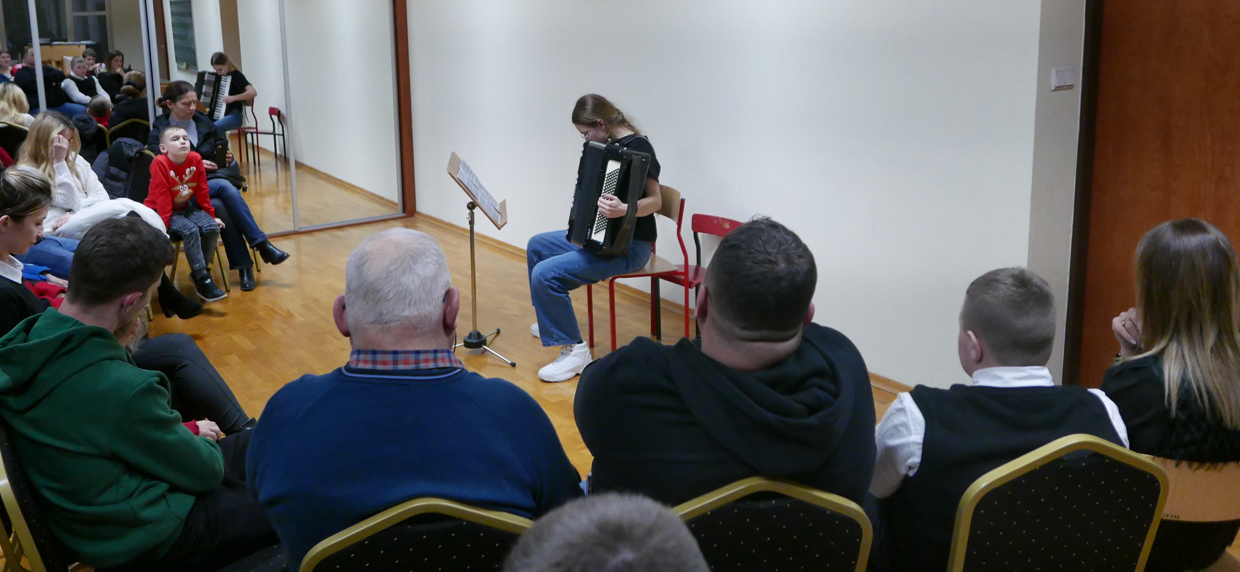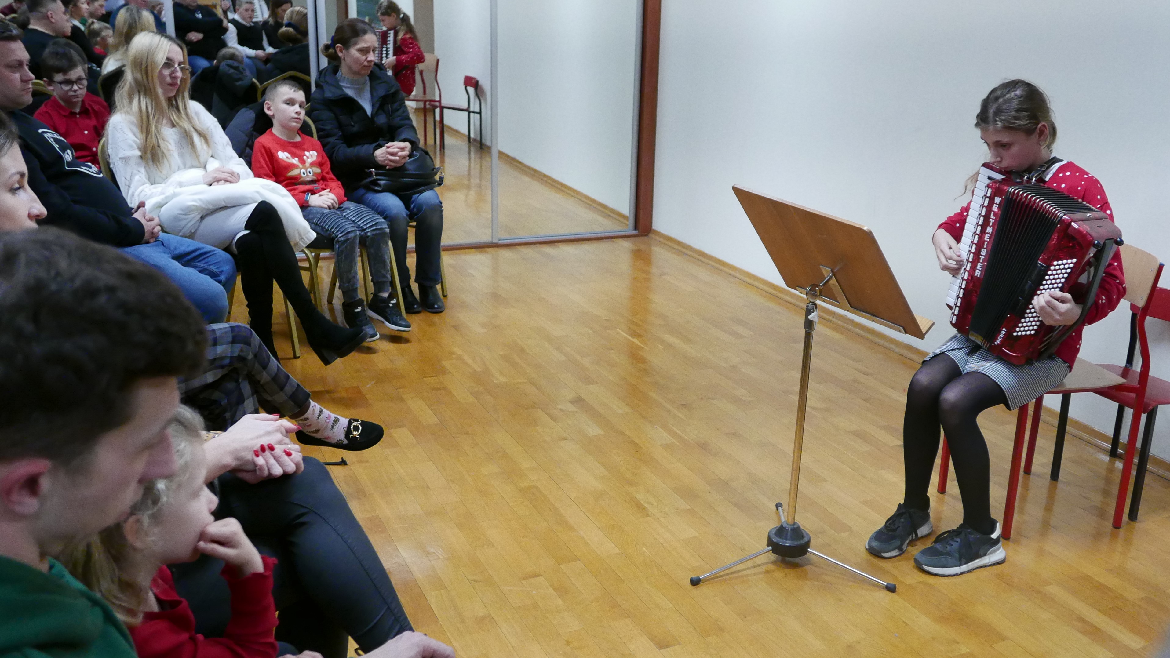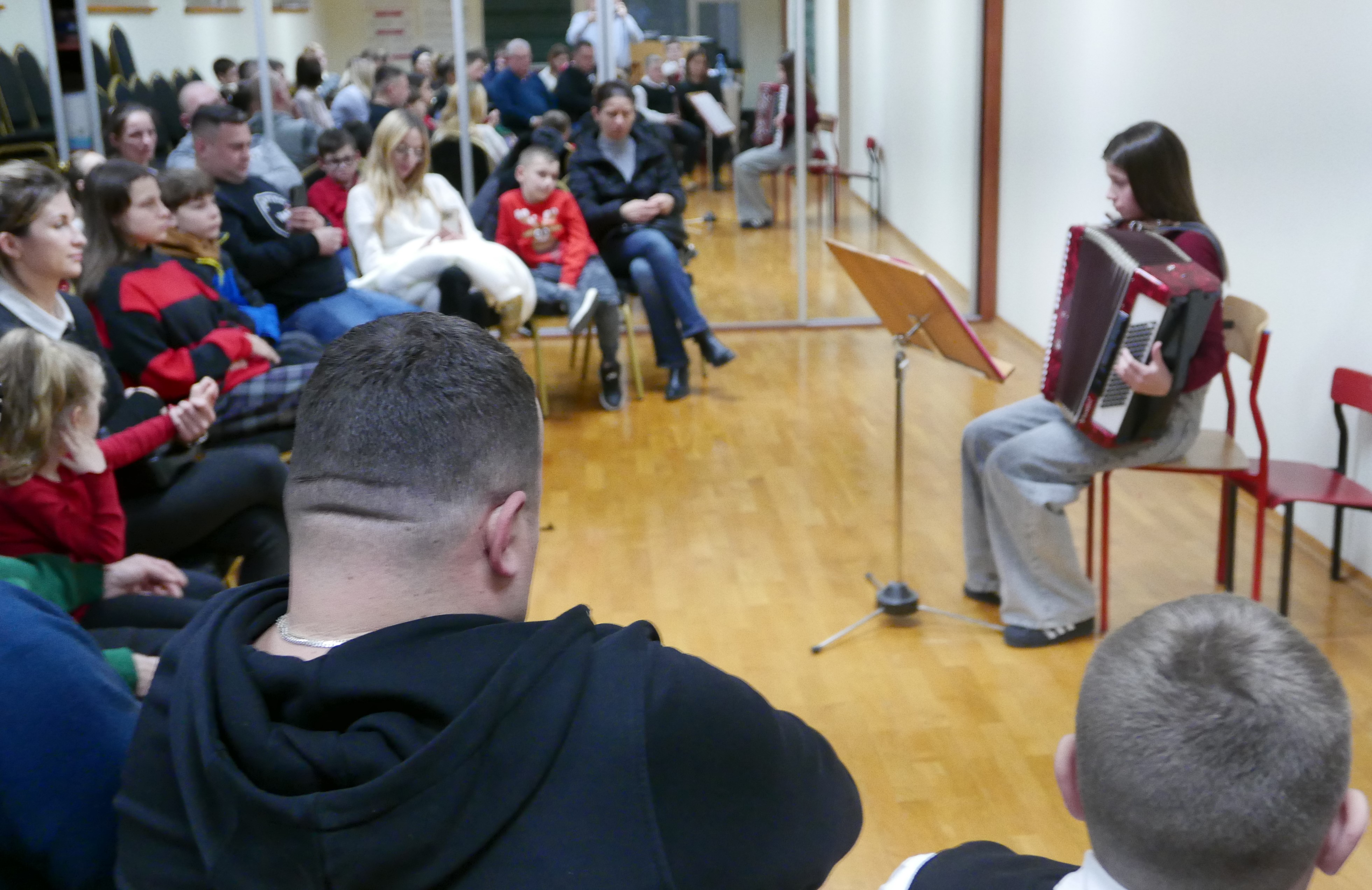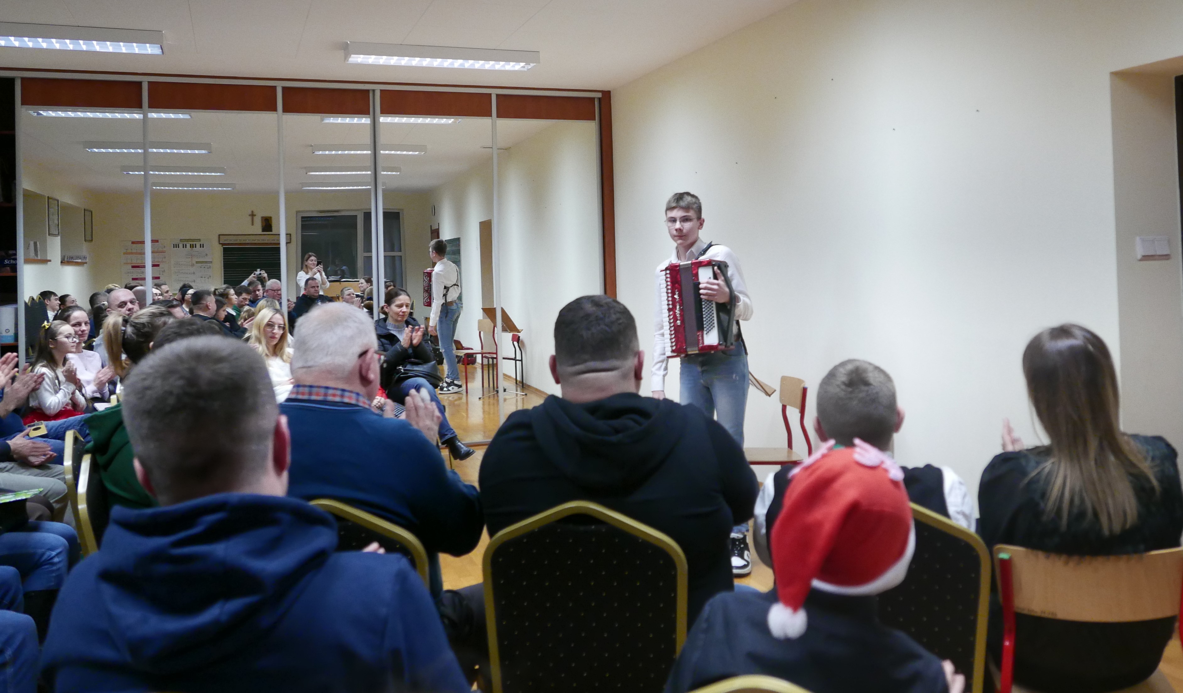 6.12.2024 roku uczniowie klasy akordeonu p.Bogdana Drozdowskiego zagrali audycję dla rodziców. Niektórzy z nich pierwszy raz zaprezentowali się na scenie. Brawo! Wystąpili w kolejności: Wojtuś Romaniuk z kl. I c6, Tymek Prokopiuk i Wojtuś Falkowski z kl. II c6, Wojtuś Chmielewski z kl. III c6, Maja Sosna i Masymilian Kosiński z kl. IV c6, Tymek Roszczyc z kl. VI c6, Nikola Sadowska, Michał Kalicki i Olga Ambrożewicz z kl. IV c4, Damian Ruczaj trzeci miesiąc nauki.
