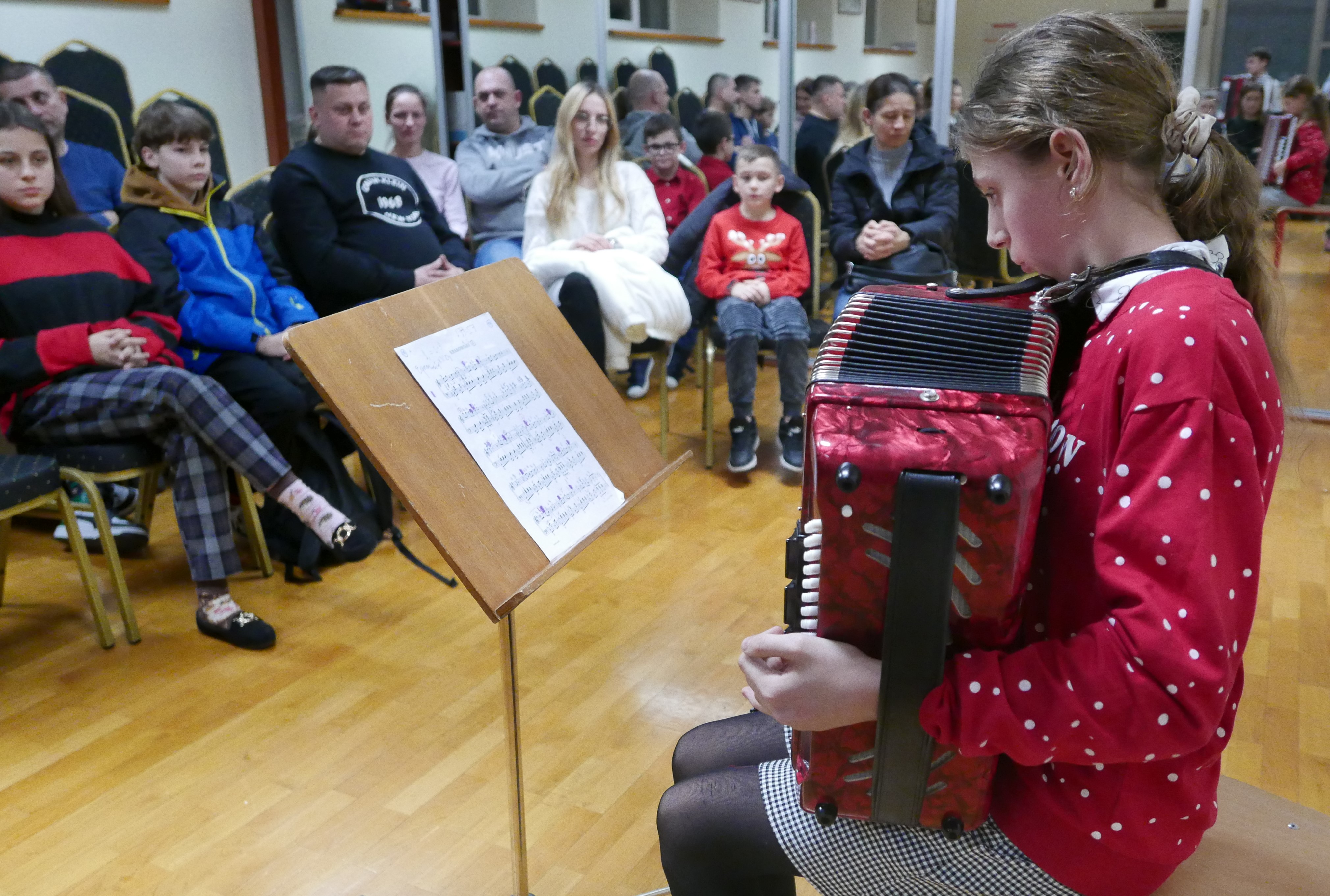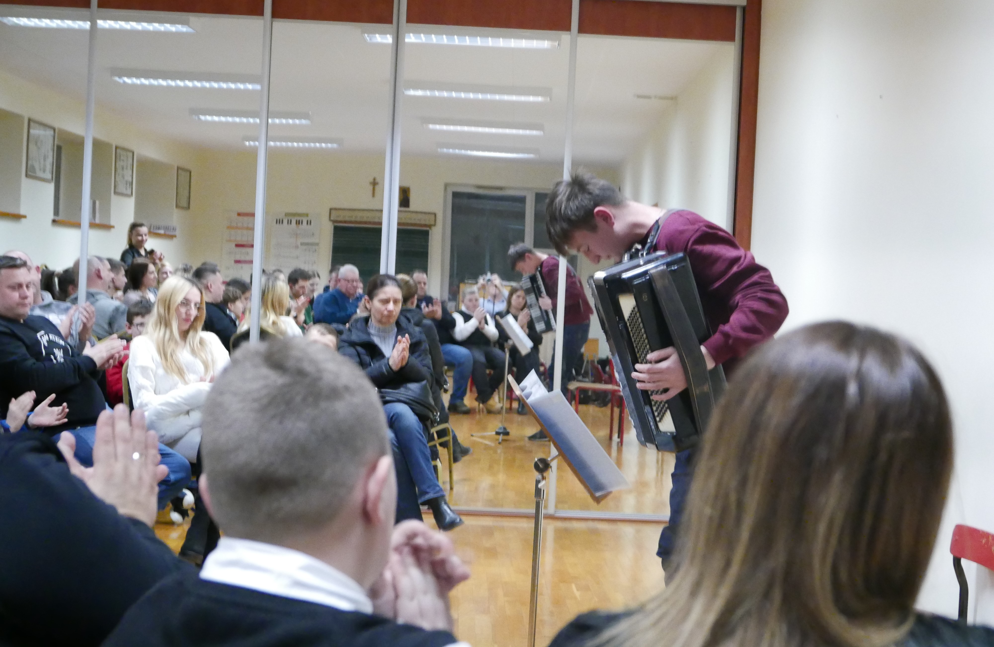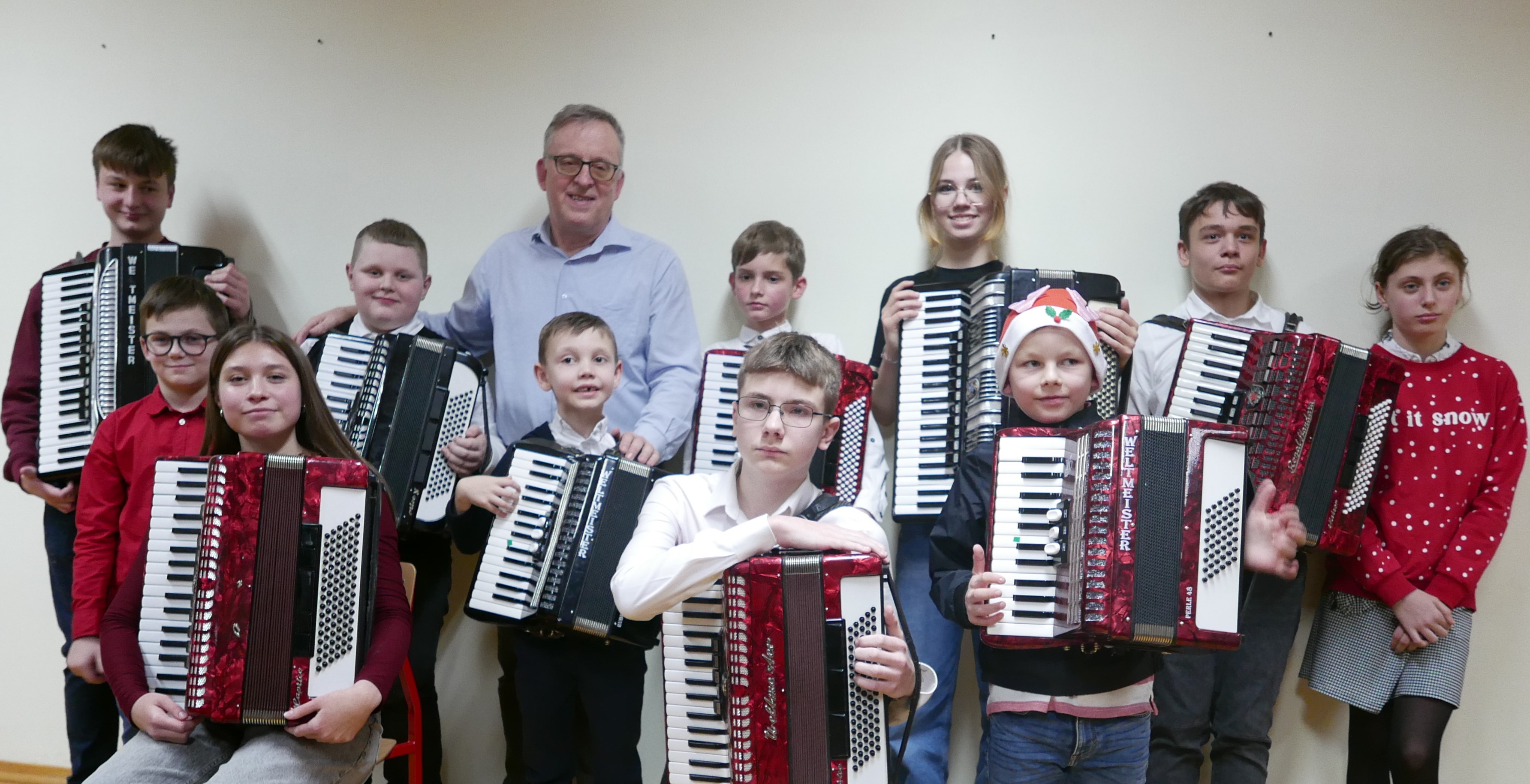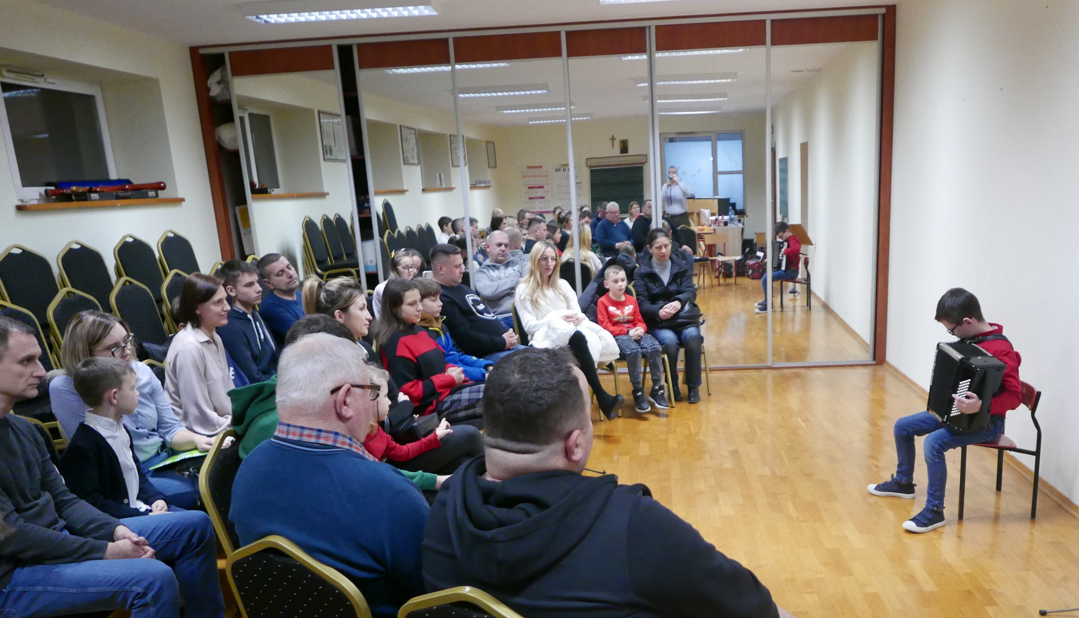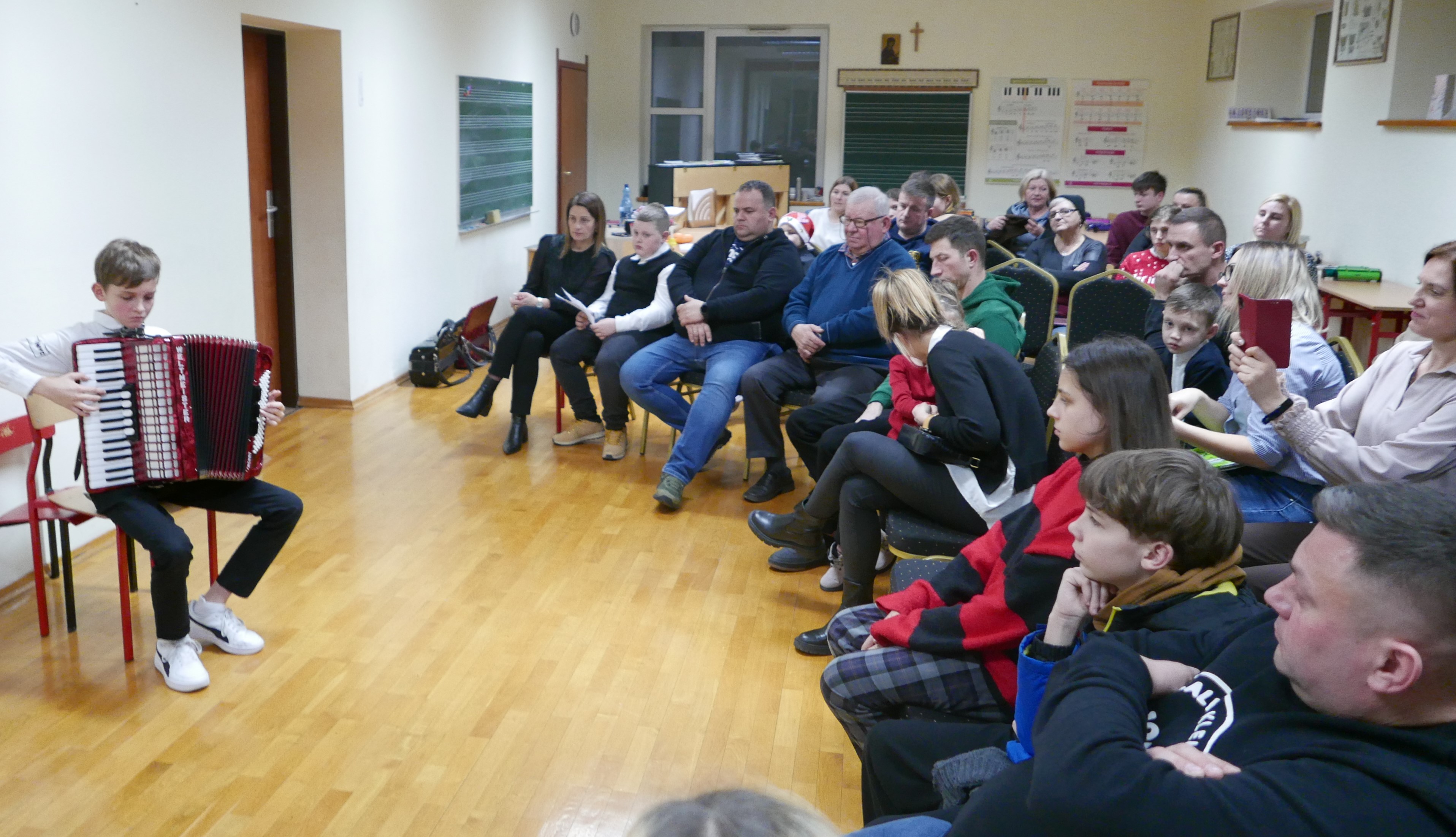 6.12.2024 roku uczniowie klasy akordeonu p.Bogdana Drozdowskiego zagrali audycję dla rodziców. Niektórzy z nich pierwszy raz zaprezentowali się na scenie. Brawo! Wystąpili w kolejności: Wojtuś Romaniuk z kl. I c6, Tymek Prokopiuk i Wojtuś Falkowski z kl. II c6, Wojtuś Chmielewski z kl. III c6, Maja Sosna i Masymilian Kosiński z kl. IV c6, Tymek Roszczyc z kl. VI c6, Nikola Sadowska, Michał Kalicki i Olga Ambrożewicz z kl. IV c4, Damian Ruczaj trzeci miesiąc nauki.