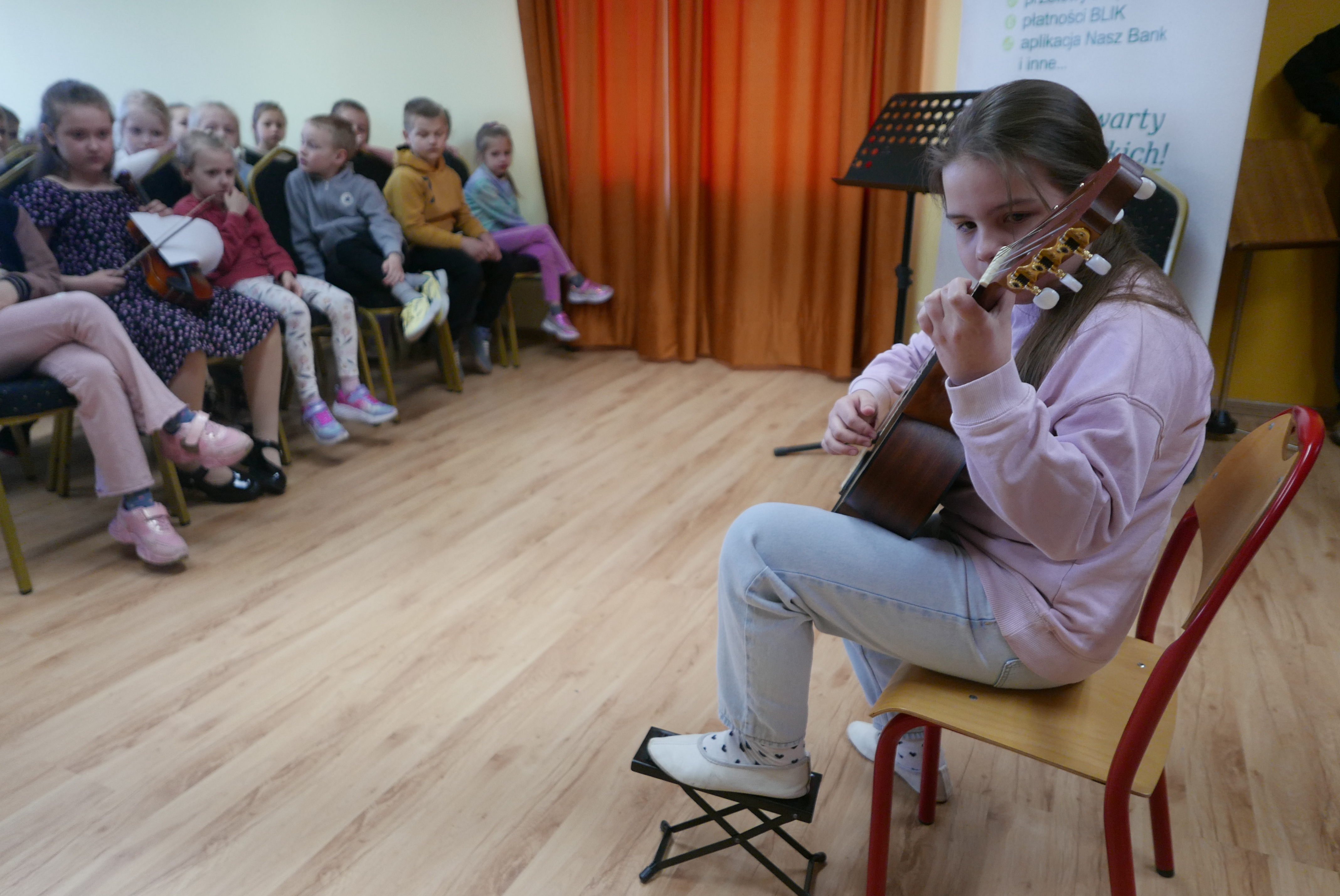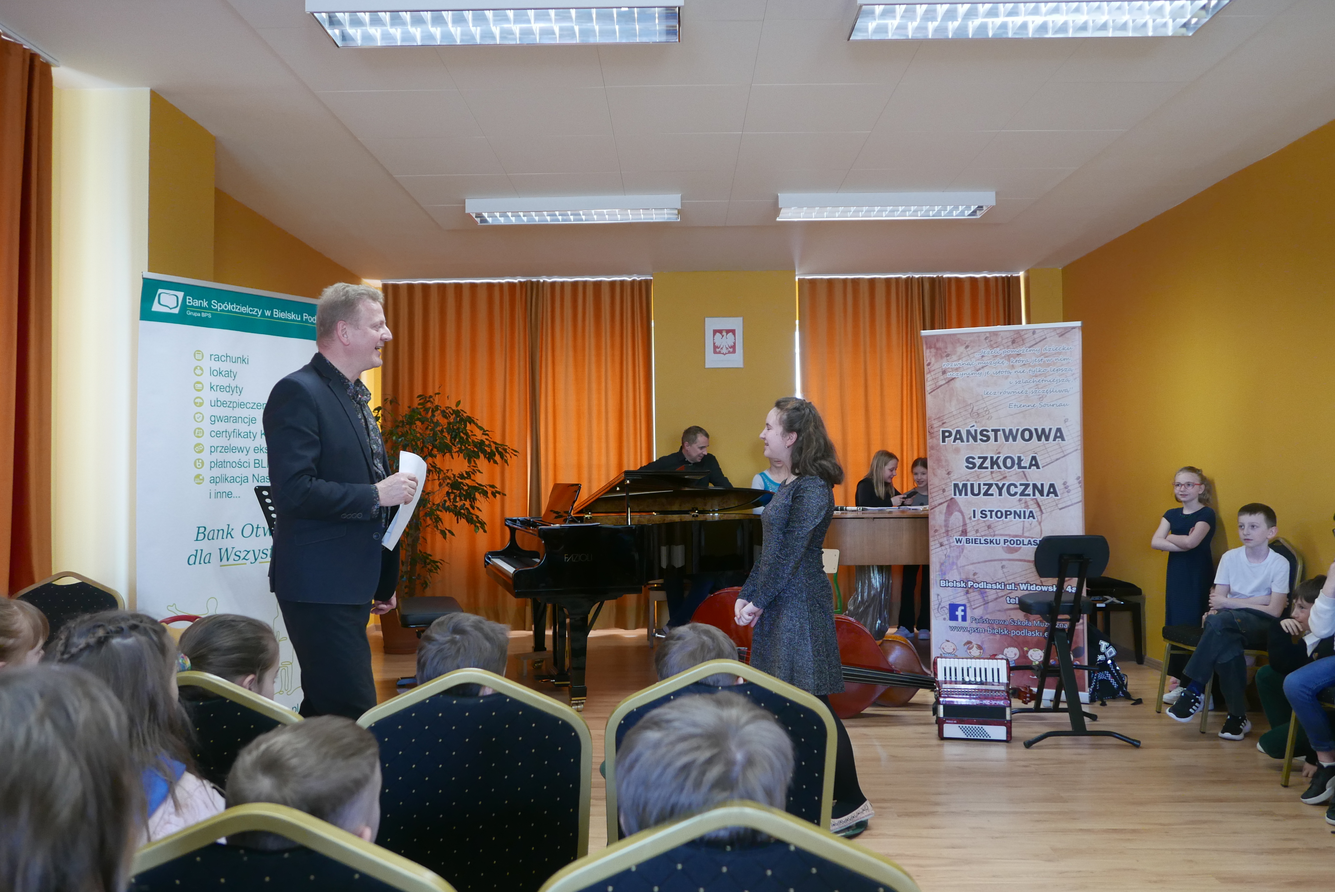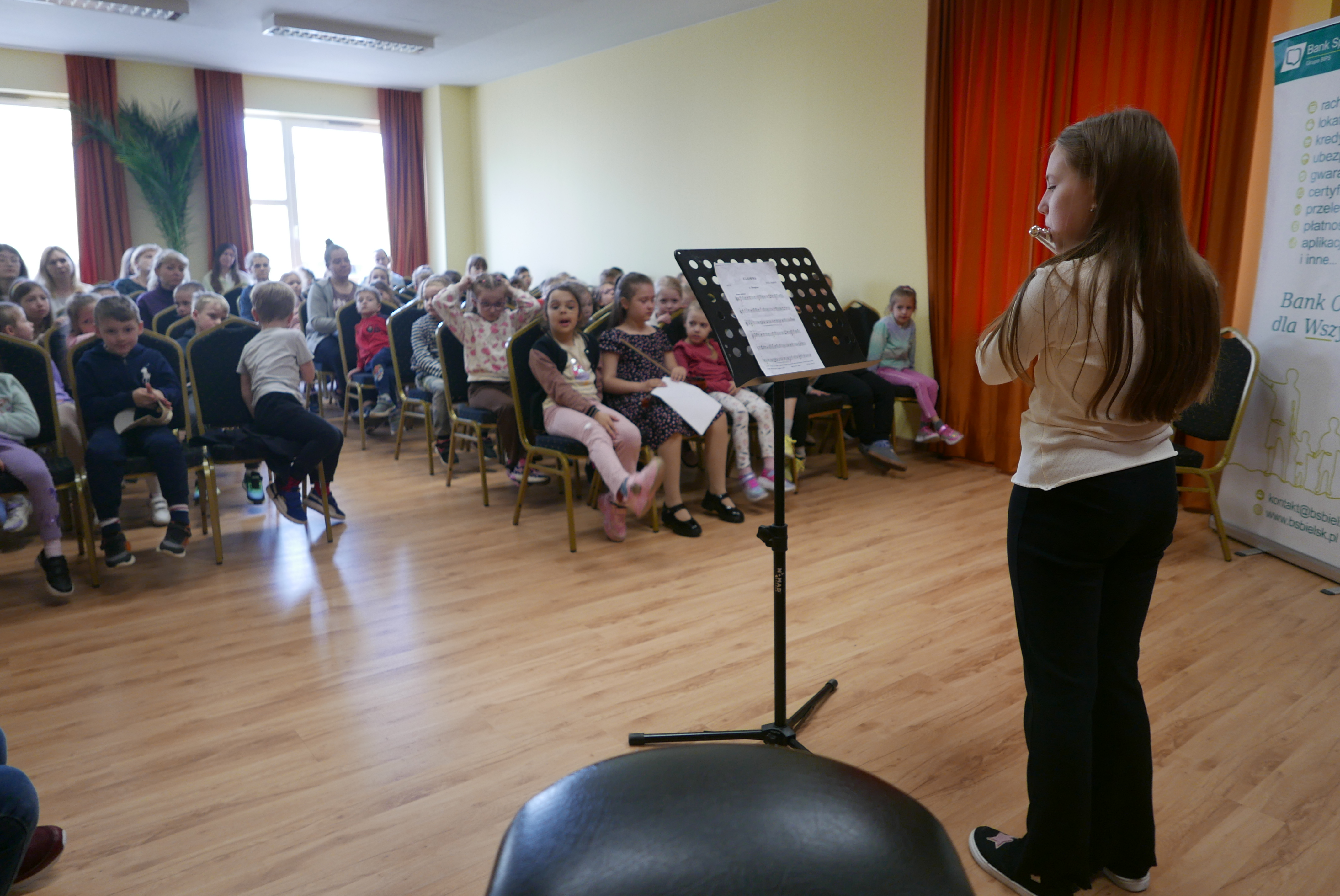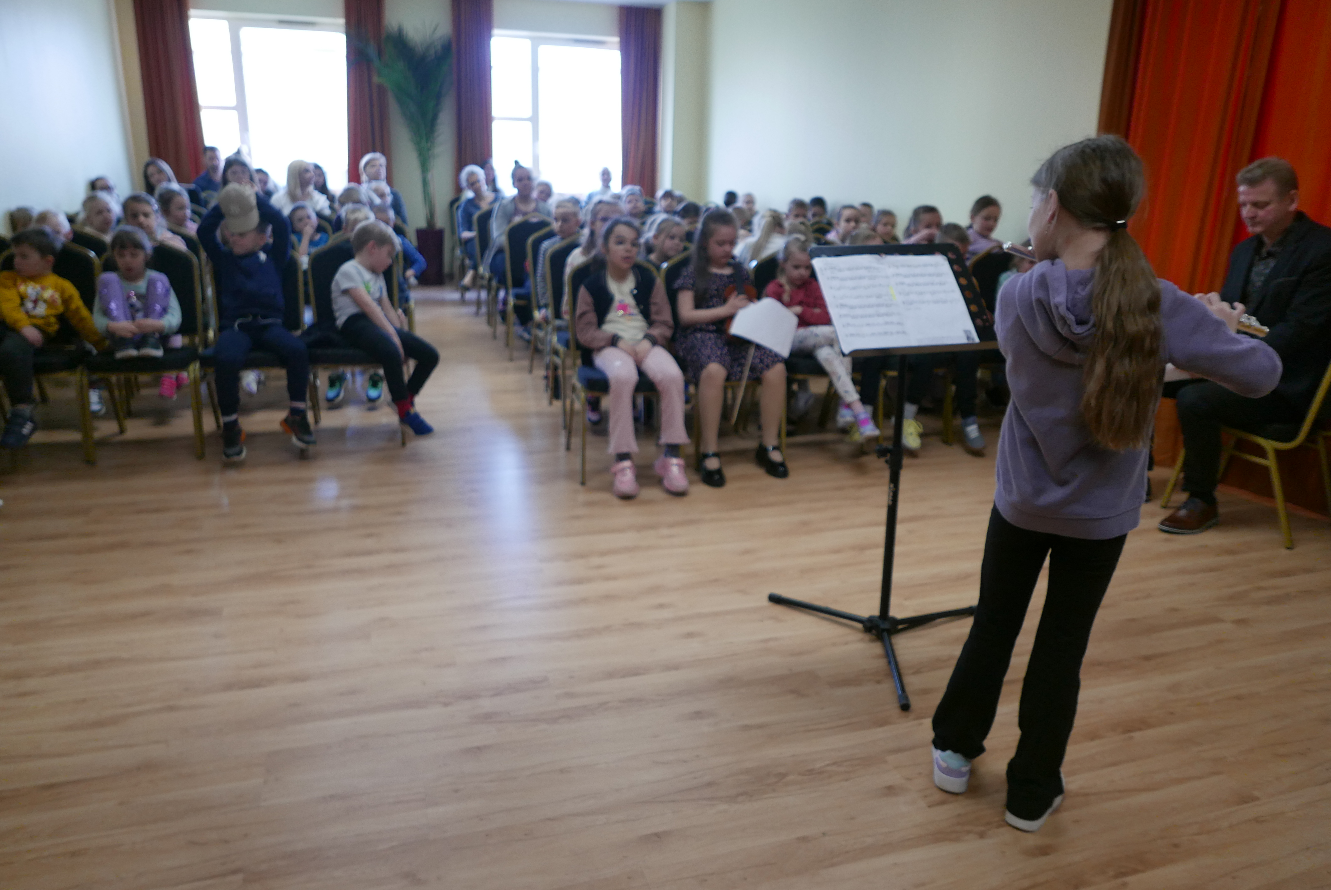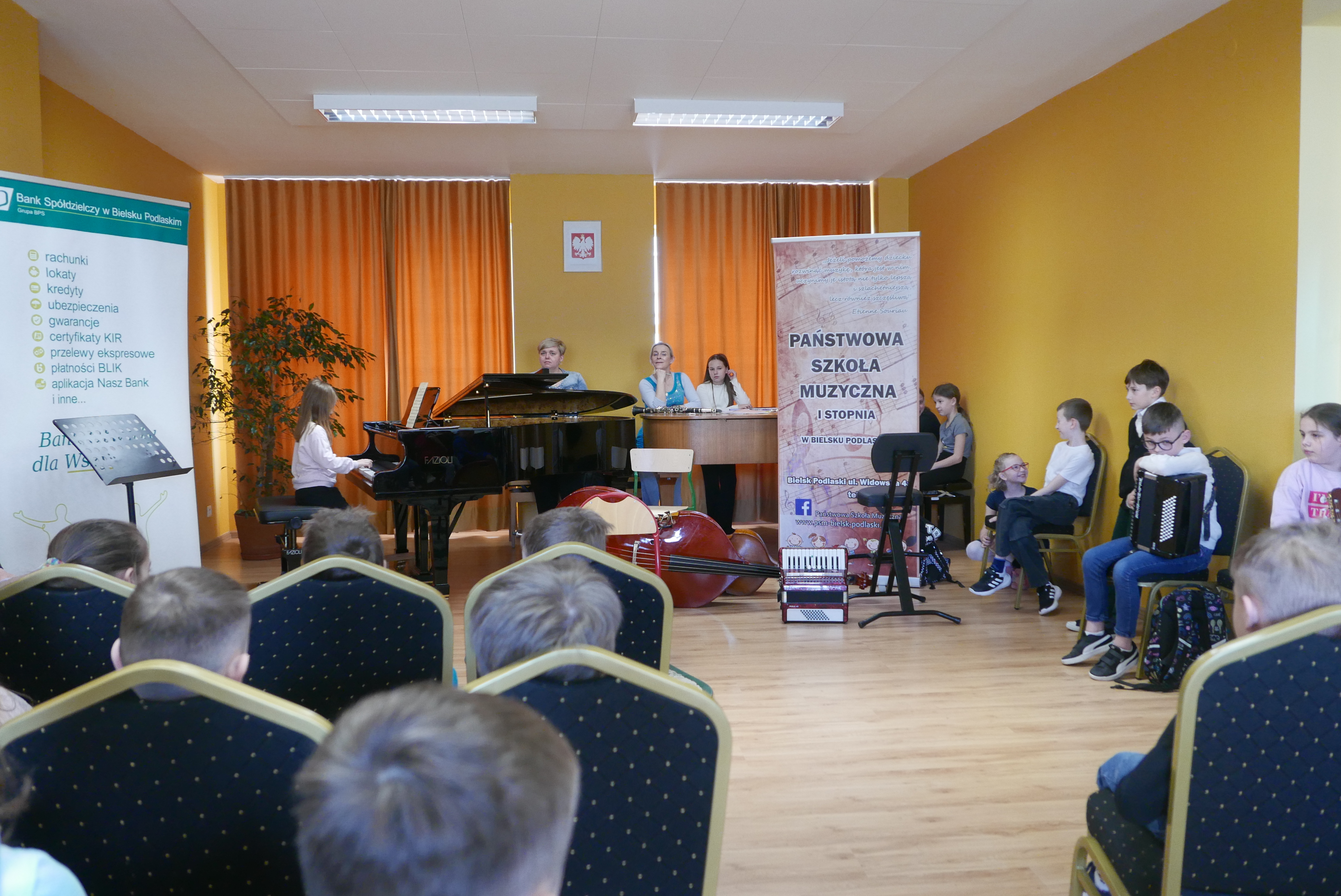 14 kwietnia 2025r., o godz. 9.30 gościliśmy w naszej szkole przedszkolaków wraz z opiekunami z Przedszkola nr 5 im. Krasnala Hałabały oraz z Przedszkola "Na Hołowiesku" działającym przy Parafii Opatrzności Bożej w Bielsku Podlaskim. O godz. 10.30 zawitały do nas grupy przedszkolne z Przedszkola nr 9 "Leśna Polana" oraz Katolickiego Przedszkola Niepublicznego "Karmelki". Swoje instrumenty oraz umiejętności prezentowali w większości byli wychowankowie tych placówek. Opiekunowie grup przedszkolnych z zachwytem wsłuchiwali się w dźwięki wydobywające się z poszczególnych instrumentów a dzieci chwaliły się, których uczniów PSM I st. znają z przedszkola. Pan Ireneusz Ławreszuk, przed każdym występem omawiał poszczególne instrumenty, opowiadał o kompozytorach oraz o utworach, które były wykonywane. Przedszkolaki były bardzo wsłuchane w dźwięki poszczególnych instrumentów. Po skończonych prezentacjach wszyscy chcieli uczyć się grać w szkole muzycznej! To wspaniale jest widzieć taki entuzjazm i chęci wśród dzieci!
